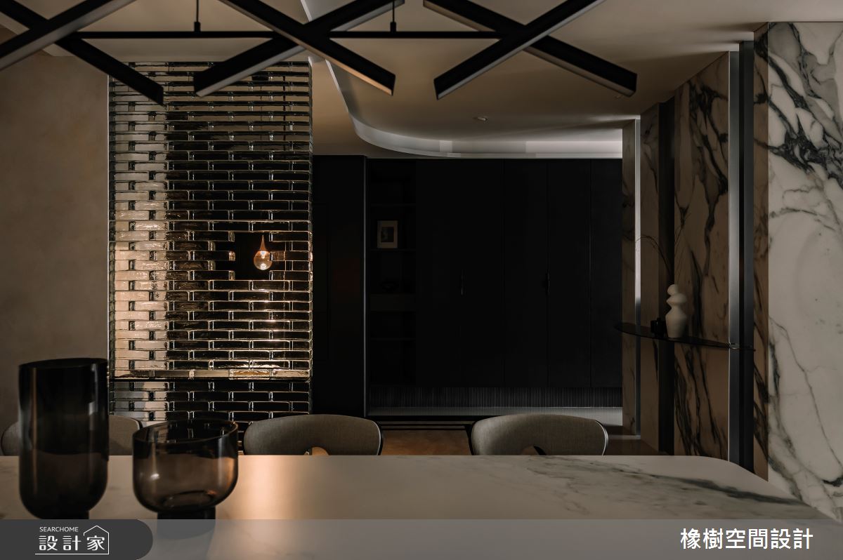 橡樹空間設計以乳膠漆、文化石、超耐磨木地板、鐵件、烤漆、系統板材、大理石、小冰柱玻璃的搭配應用,呈現混搭風居家氛圍,將此間16坪、兩房、單層、新成屋(5年以下)打造成舒適愜意的家庭空間,完成2位大人全家人的夢想之居。