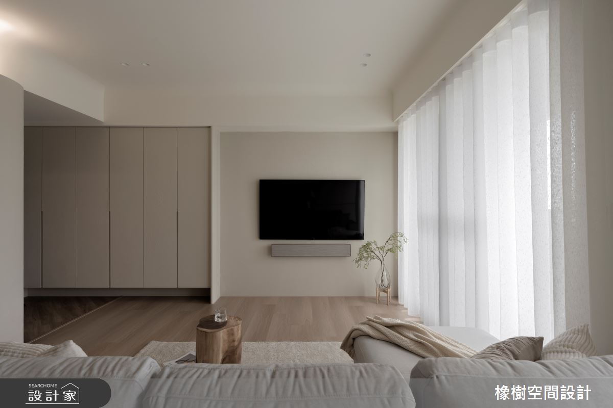 由橡樹空間設計精心規劃的30坪三房住宅空間,家庭成員一共有2位大人。因應屋主需求,設計師運用現代風作為主軸,搭配六角磚/蜂巢磚、水泥漆、超耐磨木地板、木作貼皮、系統板材、木百葉、噴漆、繃布、崁燈、吊隱式空調、藝術塗料、塑膠卡扣地板、鋁框推拉門、塗裝板,打造全家人的夢想家居。