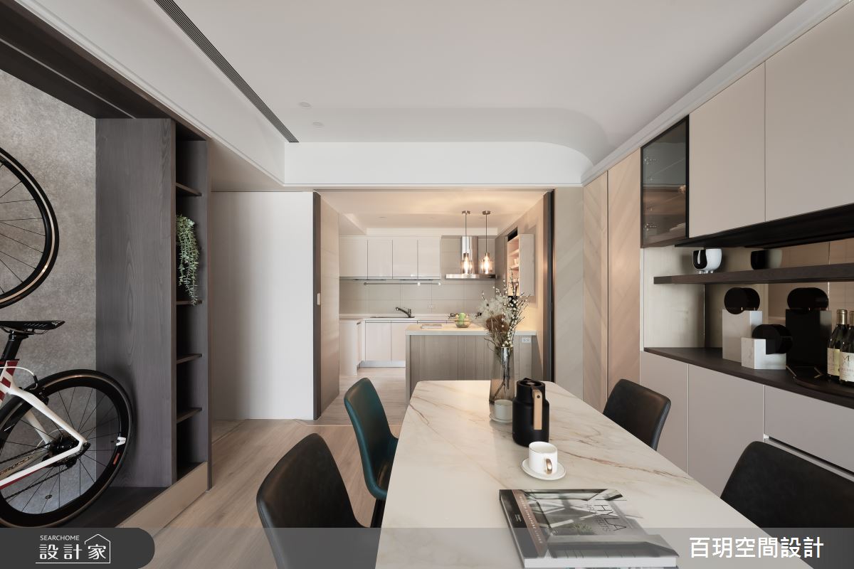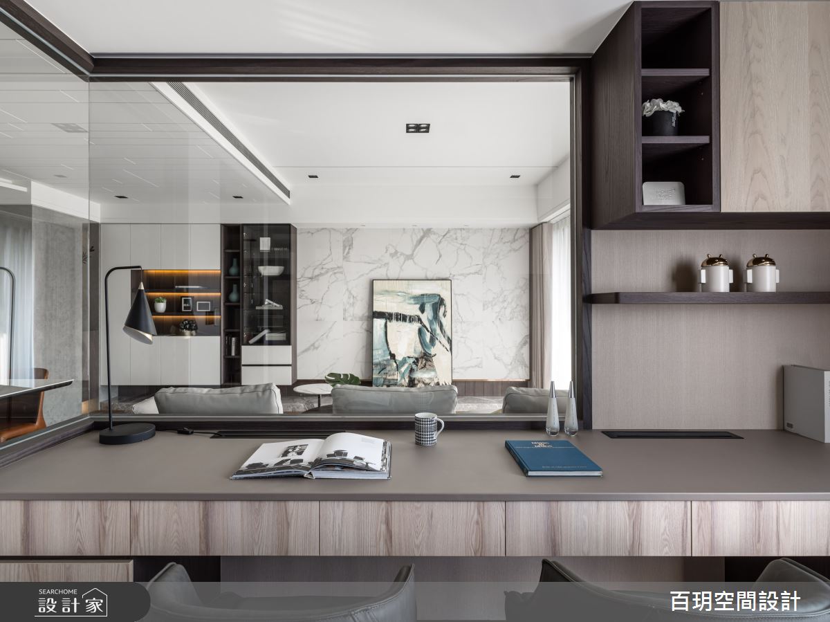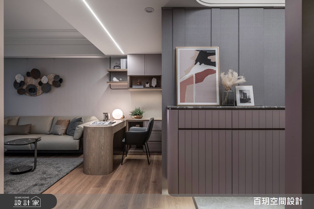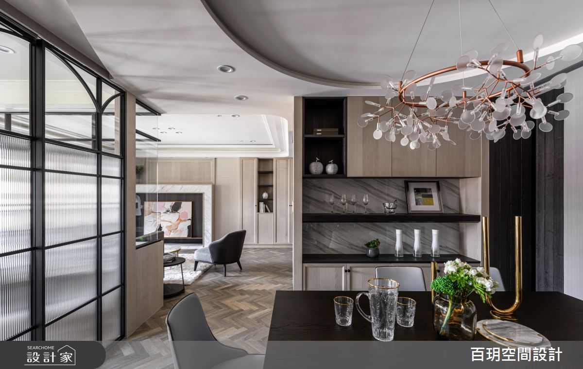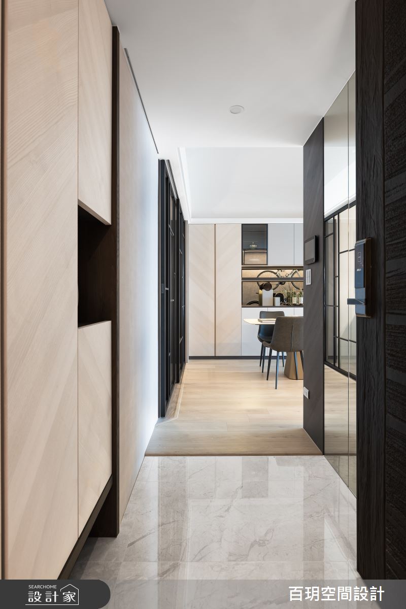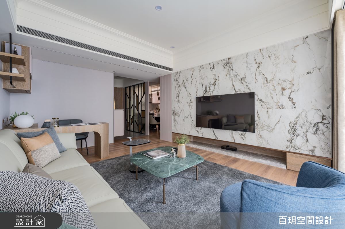 由百玥空間設計精心規劃的65坪三房住宅空間,家庭成員一共有2位大人、1位小孩。因應屋主需求,設計師運用現代風作為主軸,搭配乳膠漆、海島型木地板、鐵件、鍍鈦金屬、木作貼皮、鋼刷木皮、大理石、磁磚、皮革、石材、繃布、噴漆,打造全家人的夢想家居。