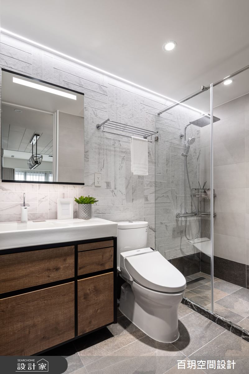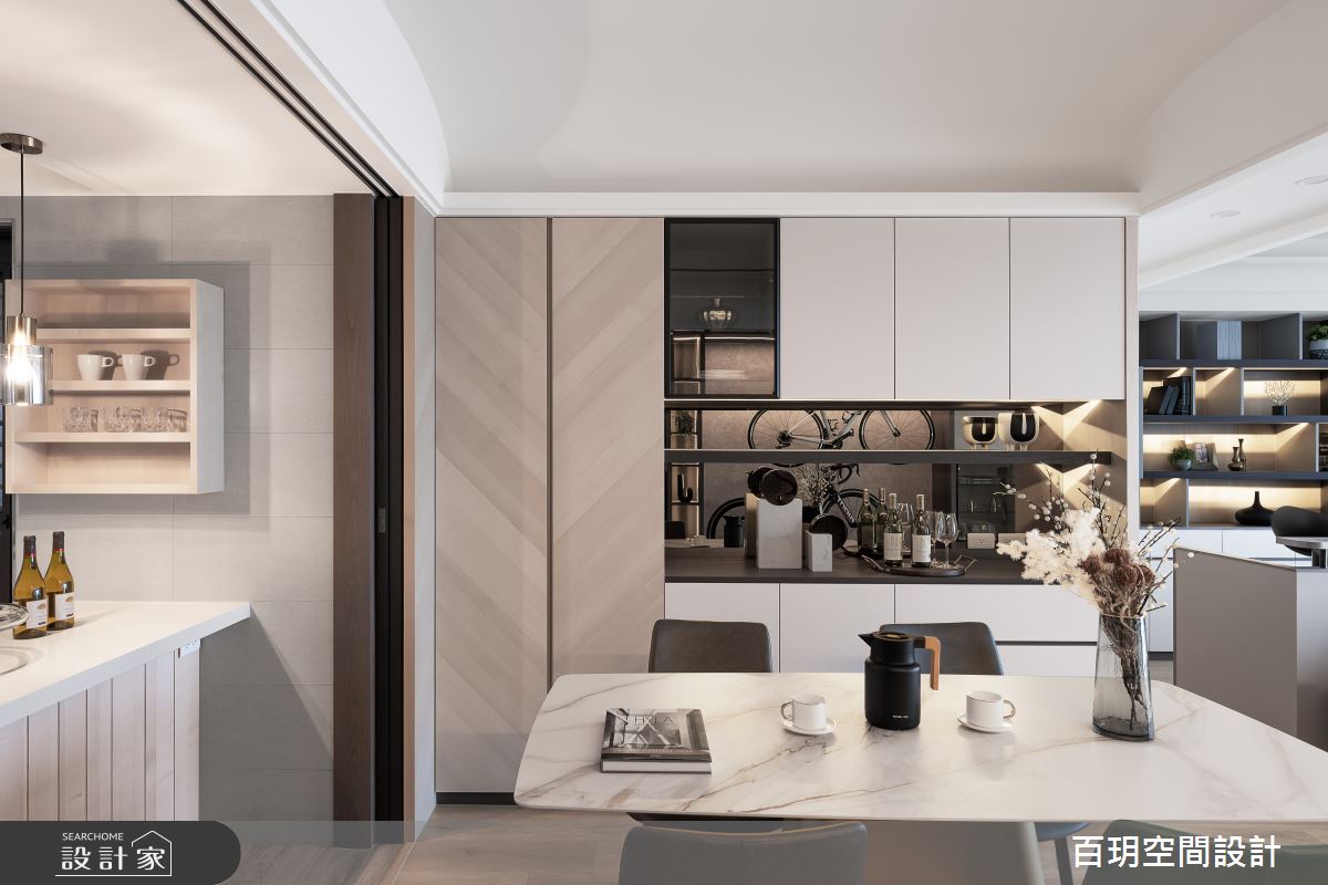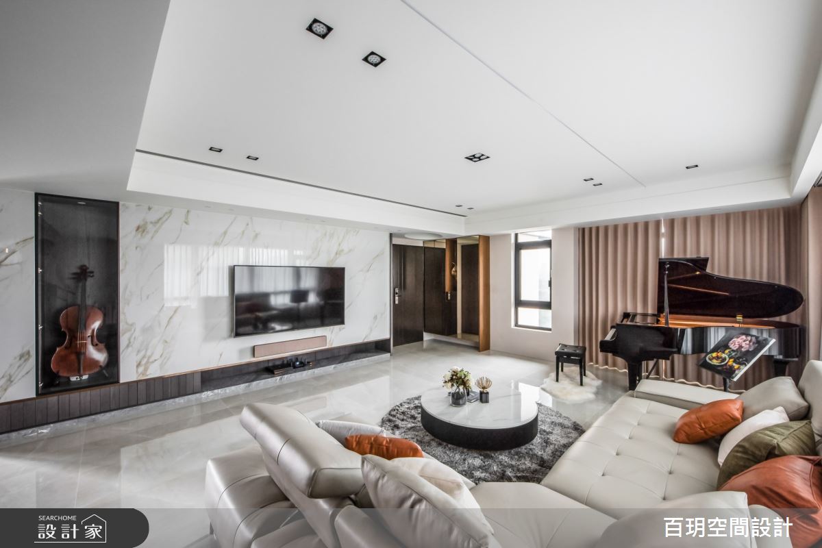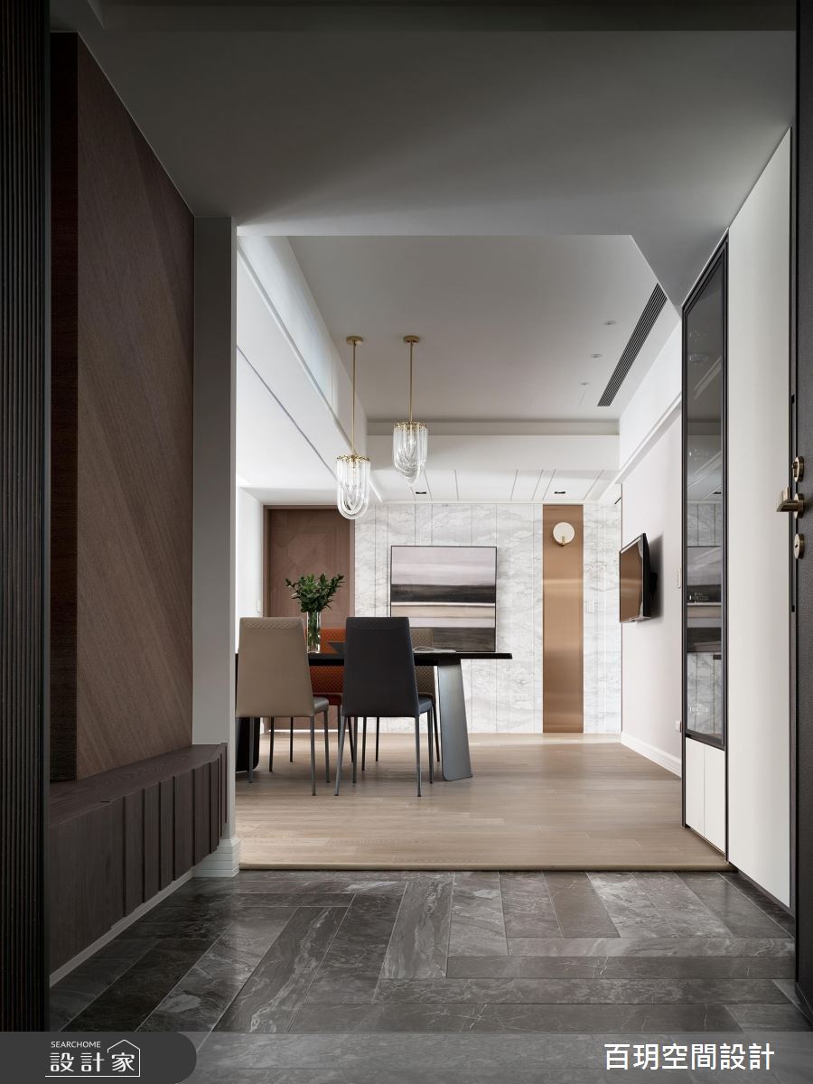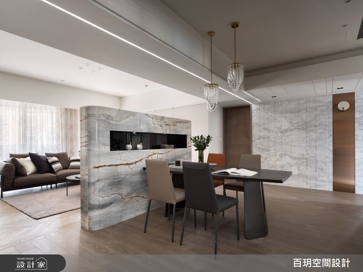 由百玥空間設計精心規劃的65坪三房住宅空間,家庭成員一共有2位大人、1位小孩。因應屋主需求,設計師運用現代風作為主軸,搭配乳膠漆、海島型木地板、鐵件、鍍鈦金屬、木作貼皮、鋼刷木皮、大理石、磁磚、皮革、石材、繃布、噴漆,打造全家人的夢想家居。