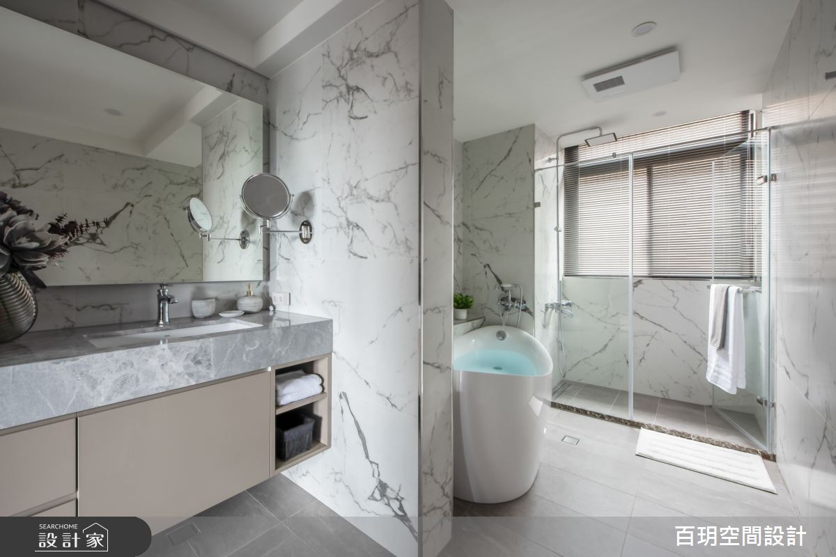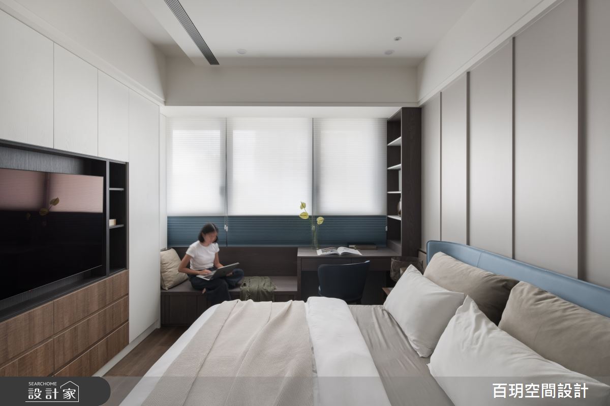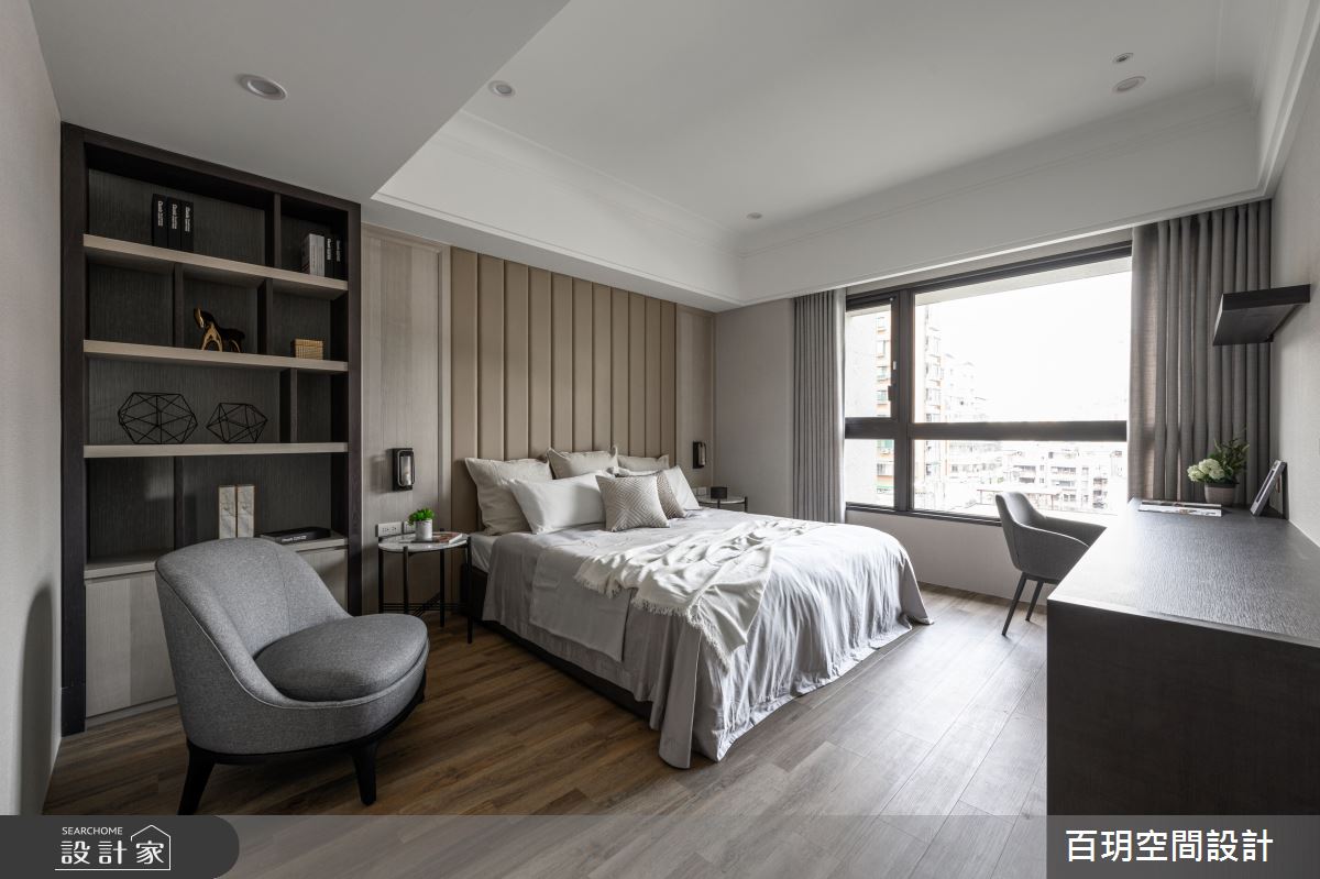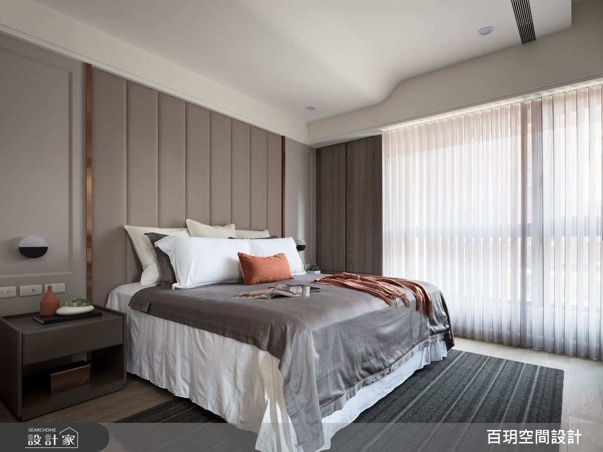 本案為百玥空間設計的62坪現代風新成屋(5年以下)設計作品,格局為單層四房的居住空間。居住成員包含2位大人。全室建材的搭配,應用乳膠漆、壁紙、超耐磨木地板、石英磚/拋光石英磚、鐵件、鍍鈦金屬、木作貼皮、系統板材、大理石、磁磚、水泥/水泥粉光、皮革、噴漆,展現溫馨的居家氛圍。