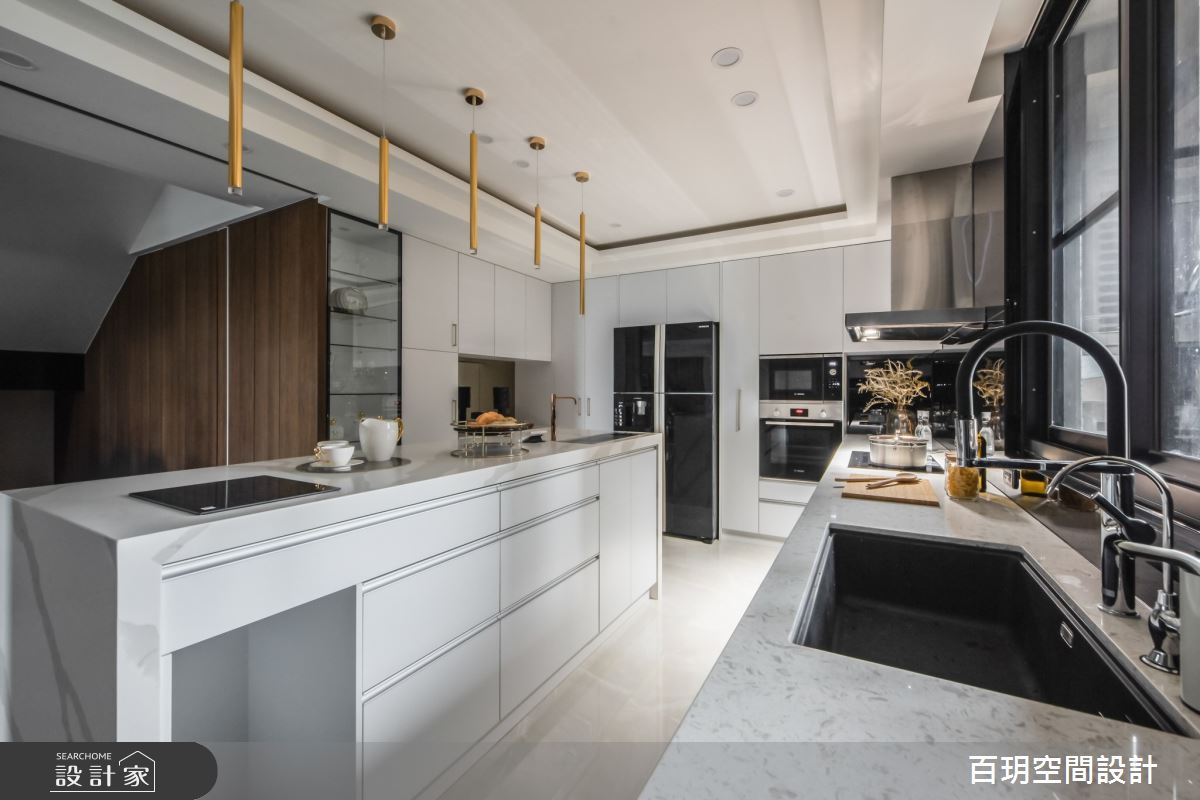 來自百玥空間設計的89坪現代風住宅案,屋主一家人共有2位大人、2位小孩,是一間單層新成屋(5年以下)的四房格局,設計師藉由建材以乳膠漆、壁紙、大圖輸出、海島型木地板、石英磚/拋光石英磚、鐵件、鍍鈦金屬、木作貼皮、鋼刷木皮、系統板材、大理石、皮革、石材、線板、噴漆、清水模特殊漆塗料的搭配應用,實現一家人的理想生活。