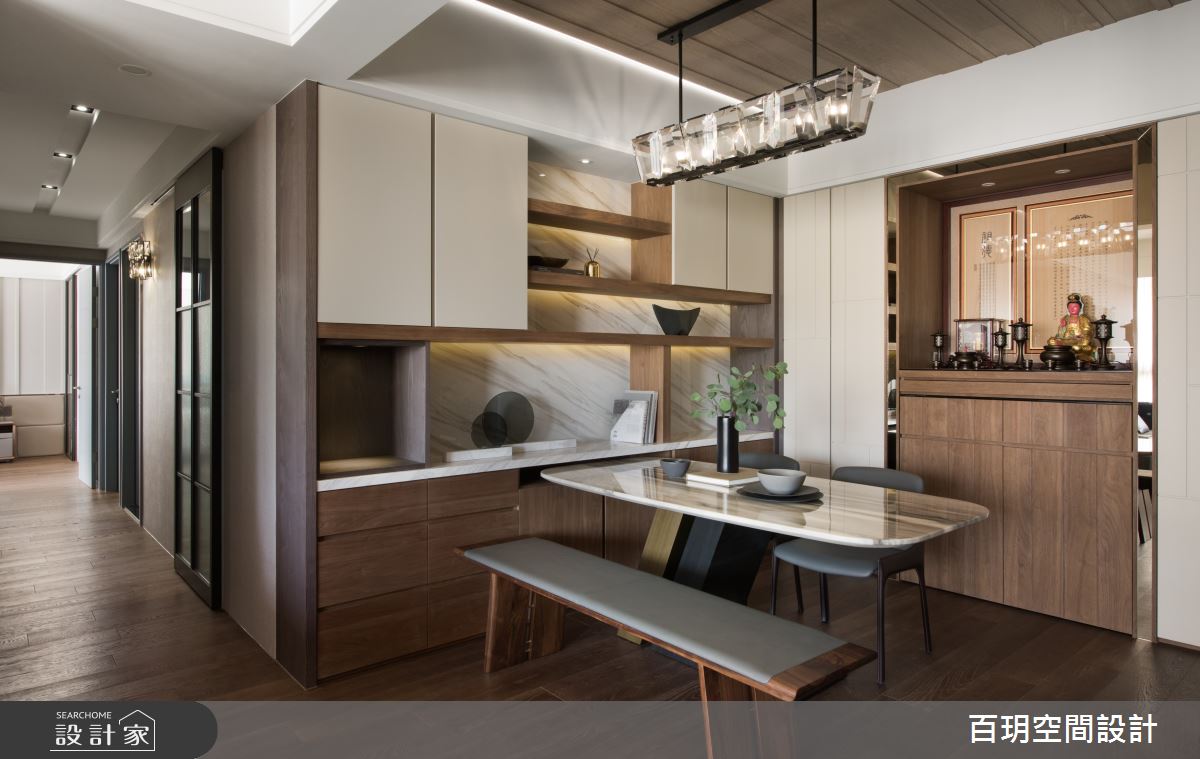 本案為百玥空間設計的75坪人文禪風新成屋(5年以下)設計作品,格局為單層四房的居住空間。居住成員包含2位大人、1位小孩。全室建材的搭配,應用乳膠漆、超耐磨木地板、石英磚/拋光石英磚、鐵件、鍍鈦金屬、木作貼皮、系統板材、大理石、噴漆、大理石石皮,展現溫馨的居家氛圍。