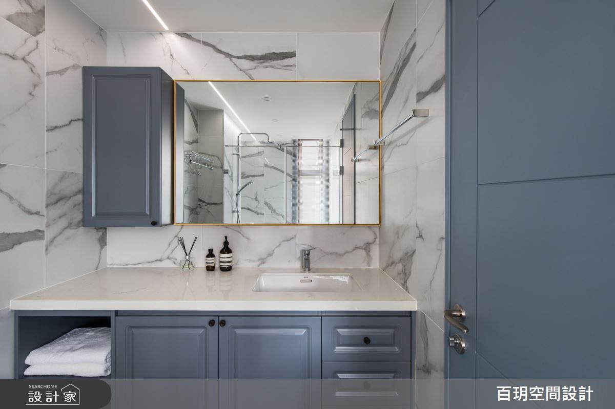 來自百玥空間設計的63坪美式風住宅案,屋主一家人共有2位大人、2位小孩,是一間單層新成屋(5年以下)的四房格局,設計師藉由建材以乳膠漆、超耐磨木地板、鐵件、鍍鈦金屬、木作貼皮、系統板材、大理石、磁磚、皮革、石材、繃布、線板、噴漆的搭配應用,實現一家人的理想生活。