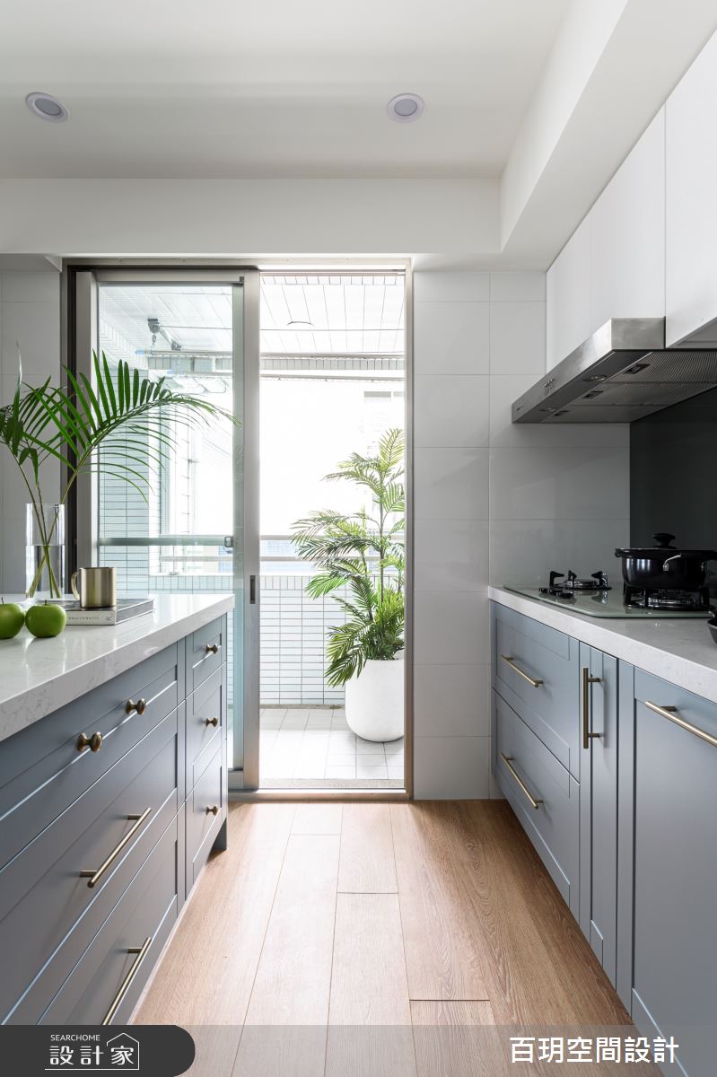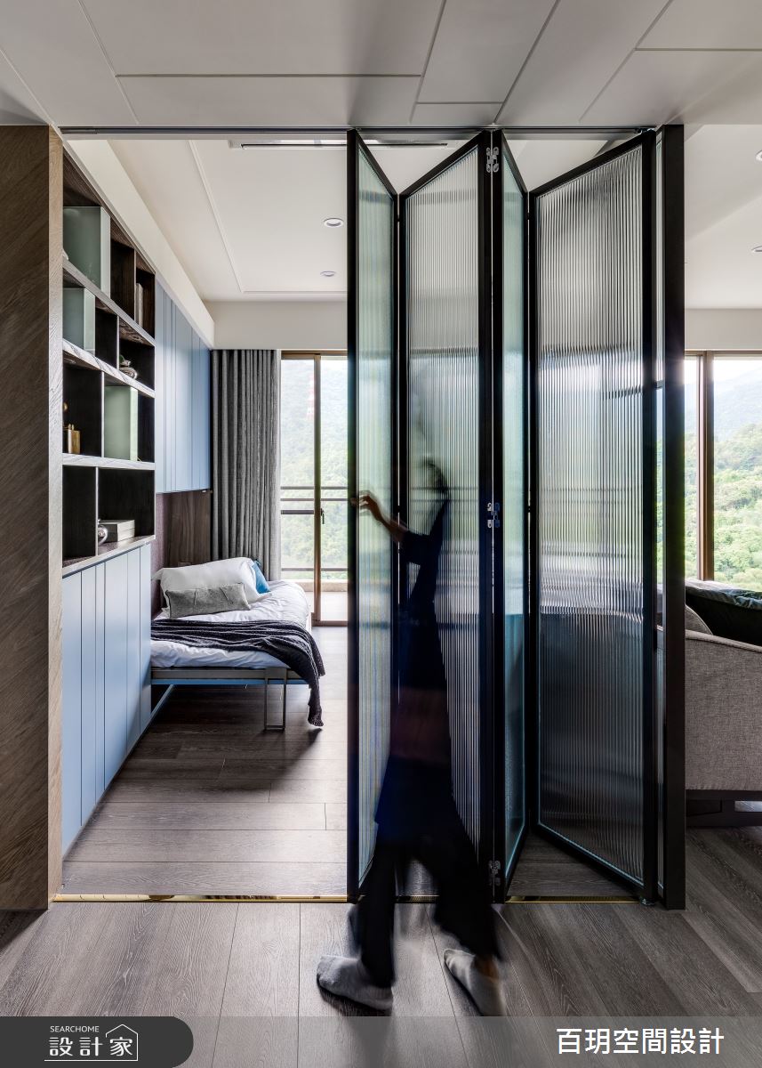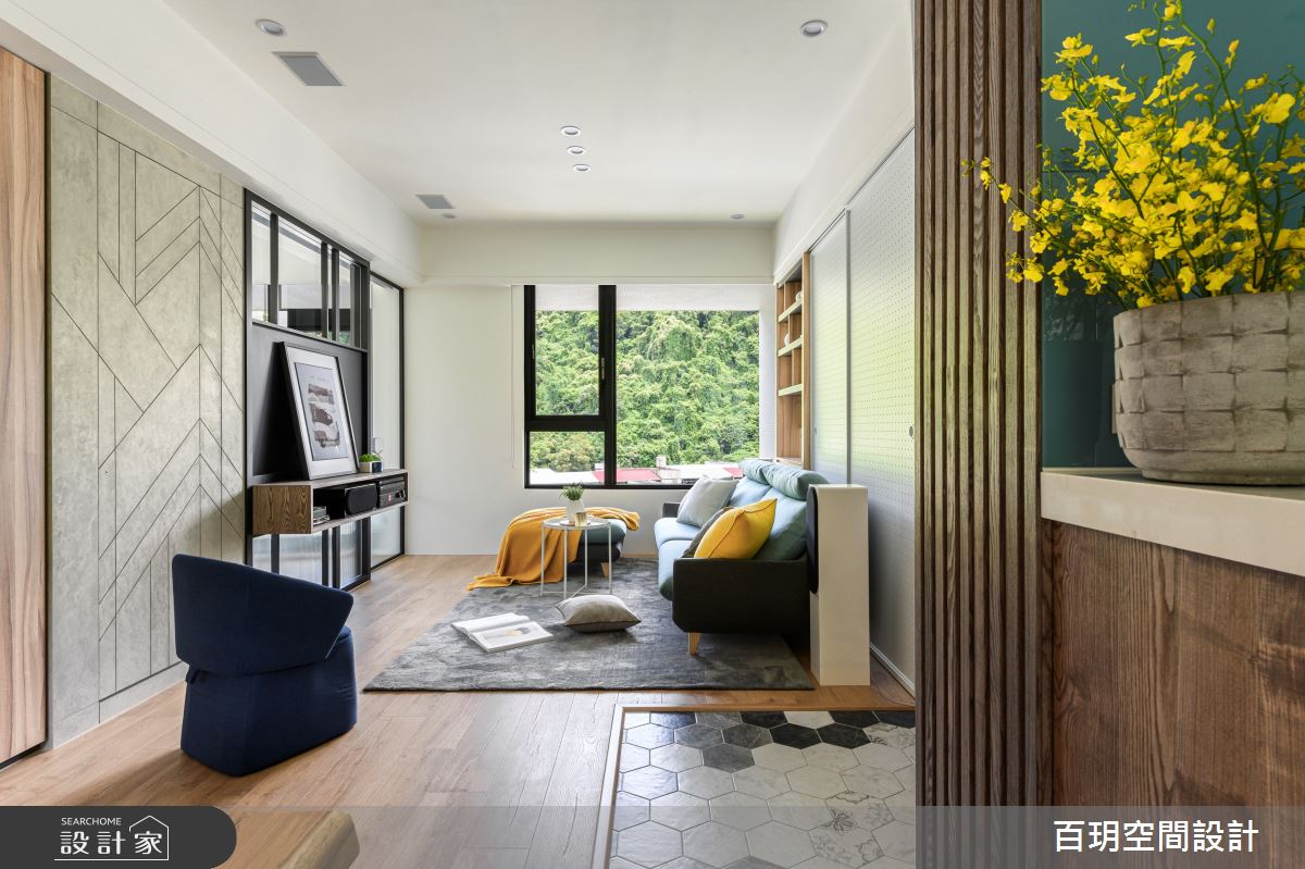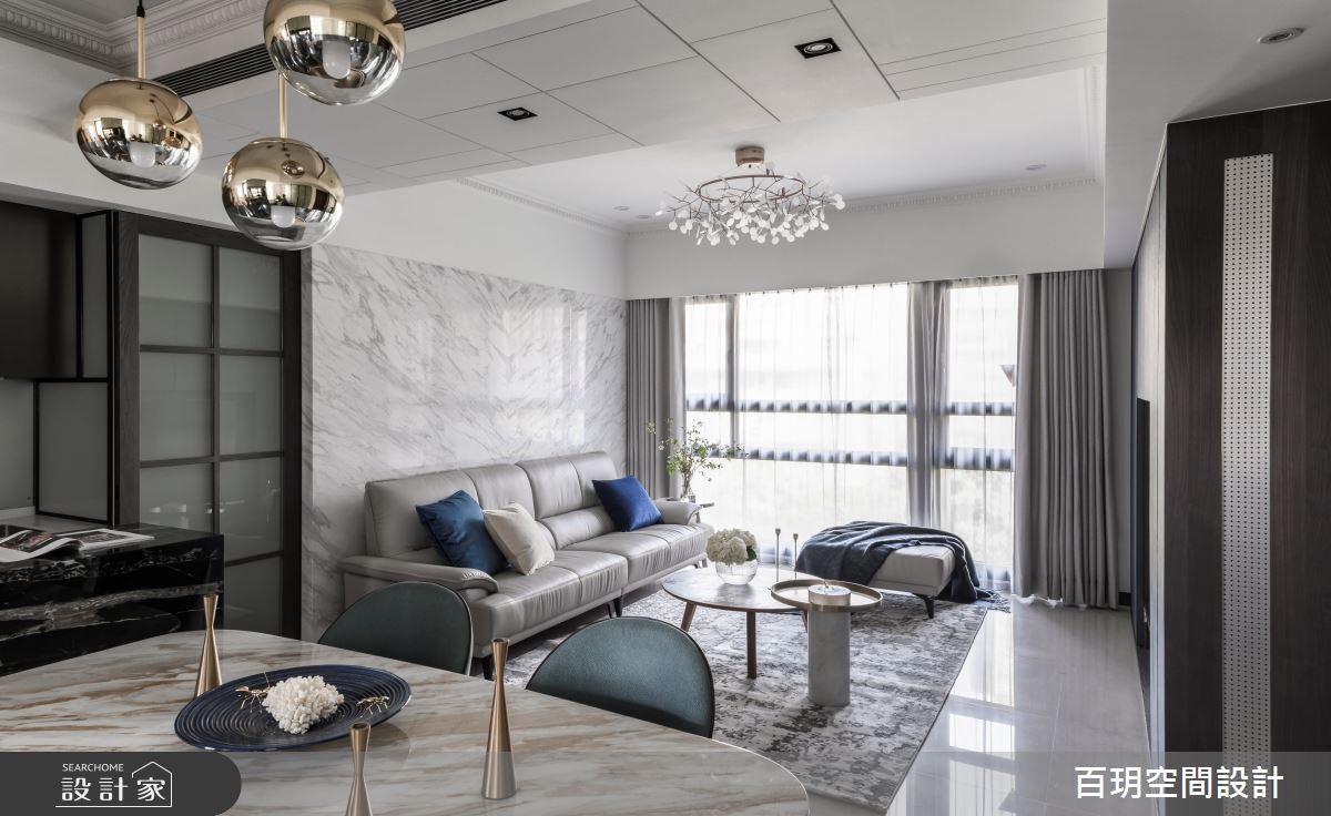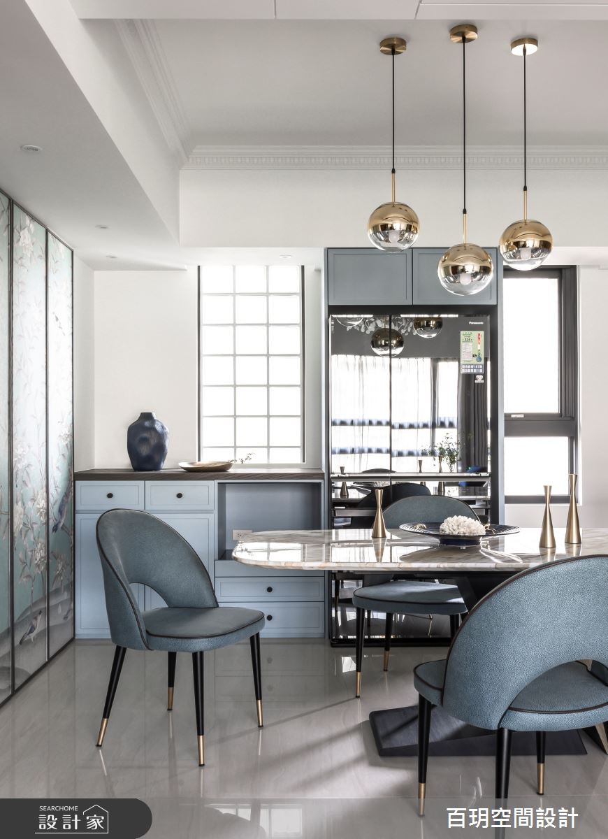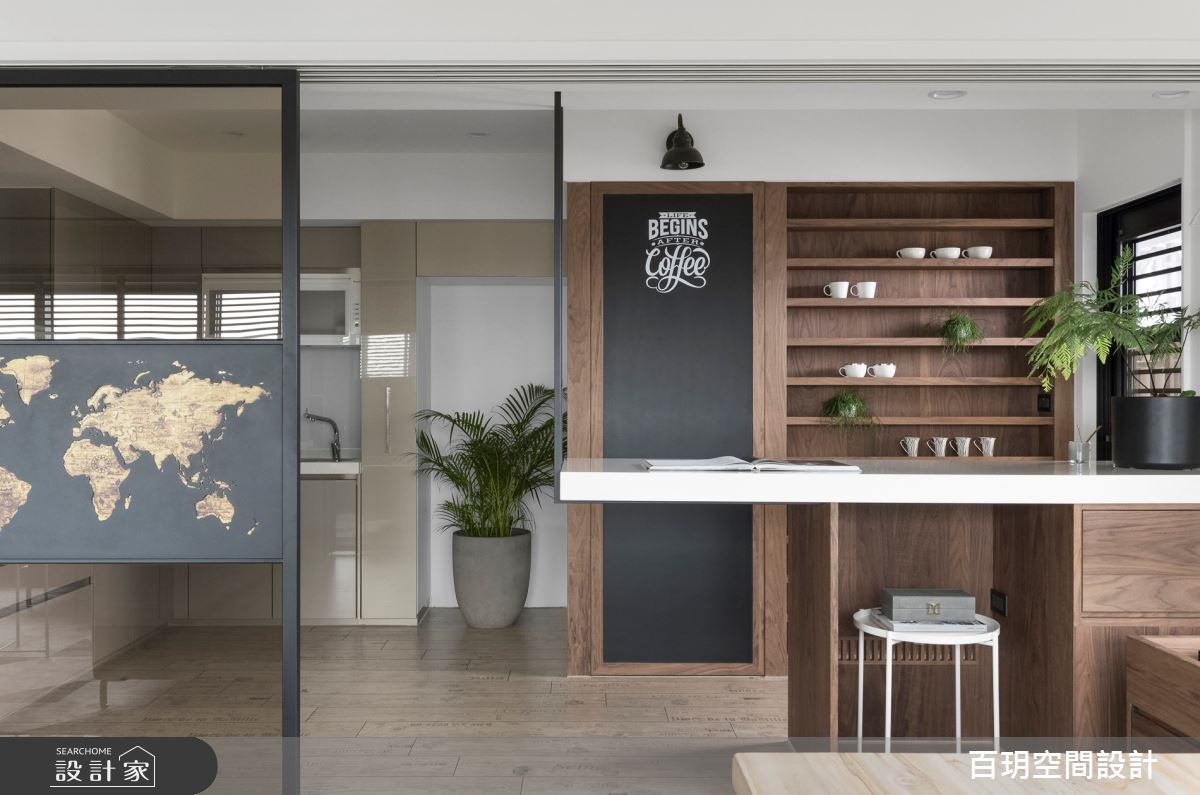 由百玥空間設計精心規劃的50坪三房住宅空間,家庭成員一共有2位大人、1位小孩。因應屋主需求,設計師運用混搭風作為主軸,搭配油漆、乳膠漆、超耐磨木地板、石英磚/拋光石英磚、不鏽鋼、鐵件、鍍鈦金屬、木作貼皮、系統板材、水泥/水泥粉光、樂土、賽麗石、皮革、繃布、噴漆、清水模特殊漆塗料,打造全家人的夢想家居。