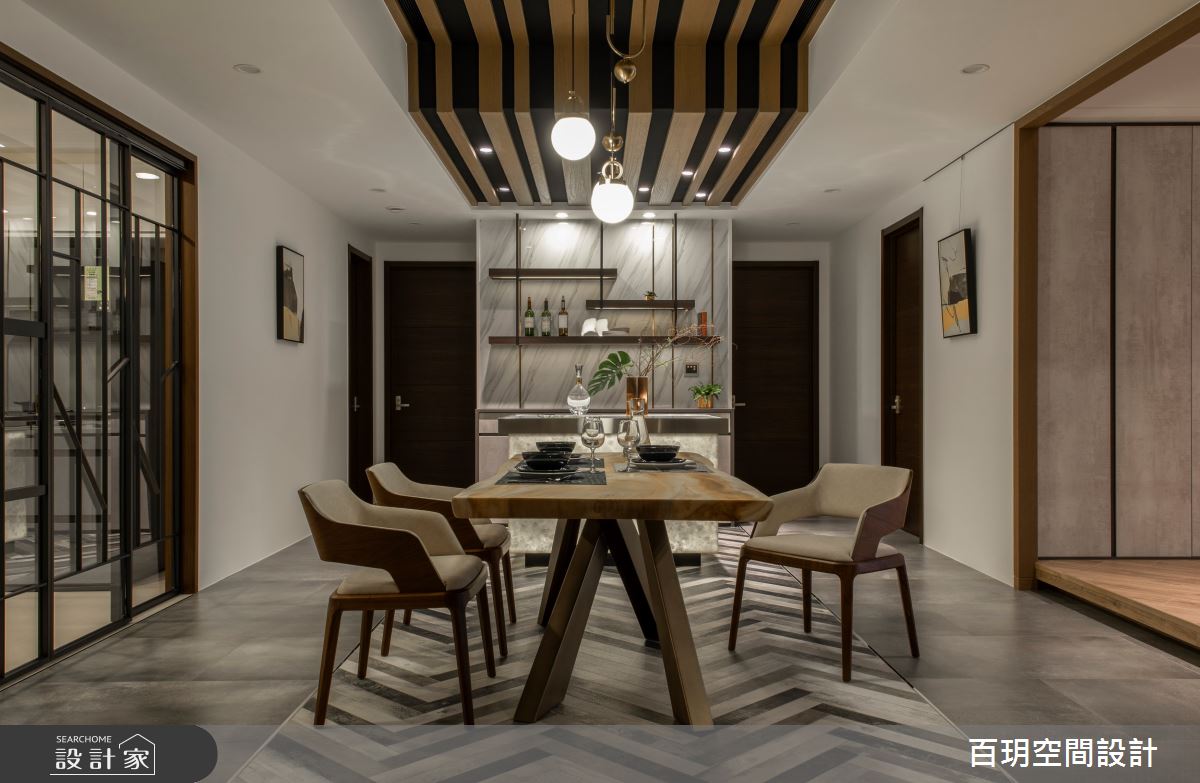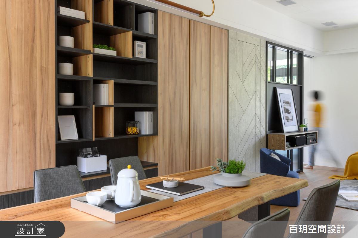由百玥空間設計精心規劃的95坪四房住宅空間,家庭成員一共有2位大人、2位小孩。因應屋主需求,設計師運用混搭風作為主軸,搭配乳膠漆、超耐磨木地板、鐵件、鍍鈦金屬、木作貼皮、系統板材、大理石、磁磚、樂土、賽麗石、噴漆、清水模特殊漆塗料,打造全家人的夢想家居。