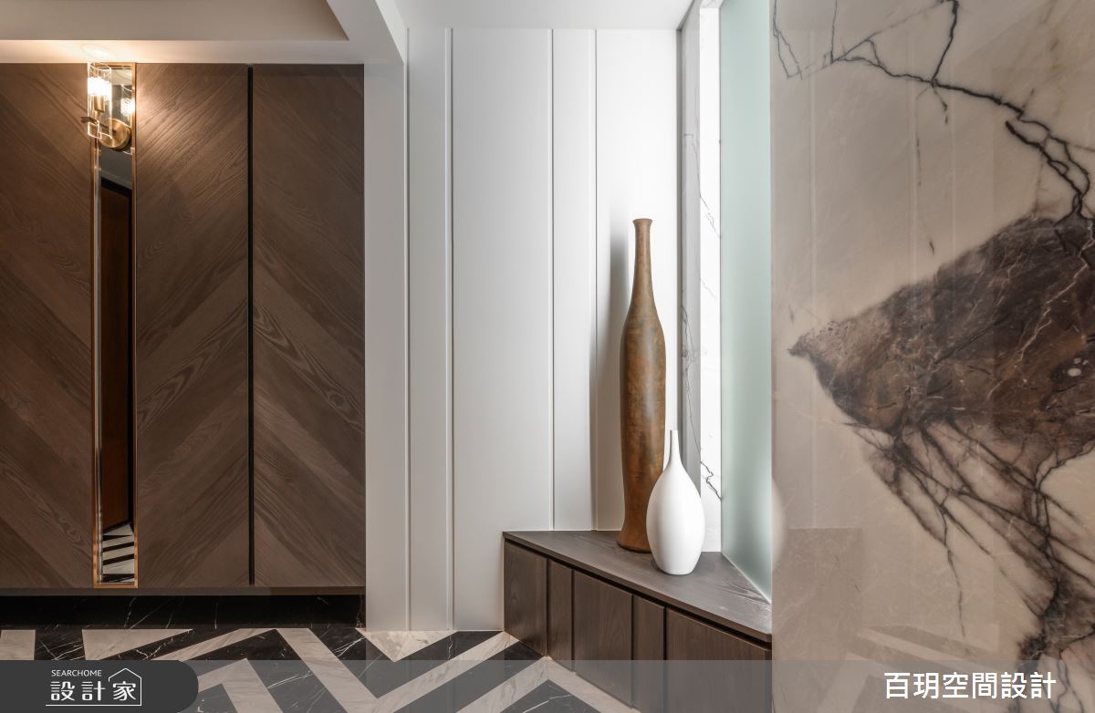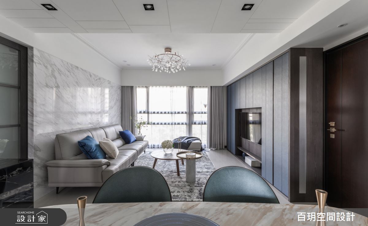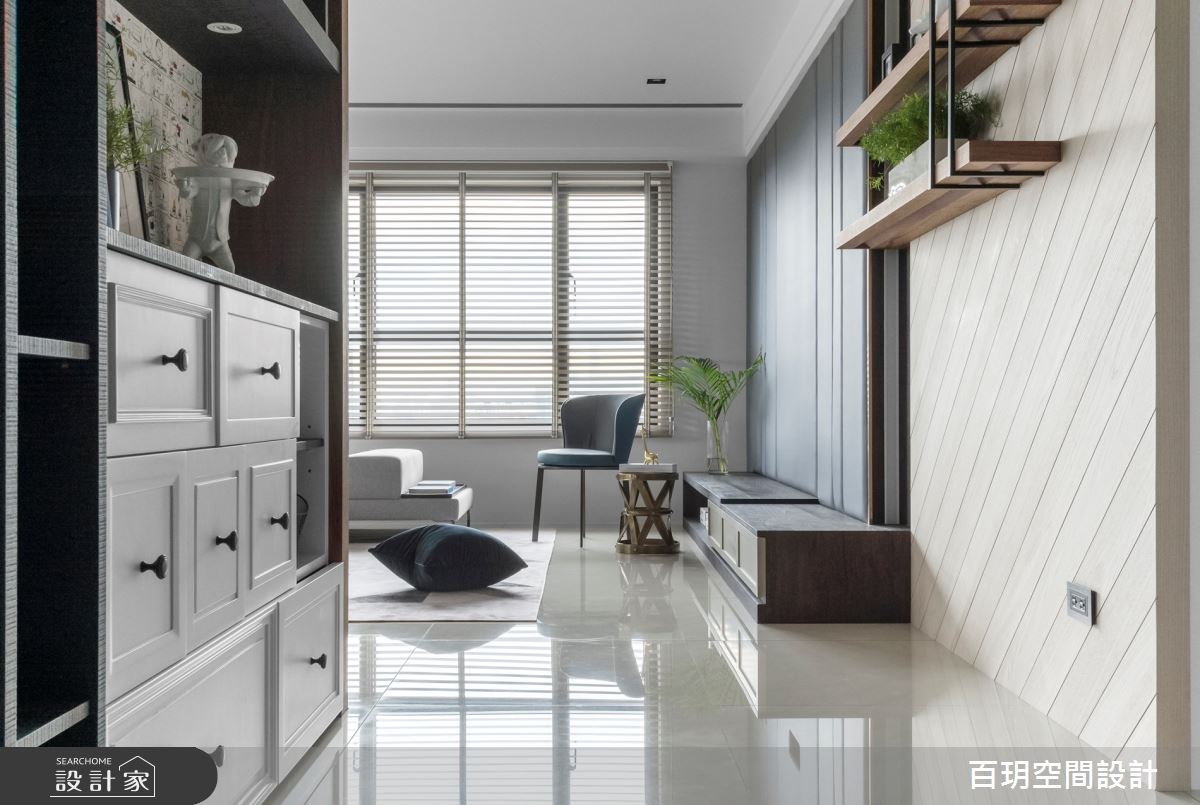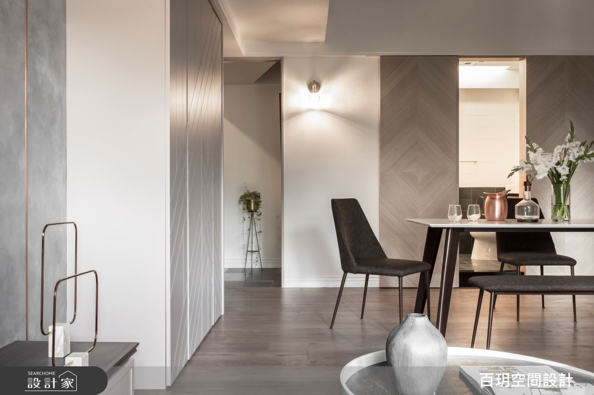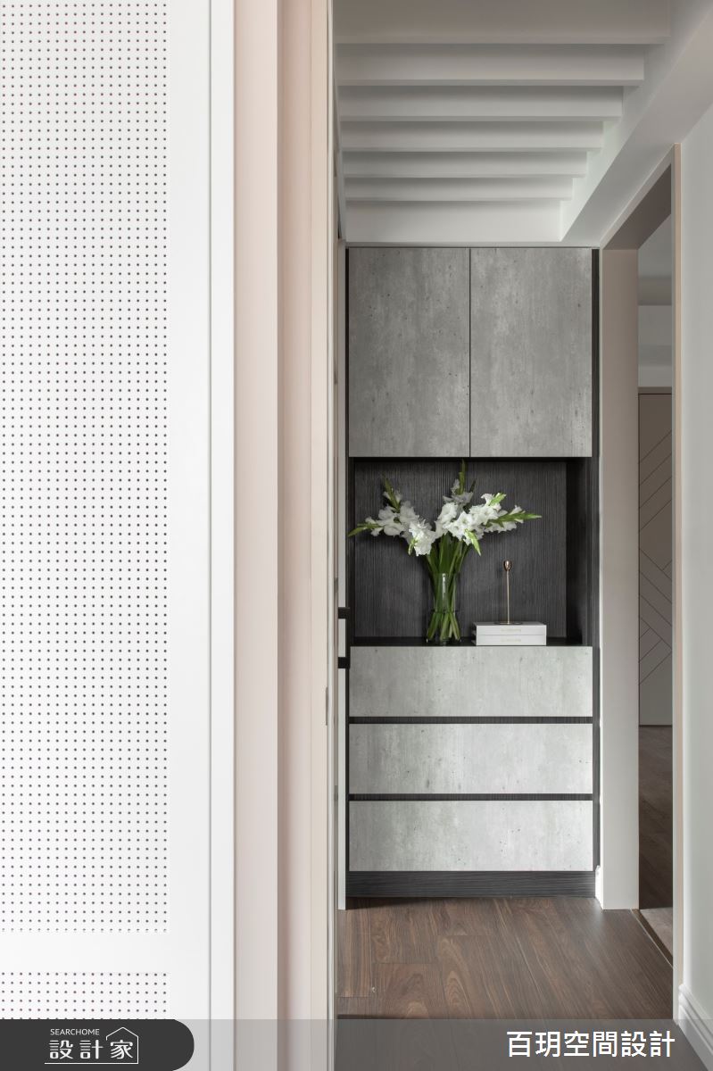 來自百玥空間設計的48坪現代風住宅案,屋主一家人共有2位大人,是一間單層新成屋(5年以下)的四房格局,設計師藉由建材以油漆、乳膠漆、壁紙、大圖輸出、不鏽鋼、鐵件、木作貼皮、大理石、賽麗石、皮革、繃布、線板、噴漆的搭配應用,實現一家人的理想生活。