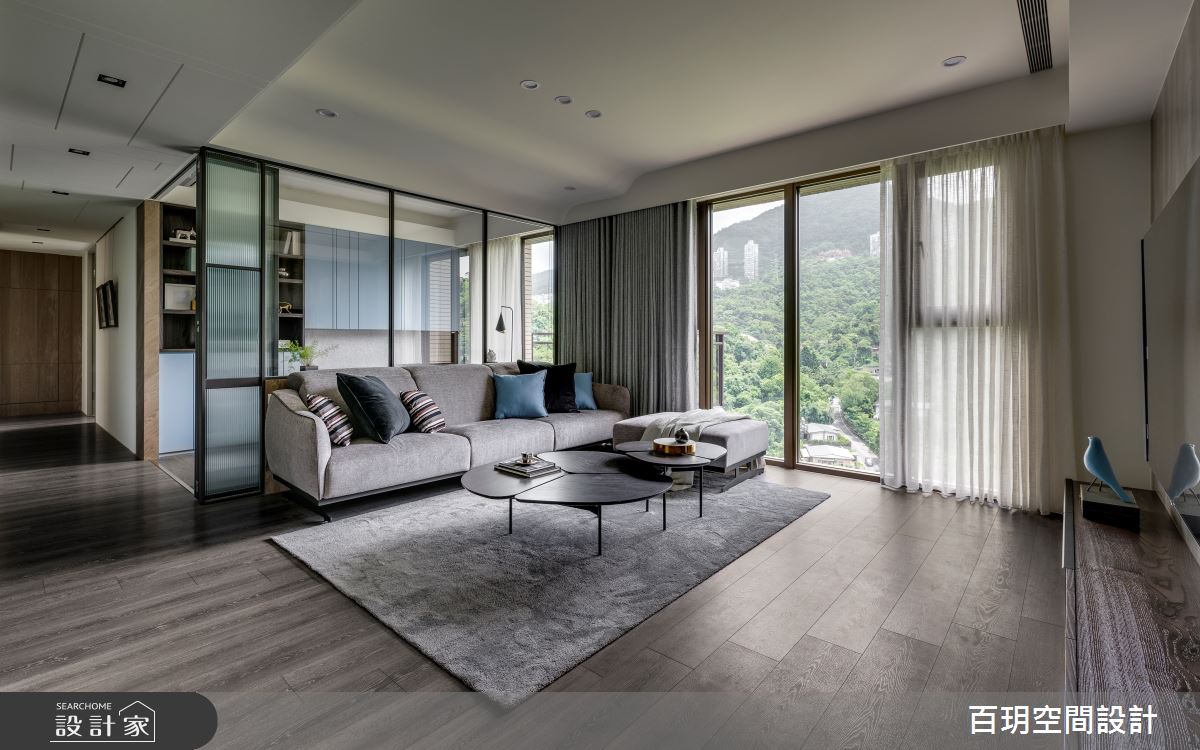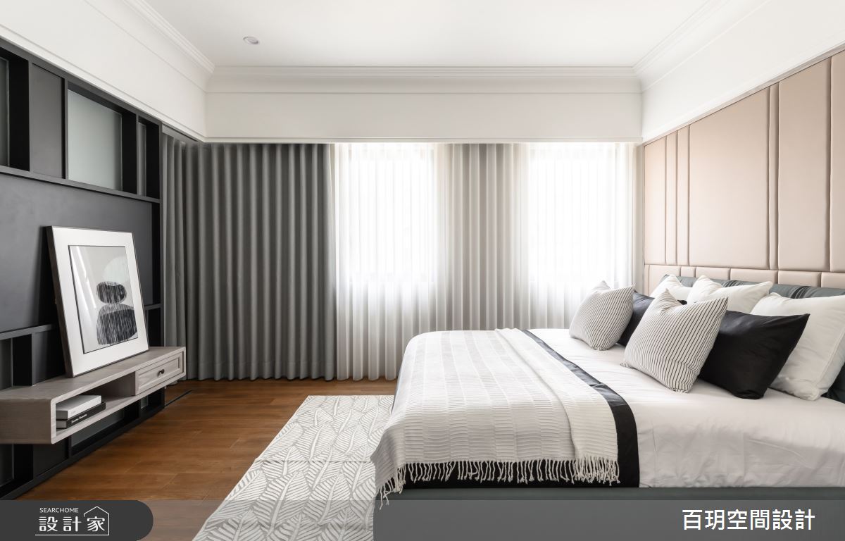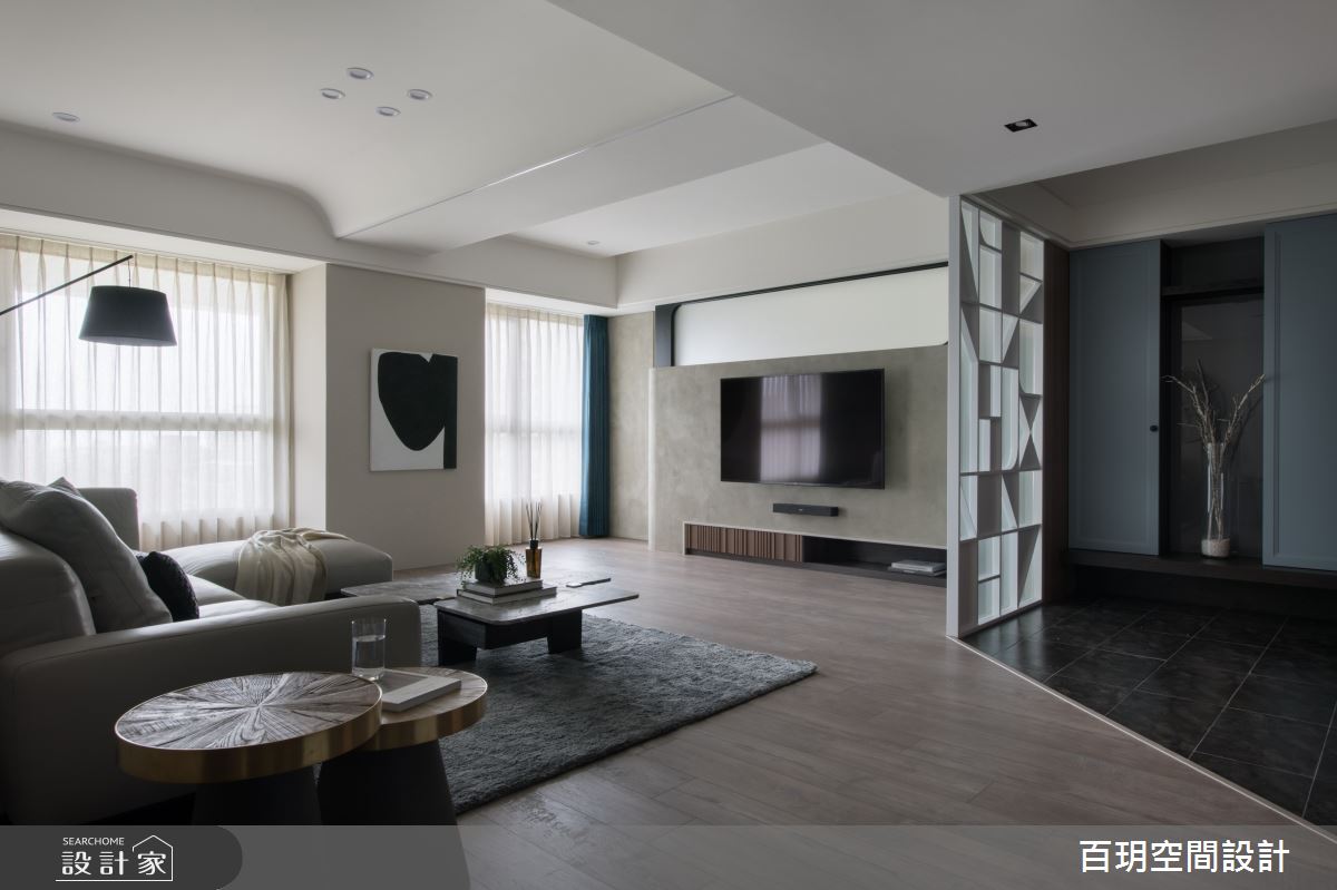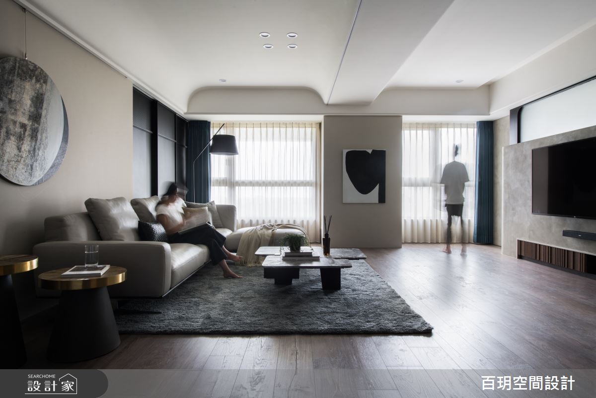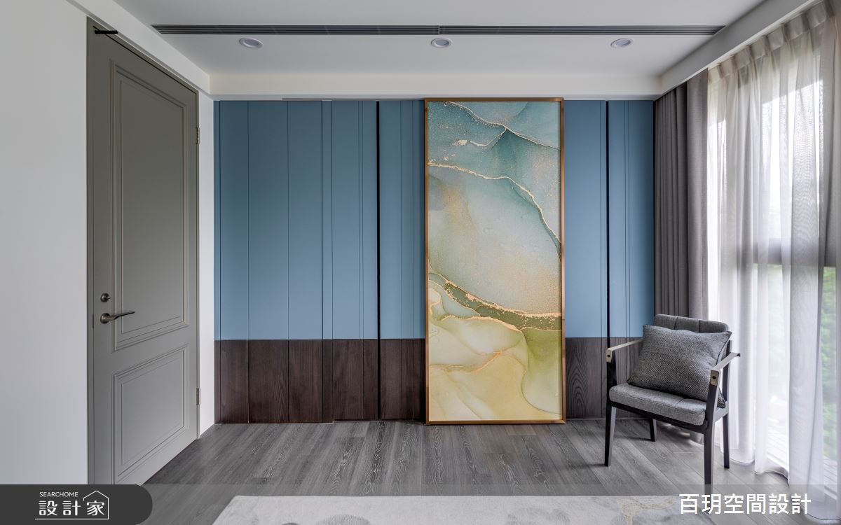 百玥空間設計以油漆、乳膠漆、海島型木地板、超耐磨木地板、石英磚/拋光石英磚、不鏽鋼、鐵件、烤玻、鍍鈦金屬、木作貼皮、鋼刷木皮、系統板材、大理石、磁磚、賽麗石、皮革、石材、繃布、噴漆的搭配應用,呈現現代風居家氛圍,將此間152坪、五房、單層、中古屋(5~15年)打造成舒適愜意的家庭空間,完成2位大人、2位小孩全家人的夢想之居。