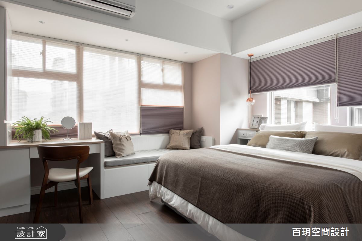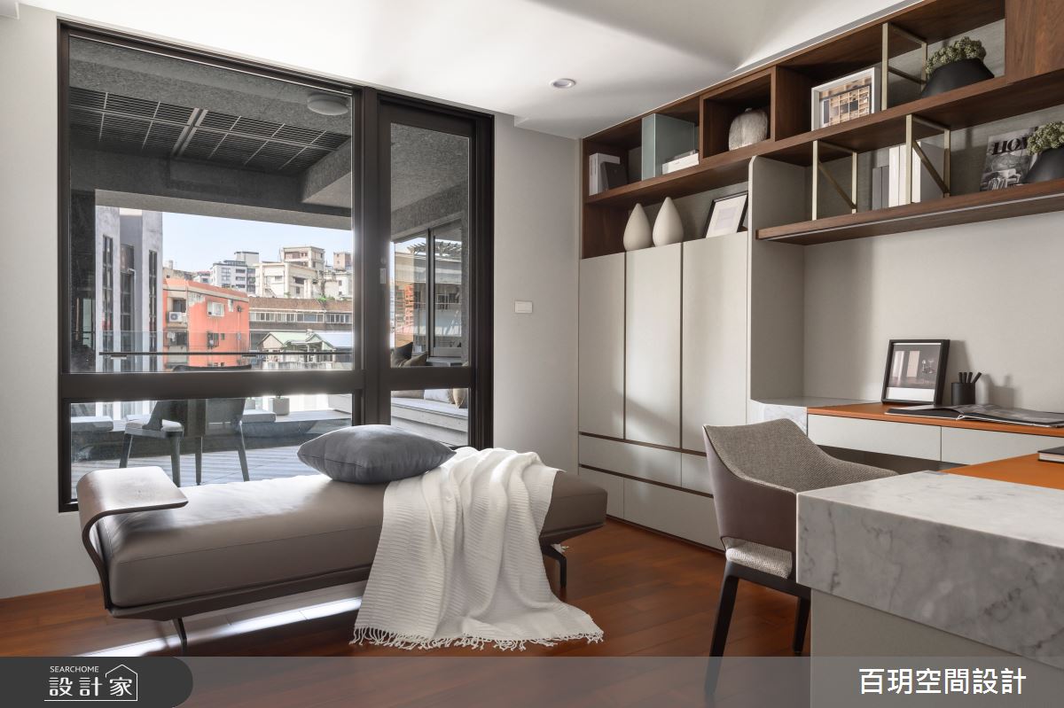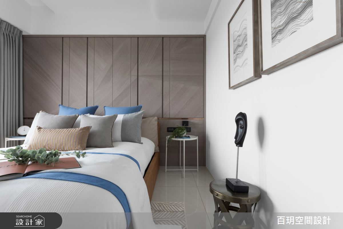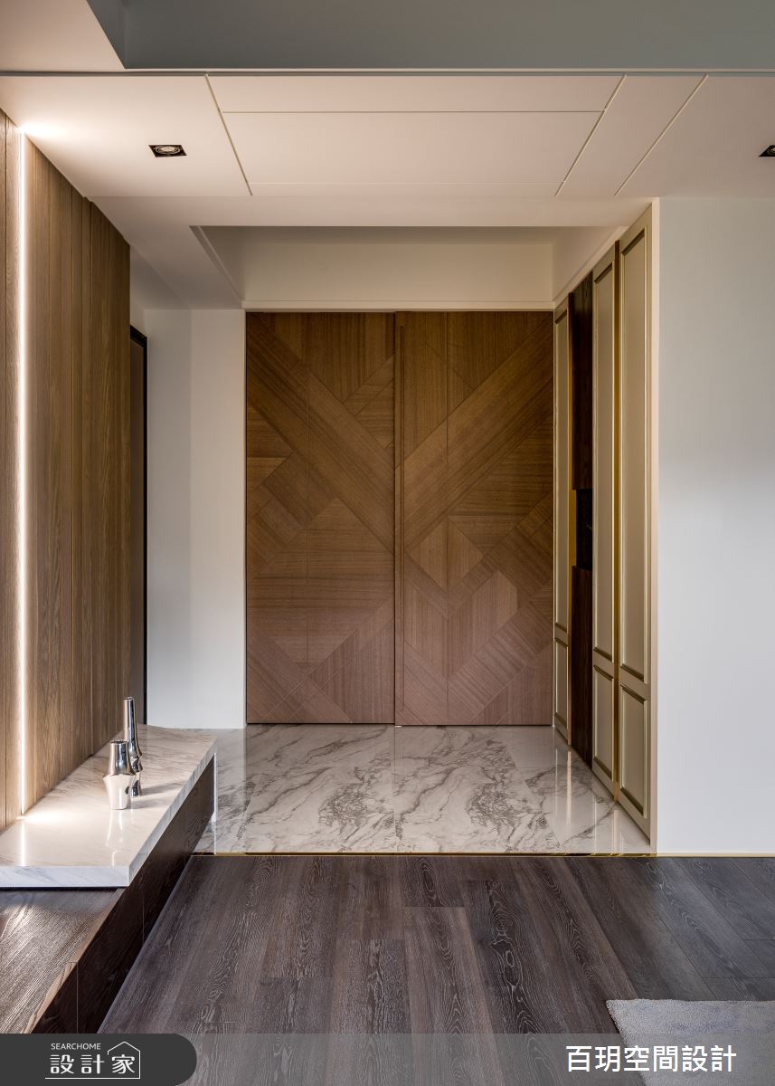 百玥空間設計以油漆、乳膠漆、海島型木地板、超耐磨木地板、石英磚/拋光石英磚、不鏽鋼、鐵件、烤玻、鍍鈦金屬、木作貼皮、鋼刷木皮、系統板材、大理石、磁磚、賽麗石、皮革、石材、繃布、噴漆的搭配應用,呈現現代風居家氛圍,將此間152坪、五房、單層、中古屋(5~15年)打造成舒適愜意的家庭空間,完成2位大人、2位小孩全家人的夢想之居。