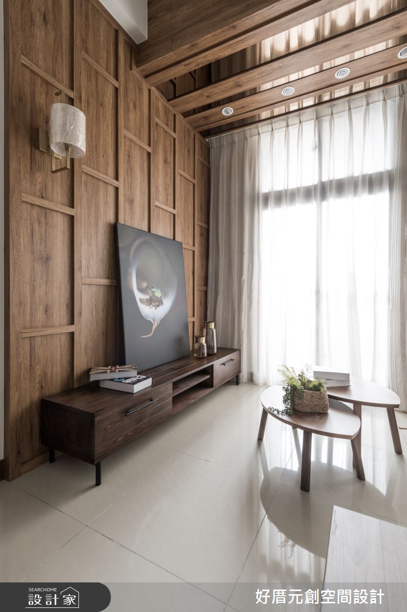 由好厝元創設計精心規劃的13坪一房住宅空間,家庭成員一共有2位大人。因應屋主需求,設計師運用休閒風作為主軸,搭配乳膠漆、壁紙、海島型木地板、木作貼皮、烤漆、系統板材、皮革,打造全家人的夢想家居。