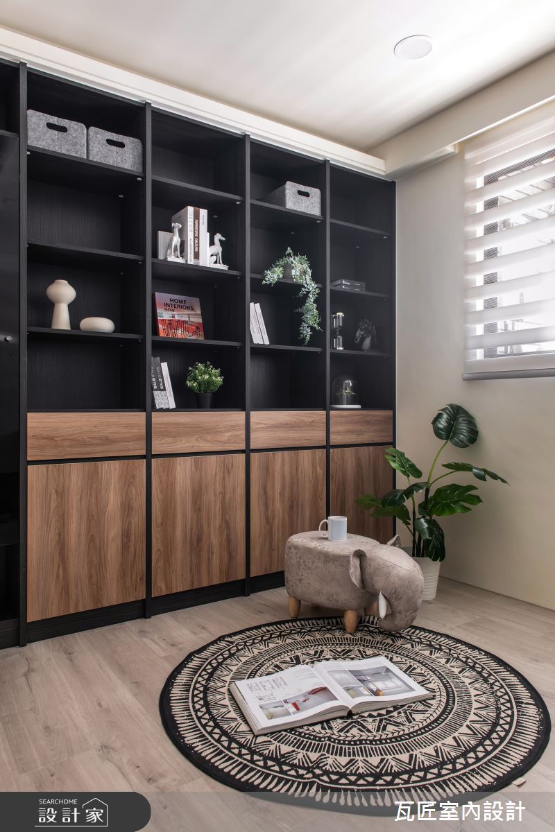 由瓦匠室內設計精心規劃的37坪四房住宅空間,家庭成員一共有2位大人、2位小孩。因應屋主需求,設計師運用現代風作為主軸,搭配乳膠漆、壁紙、鐵件、賽麗石、日本矽酸鈣板、進口磁磚、進口薄磚、實木木皮、訂製廚具、系統傢俱、進口五金、期貨壁紙、特殊塗料、窗簾,打造全家人的夢想家居。
