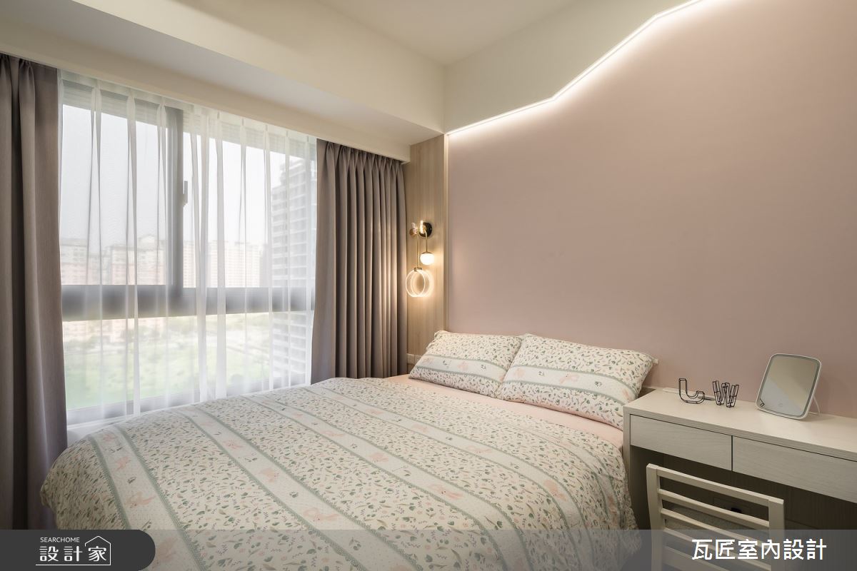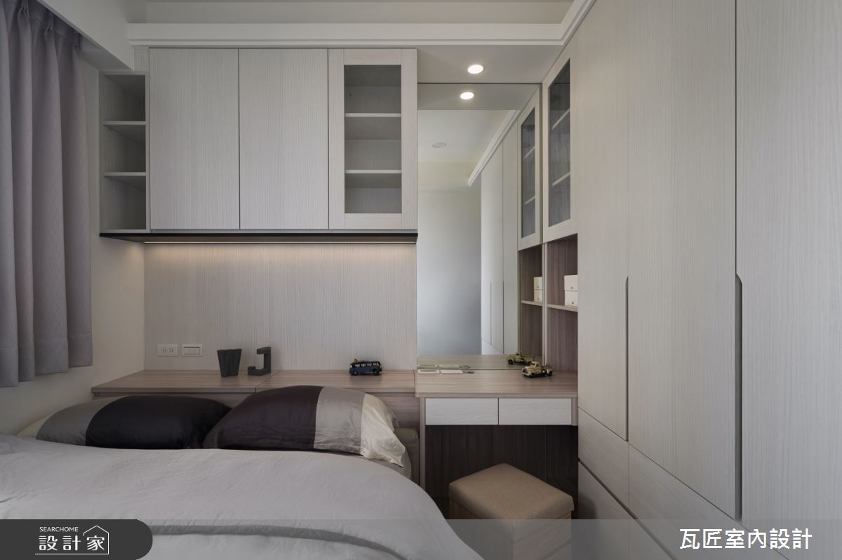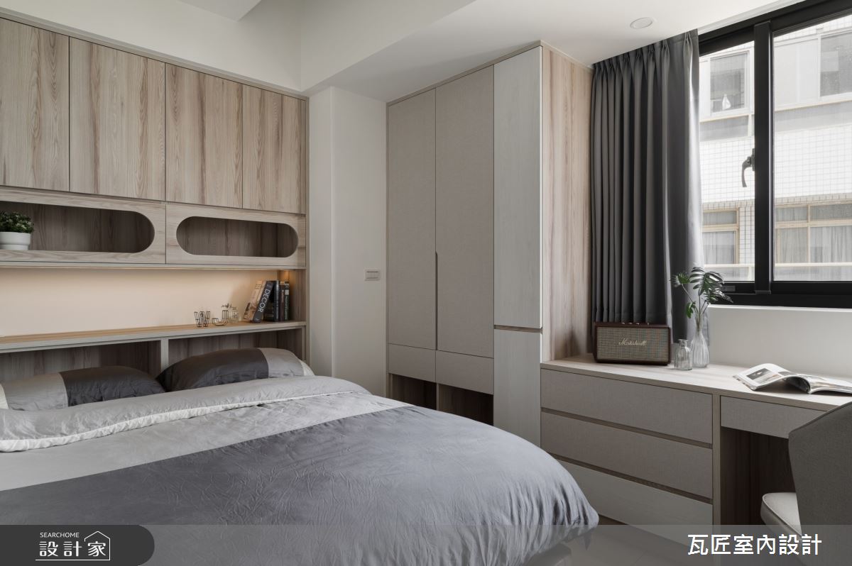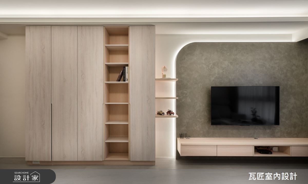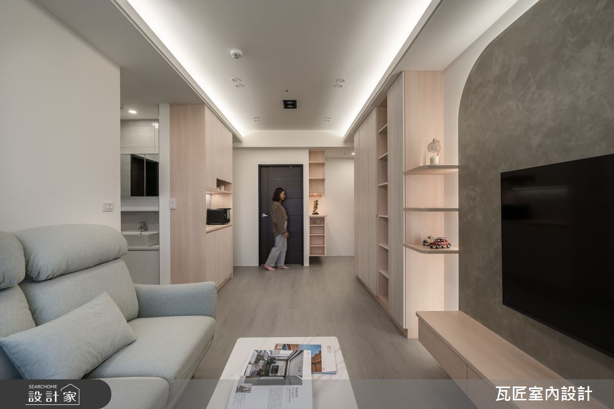 本案為瓦匠室內設計的21.5坪現代風新成屋(5年以下)設計作品,格局為單層三房的居住空間。全室建材的搭配,應用壁紙、水泥漆、超耐磨木地板、鐵件、鍍鈦金屬、木作貼皮、系統板材、無銅黑鏡、燈具、調光簾、捲簾、窗簾,展現溫馨的居家氛圍。