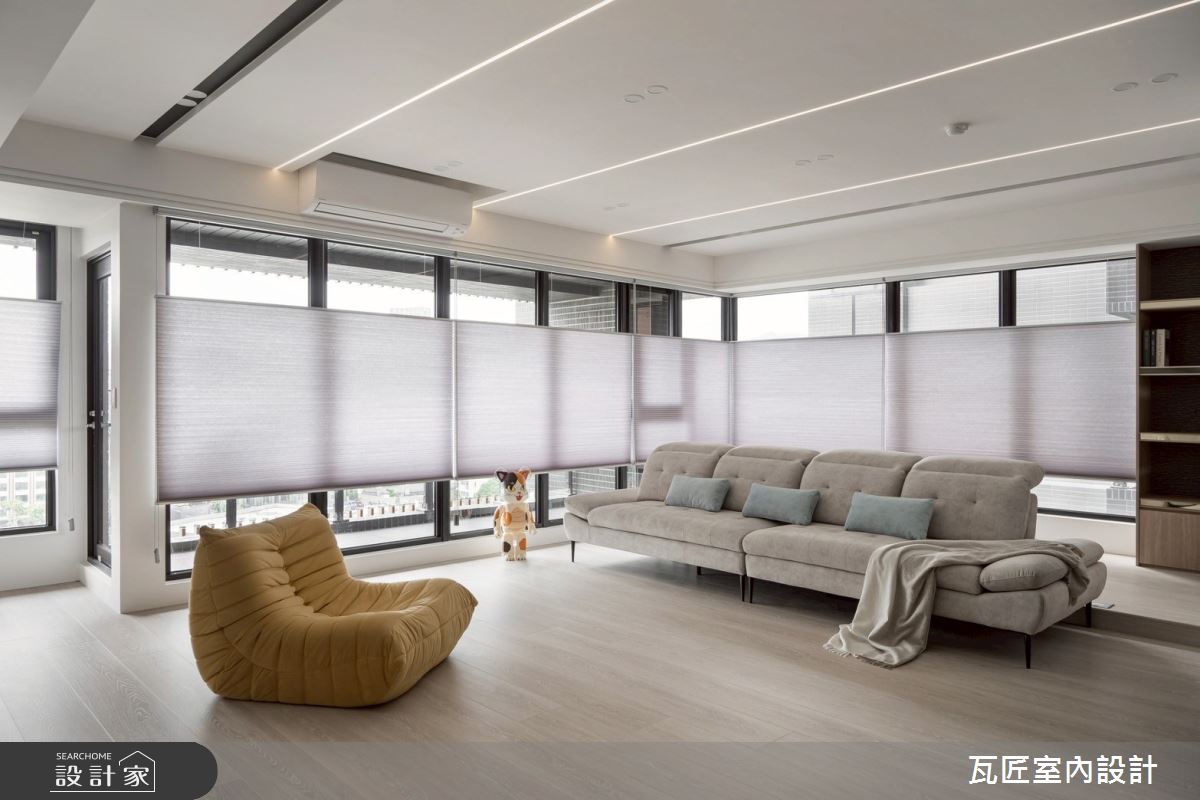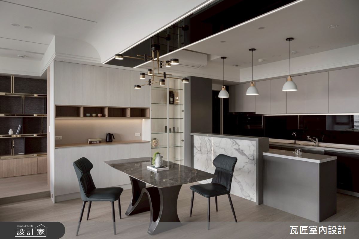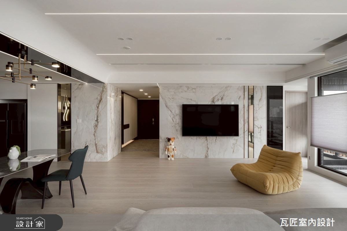 來自瓦匠室內設計的40坪輕奢風住宅案,屋主一家人共有2位大人、2位小孩,是一間單層毛胚屋的四房格局,設計師藉由建材以乳膠漆、壁紙、超耐磨木地板、石英磚/拋光石英磚、鐵件、灰鏡(鋁框玻璃造型拉門)、黑玻、烤玻、鍍鈦金屬、木作貼皮、烤漆、系統板材、磁磚(薄板磁磚)、水泥/水泥粉光、人造石、賽麗石、石材、繃布、長虹玻璃、LED燈條、風琴簾的搭配應用,實現一家人的理想生活。