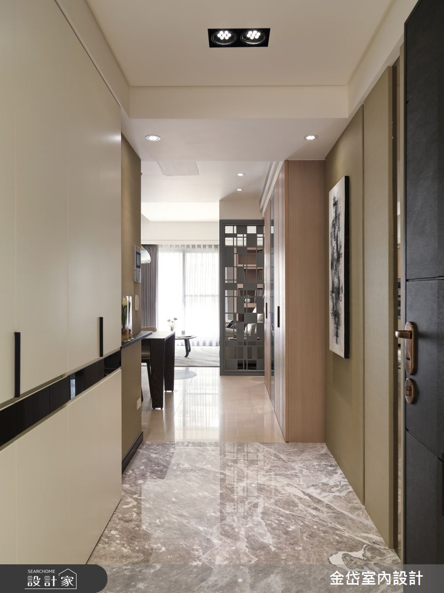 來自金岱室內裝修有限公司的36坪新古典住宅案,屋主一家人共有2位大人,是一間單層新成屋(5年以下)的三房格局,設計師藉由建材以乳膠漆、壁紙、石英磚/拋光石英磚、鐵件、灰鏡、茶玻、烤玻、木作貼皮、烤漆、鋼刷木皮、大理石、賽麗石、石材、線板、噴漆、噴砂玻璃的搭配應用,實現一家人的理想生活。