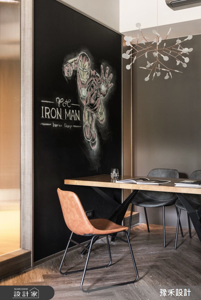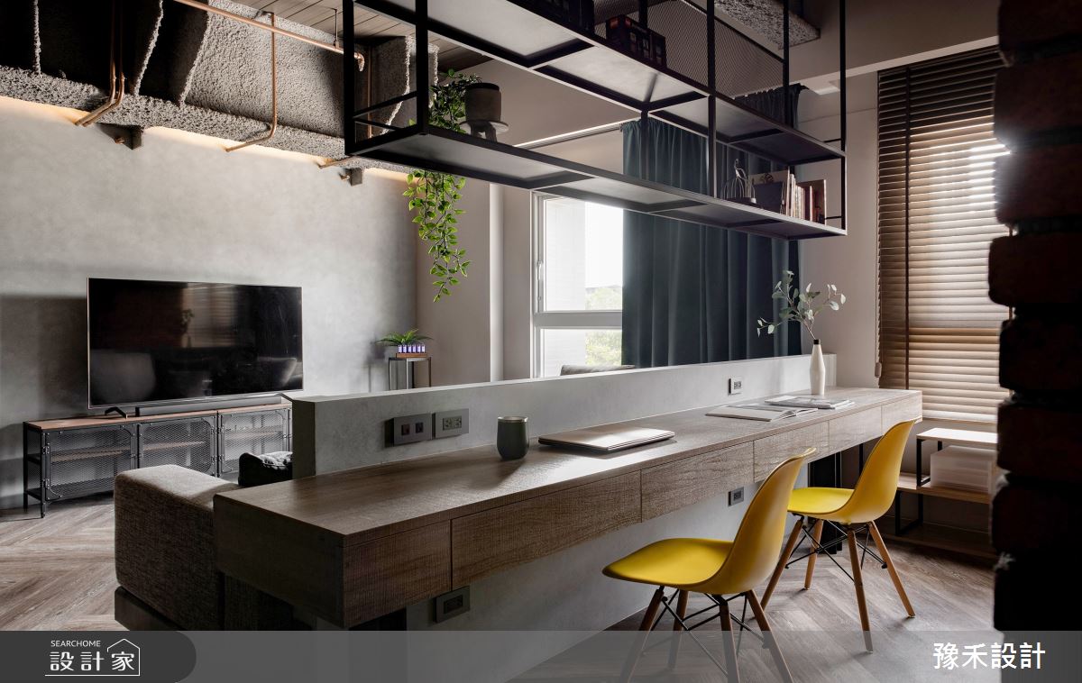 由豫禾設計精心規劃的28坪兩房住宅空間,家庭成員一共有1位大人、2位小孩。因應屋主需求,設計師運用工業風作為主軸,搭配乳膠漆、文化石、水泥漆、磁性漆/磁性黑板漆、PVC地板、鐵件、木作貼皮、系統板材、木百葉、軌道燈、噴漆、清水模、人字拼地板、金屬漆、鐵網、長虹玻璃,打造全家人的夢想家居。