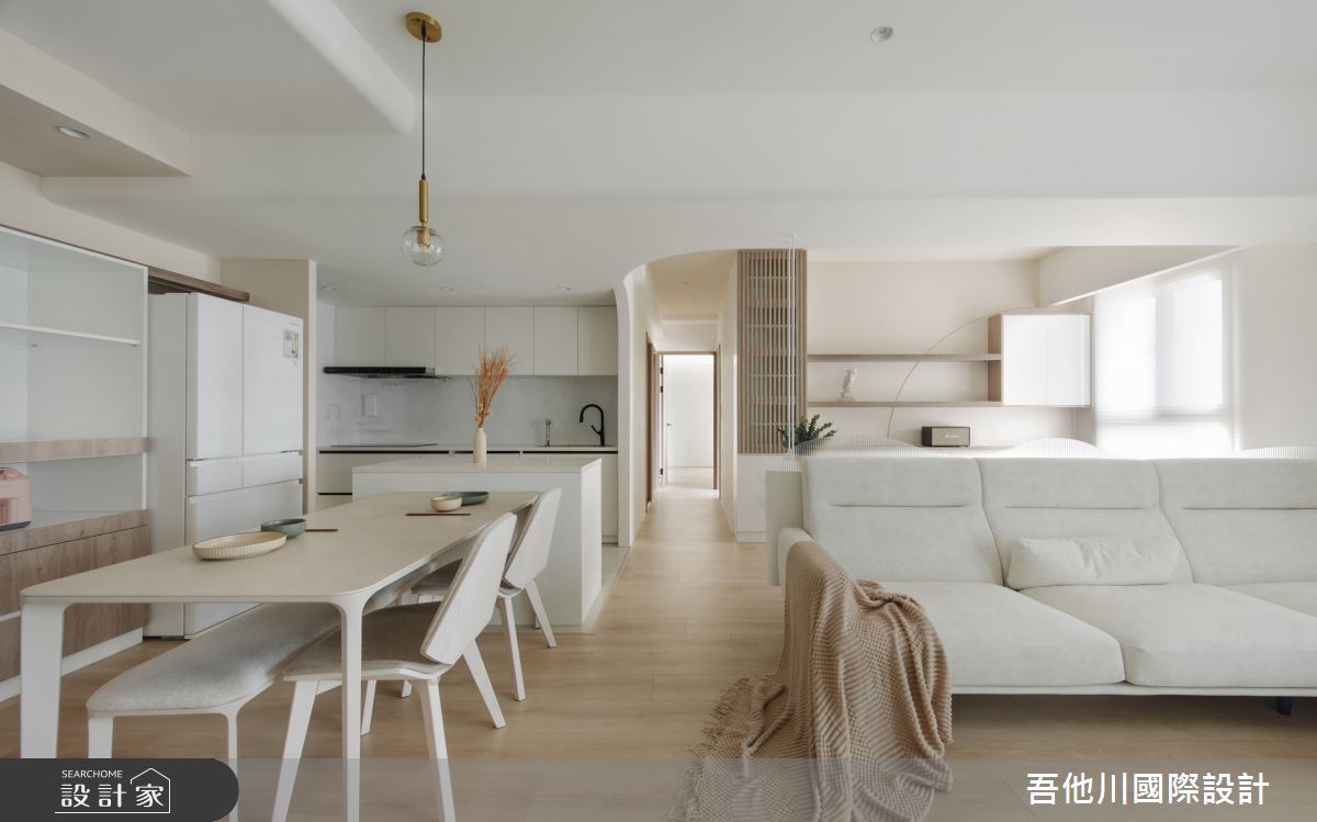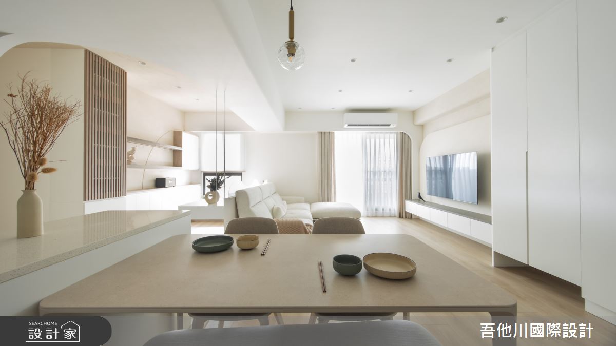 吾他川國際室內裝修有限公司以油漆、乳膠漆、六角磚/蜂巢磚、水泥漆、木地板、茶玻、系統板材的搭配應用,呈現北歐風居家氛圍,將此間20坪、三房、單層、新成屋(5年以下)打造成舒適愜意的家庭空間,完成全家人的夢想之居。
