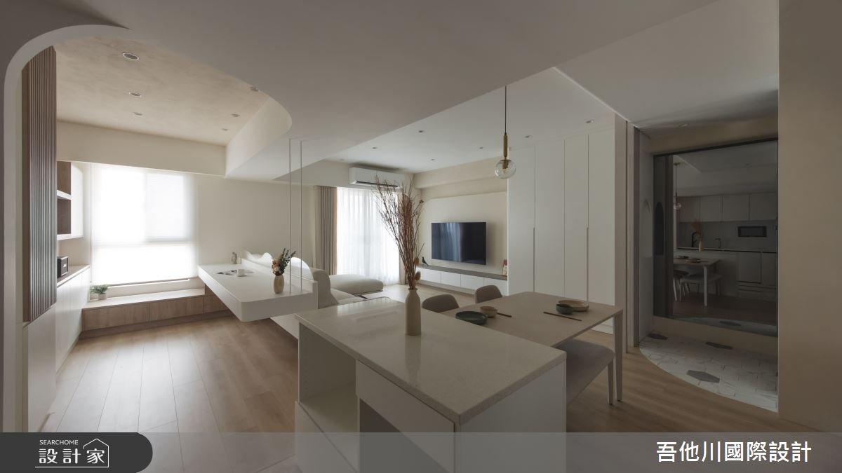 吾他川國際室內裝修有限公司以油漆、乳膠漆、水泥漆、超耐磨木地板、鐵件、明鏡、木作貼皮、烤漆、系統板材的搭配應用,呈現簡約風居家氛圍,將此間11坪、兩房、單層、新成屋(5年以下)打造成舒適愜意的家庭空間,完成全家人的夢想之居。