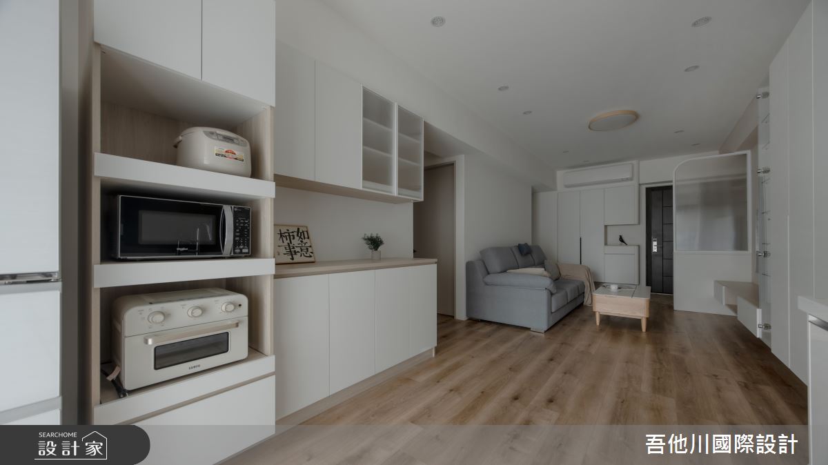 來自吾他川室內設計的21.4坪北歐風住宅案,是一間單層新成屋(5年以下)的三房格局,設計師藉由建材以油漆、乳膠漆、水泥漆、超耐磨木地板、木地板、木作貼皮、系統板材的搭配應用,實現一家人的理想生活。