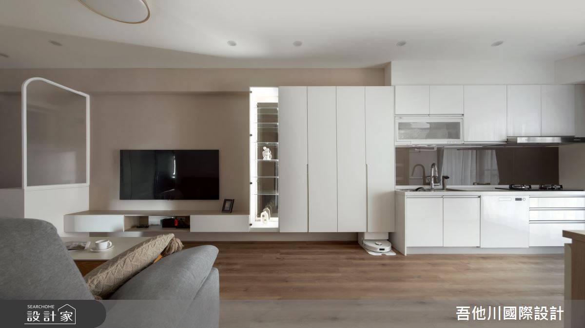 由吾他川室內設計精心規劃的25坪三房住宅空間。因應屋主需求,設計師運用現代風作為主軸,搭配油漆、乳膠漆、水泥漆、超耐磨木地板、木地板、PVC地板、灰鏡、木作貼皮、系統板材、軌道燈、線板,打造全家人的夢想家居。