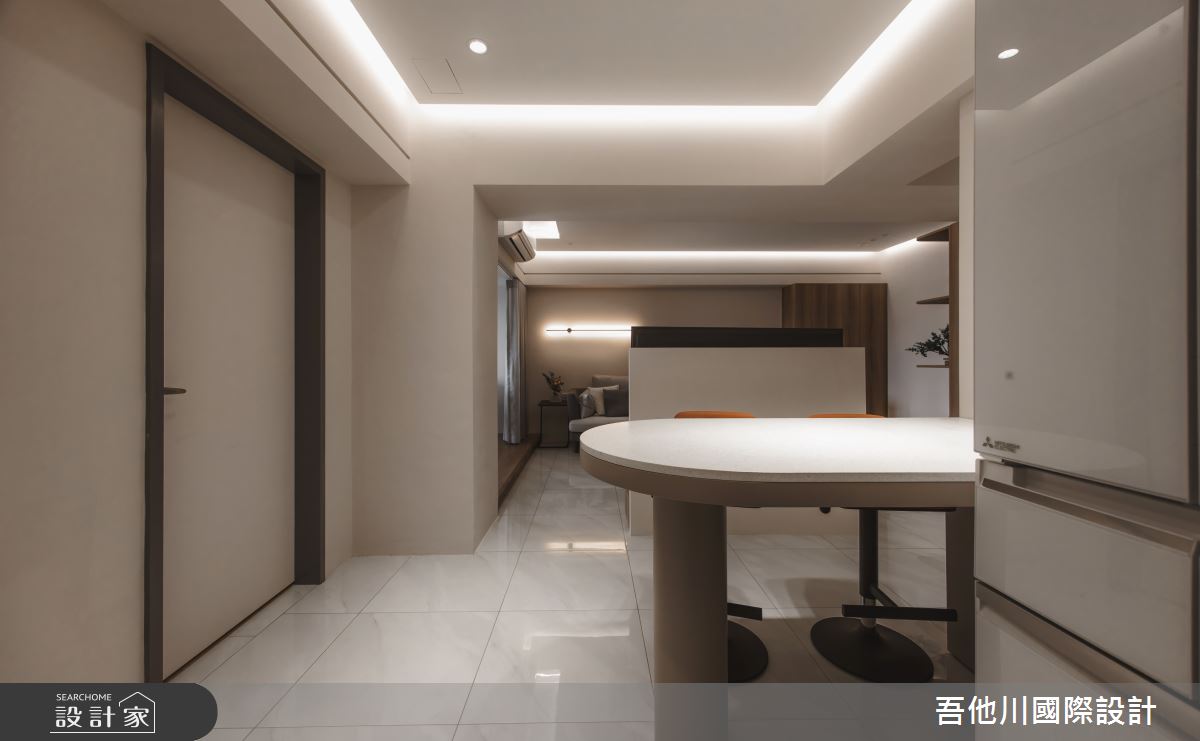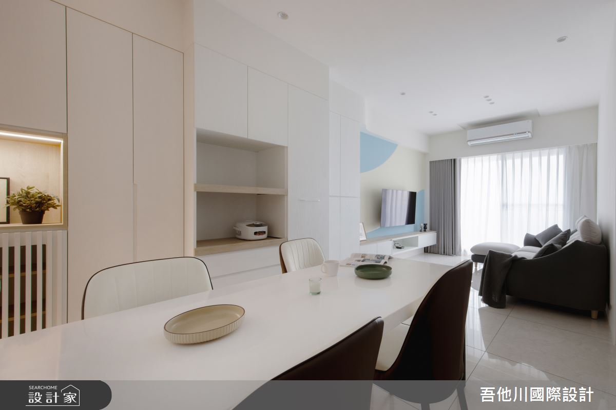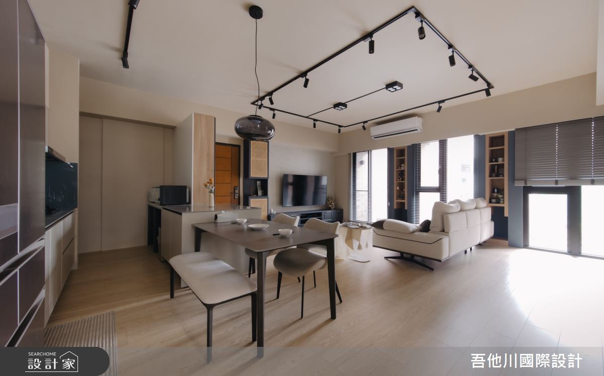 來自吾他川國際室內裝修有限公司的13坪簡約風住宅案,是一間單層預售屋的兩房格局,設計師藉由建材以油漆、水泥漆、系統板材、軌道燈的搭配應用,實現一家人的理想生活。
