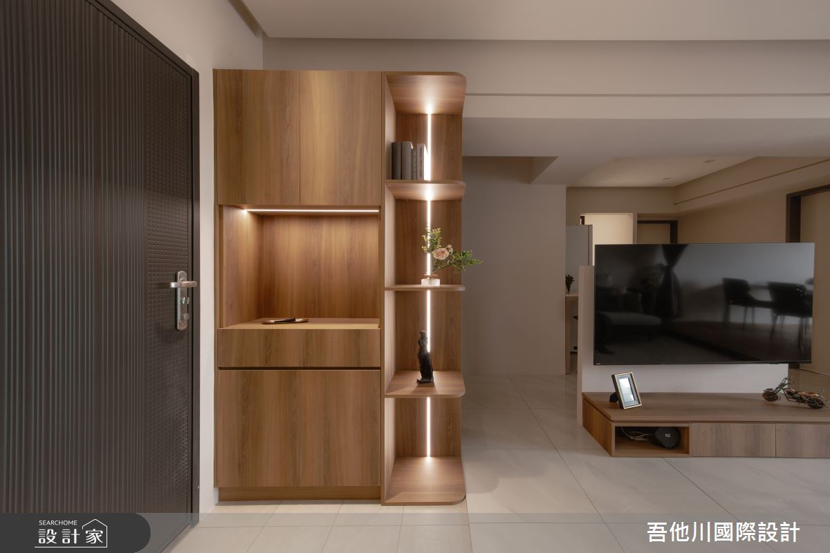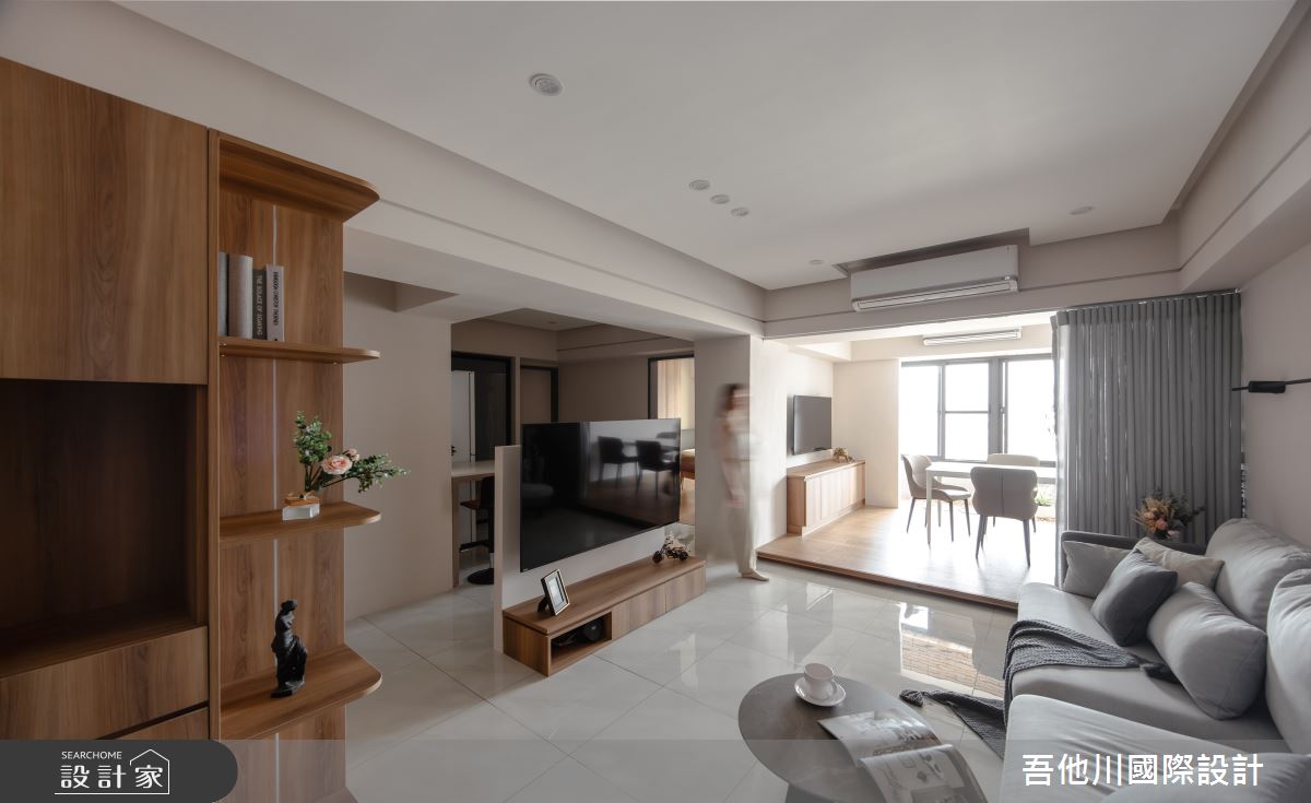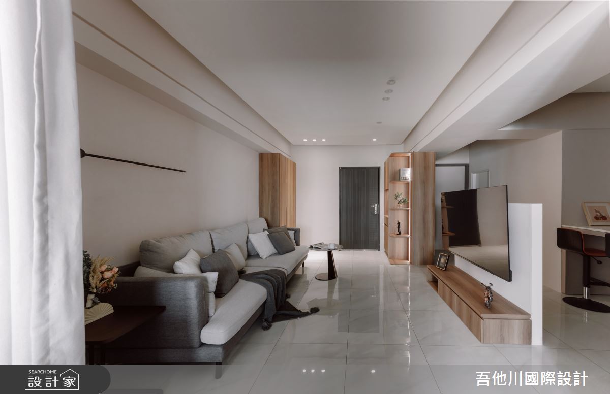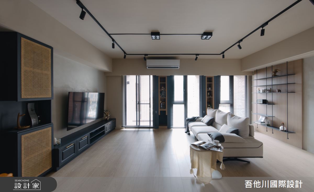 由吾他川國際室內裝修有限公司精心規劃的24坪三房住宅空間,家庭成員一共有2位大人。因應屋主需求,設計師運用侘寂風作為主軸,搭配超耐磨木地板、特殊塗料、藤編、系統櫃、木作貼皮、玻璃、繃布,打造全家人的夢想家居。