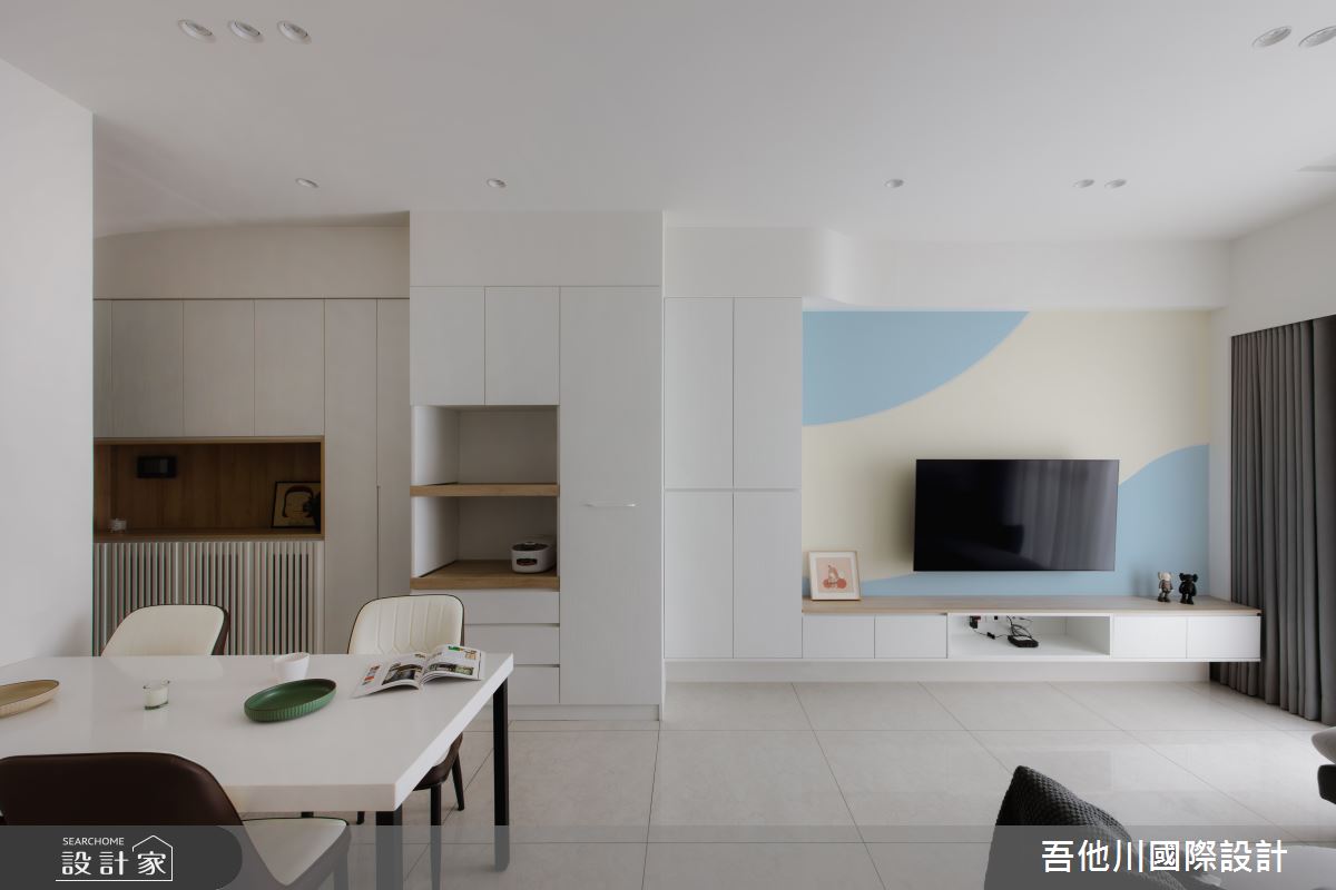 由吾他川國際室內裝修有限公司精心規劃的17坪兩房住宅空間。因應屋主需求,設計師運用北歐風作為主軸,搭配油漆、乳膠漆、水泥漆、磁性漆/磁性黑板漆、鐵件、烤玻、木作貼皮、系統板材、人造石,打造全家人的夢想家居。