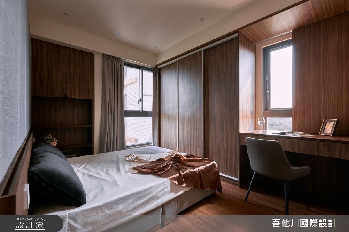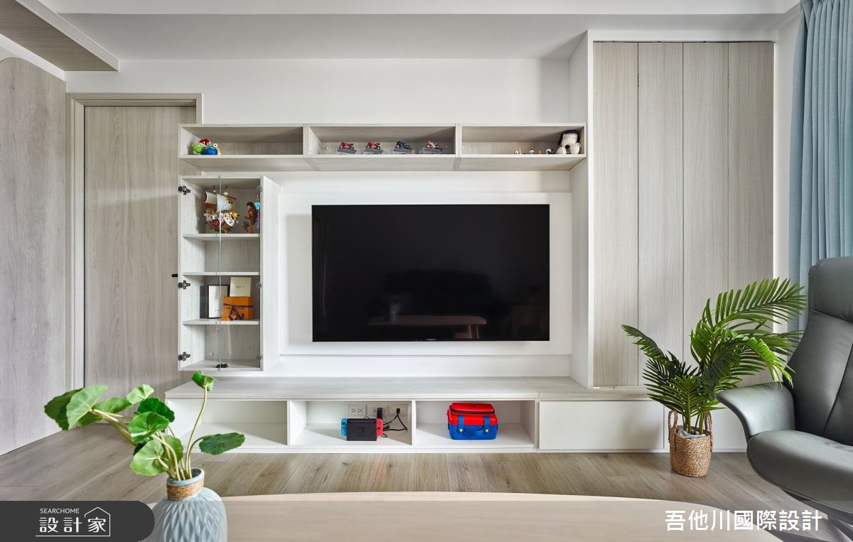 吾他川國際室內裝修有限公司以乳膠漆、壁紙、磁性漆/磁性黑板漆、超耐磨木地板、灰鏡、木作貼皮、大理石、磁磚、樂土、石材、繃布的搭配應用,呈現日式風居家氛圍,將此間28坪、一房、單層、中古屋(5~15年)打造成舒適愜意的家庭空間,完成2位大人、1位小孩全家人的夢想之居。