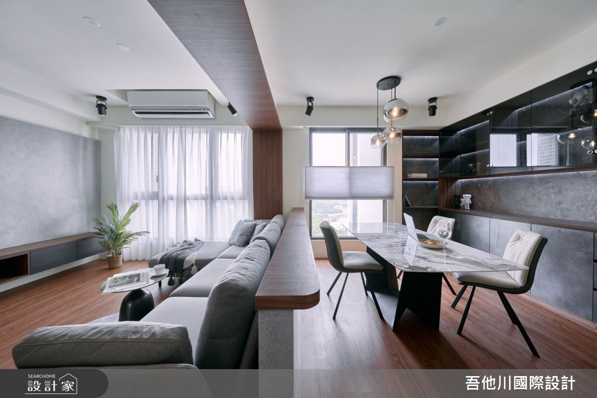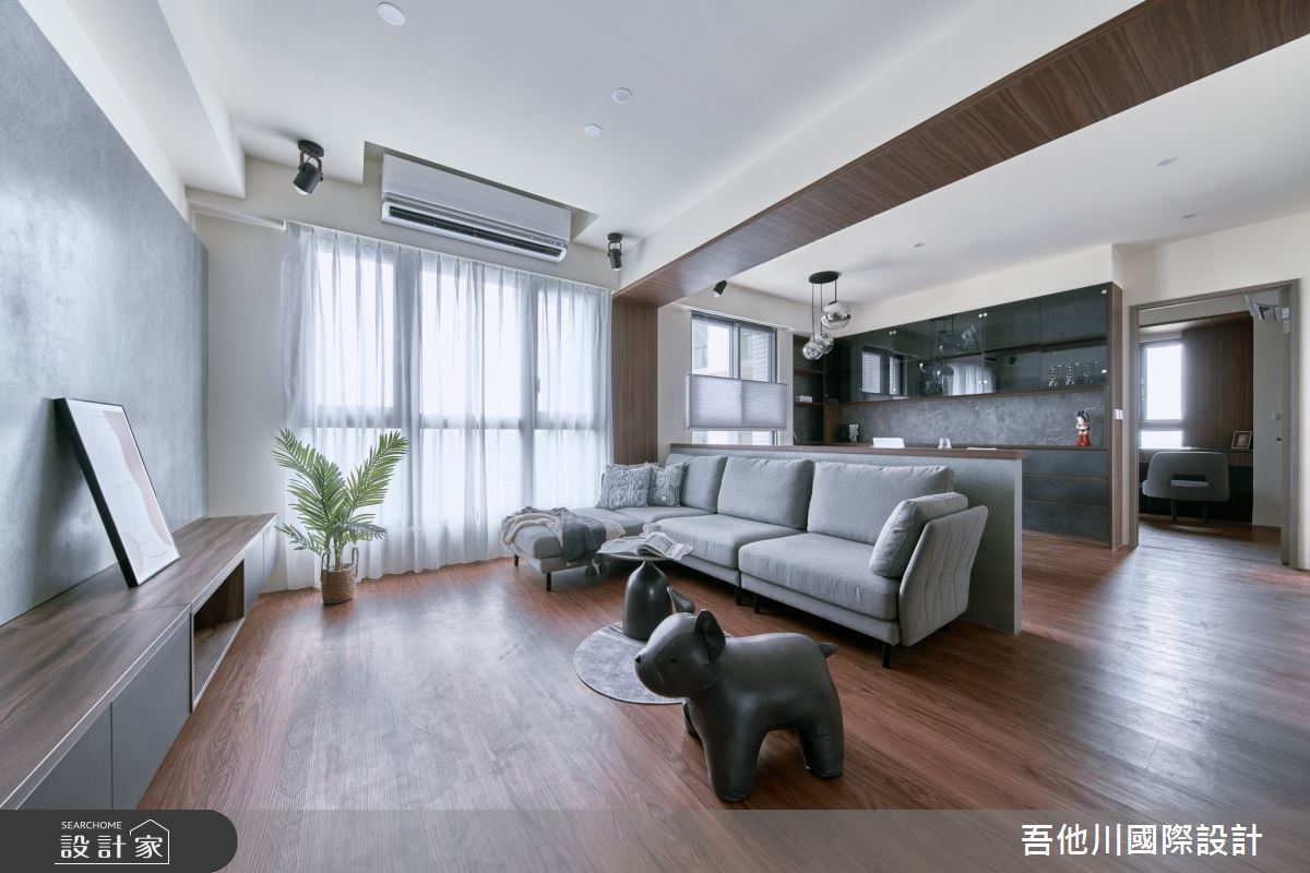由吾他川國際室內裝修有限公司精心規劃的35坪兩房住宅空間,家庭成員一共有2位大人。因應屋主需求,設計師運用簡約風作為主軸,搭配油漆、乳膠漆、壁紙、超耐磨木地板、鐵件、水泥/水泥粉光、人造石、噴漆,打造全家人的夢想家居。