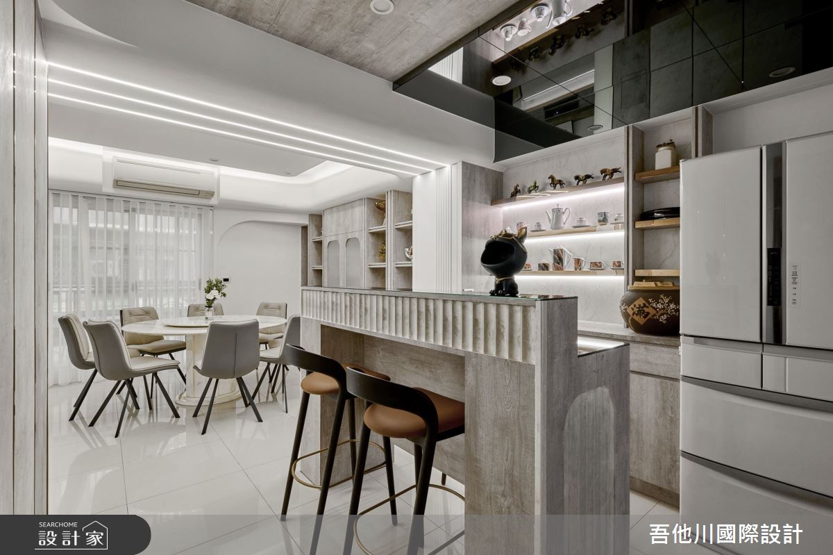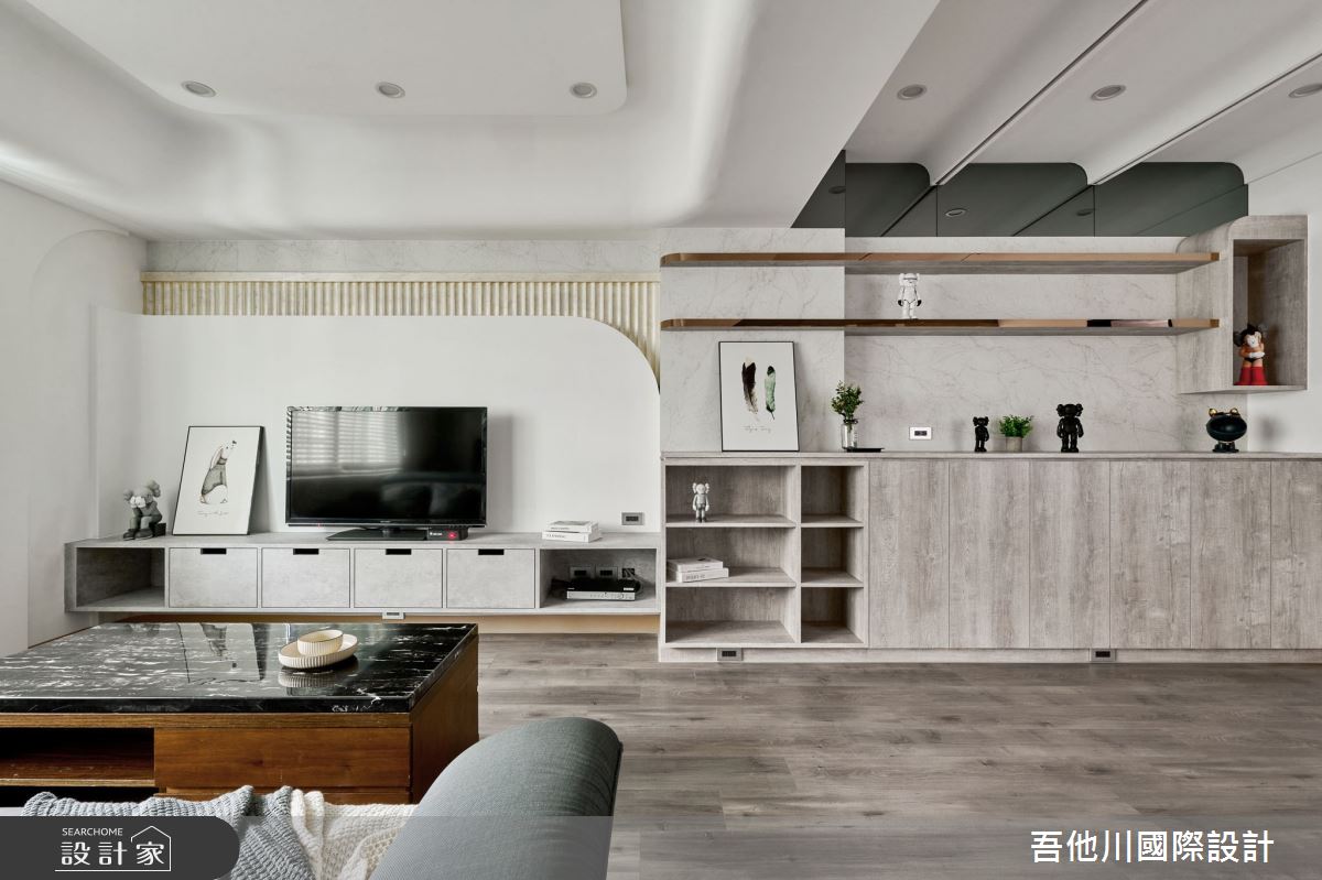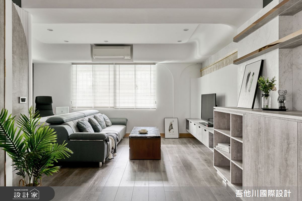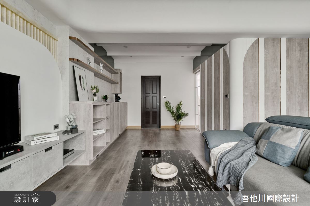 由吾他川國際室內裝修有限公司精心規劃的28坪三房住宅空間,家庭成員一共有2位大人、3位小孩。因應屋主需求,設計師運用混搭風作為主軸,搭配乳膠漆、壁紙、磁性漆/磁性黑板漆、石英磚/拋光石英磚、灰鏡、木作貼皮、大理石、磁磚、樂土、石材、繃布,打造全家人的夢想家居。
