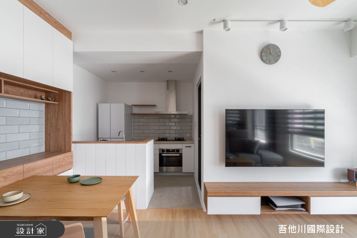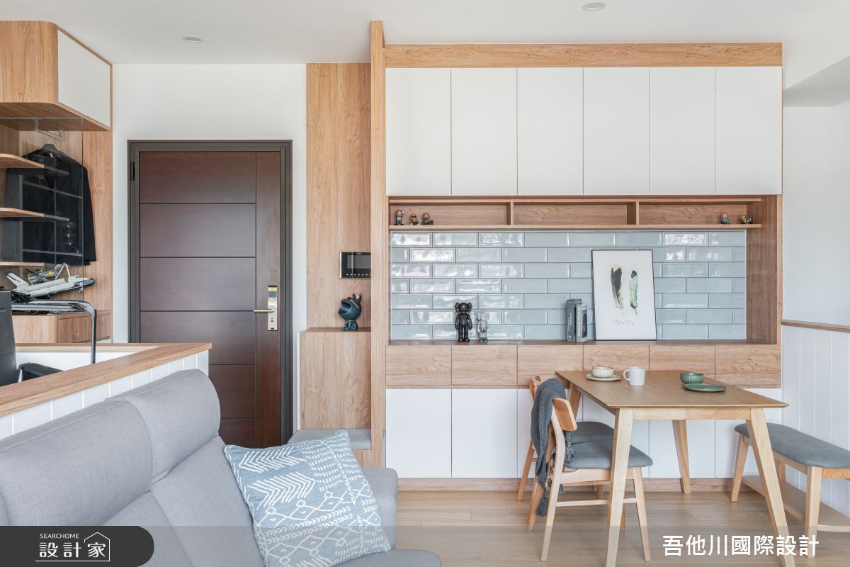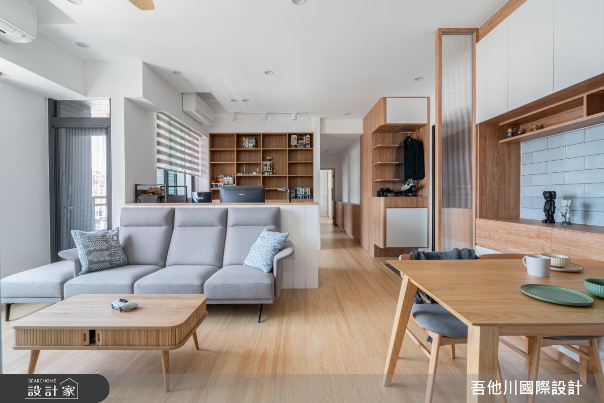 來自吾他川國際室內裝修有限公司的28坪混搭風住宅案,屋主一家人共有2位大人、1位小孩,是一間單層新成屋(5年以下)的兩房格局,設計師藉由建材以乳膠漆、壁紙、磁性漆/磁性黑板漆、超耐磨木地板、灰鏡、木作貼皮、大理石、磁磚、樂土、石材、繃布的搭配應用,實現一家人的理想生活。