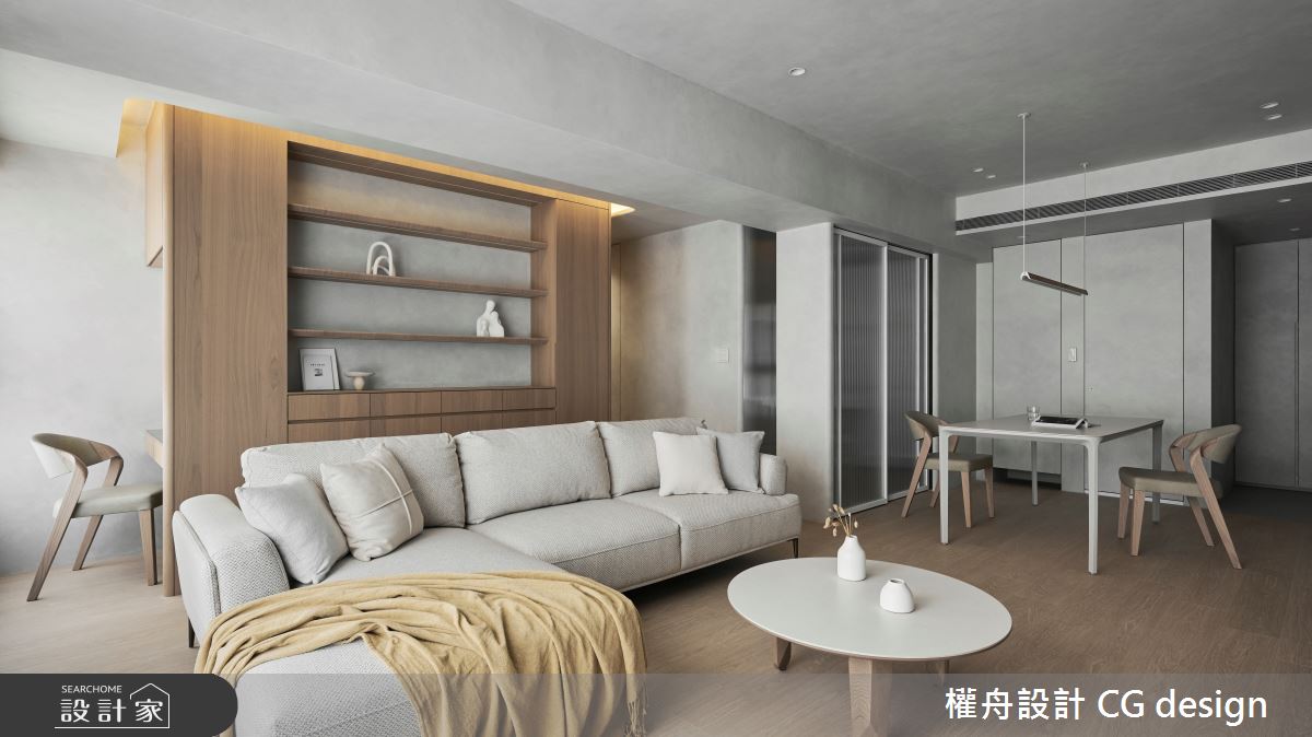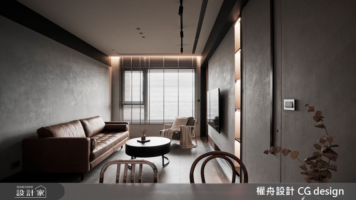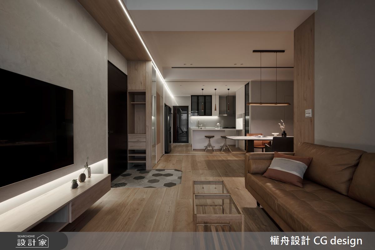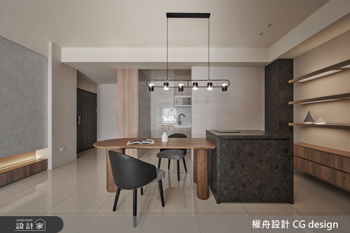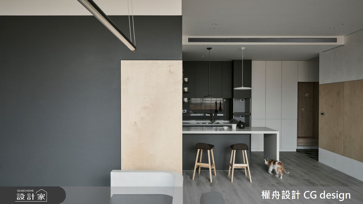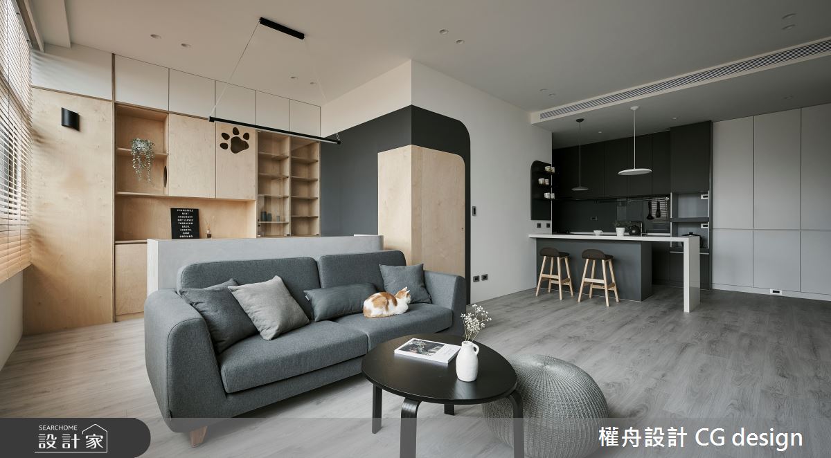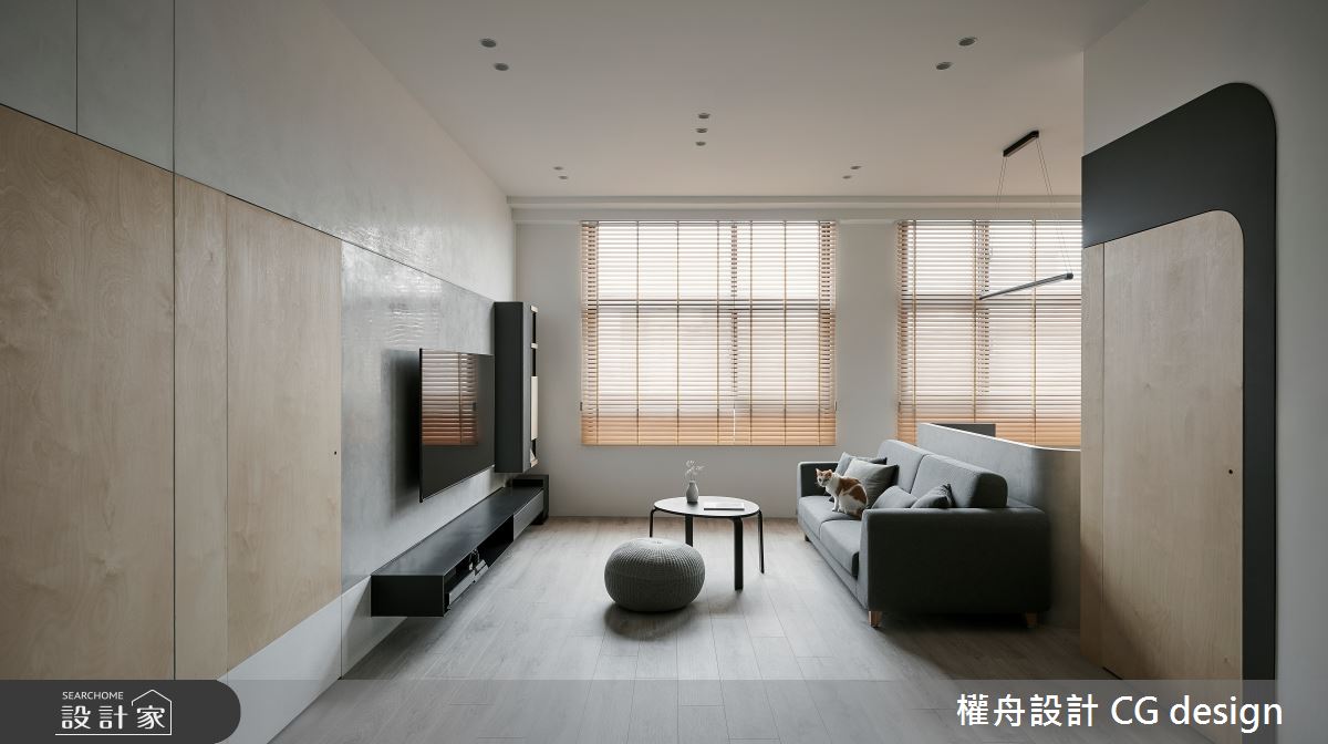 由權舟室內設計有限公司精心規劃的22坪兩房住宅空間,家庭成員一共有2位大人。因應屋主需求,設計師運用混搭風作為主軸,搭配乳膠漆、超耐磨木地板、鐵件、木作貼皮、系統板材、磁磚、木百葉、人造石,打造全家人的夢想家居。