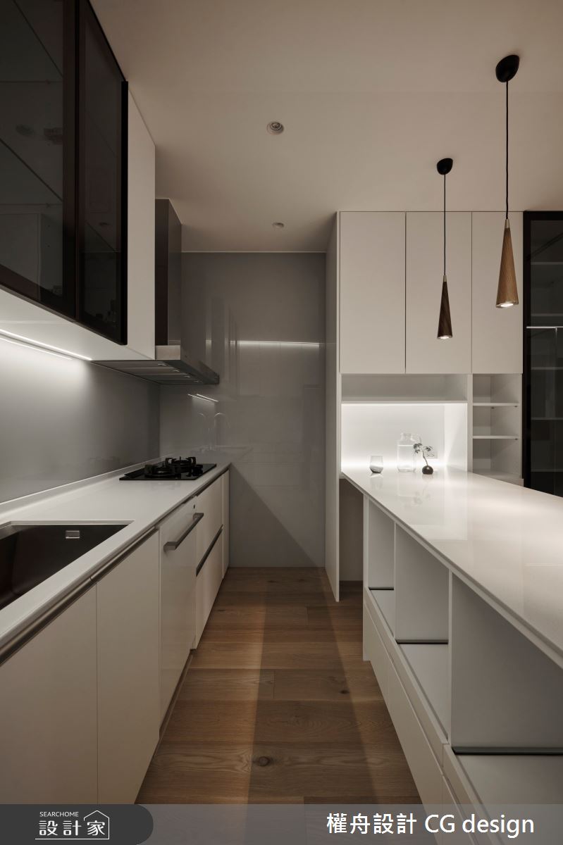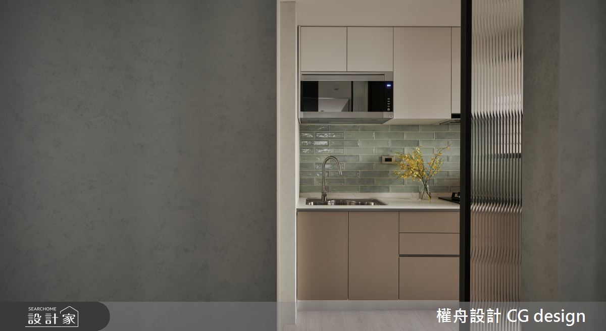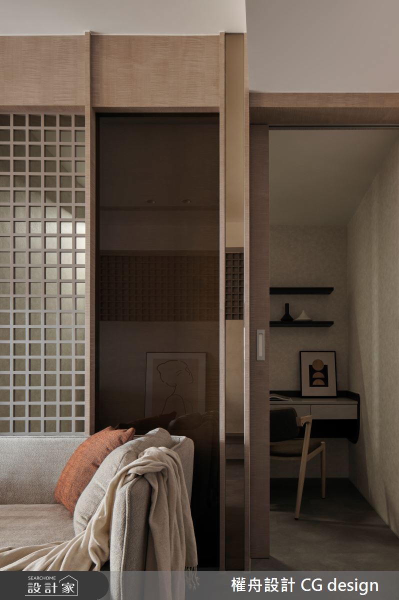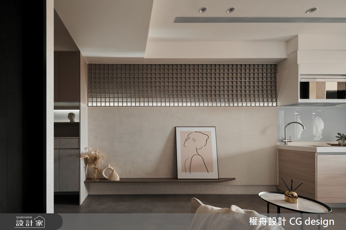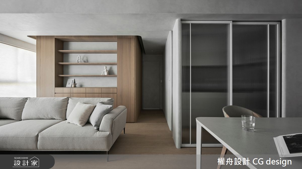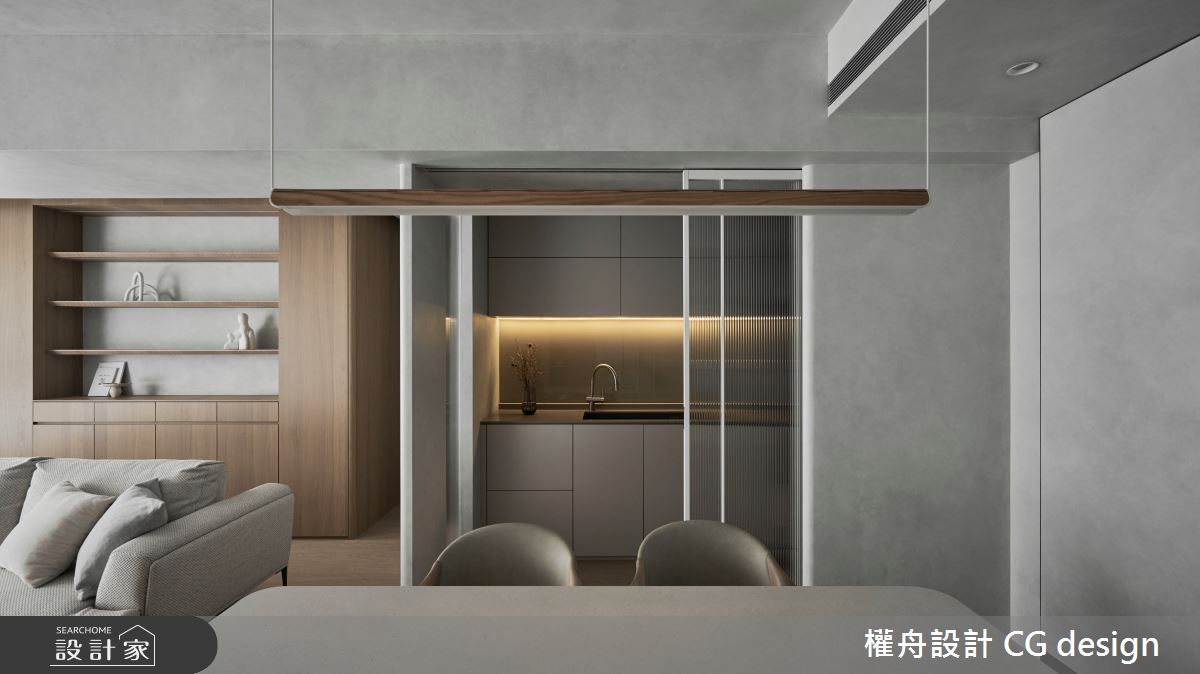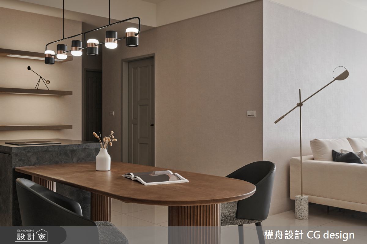 由權舟室內設計有限公司精心規劃的22坪兩房住宅空間,家庭成員一共有2位大人。因應屋主需求,設計師運用混搭風作為主軸,搭配乳膠漆、超耐磨木地板、鐵件、木作貼皮、系統板材、磁磚、木百葉、人造石,打造全家人的夢想家居。