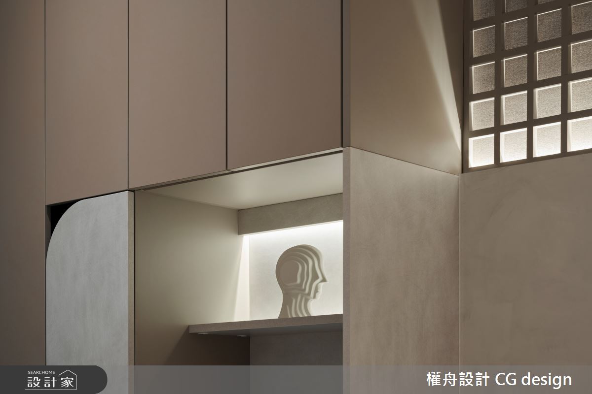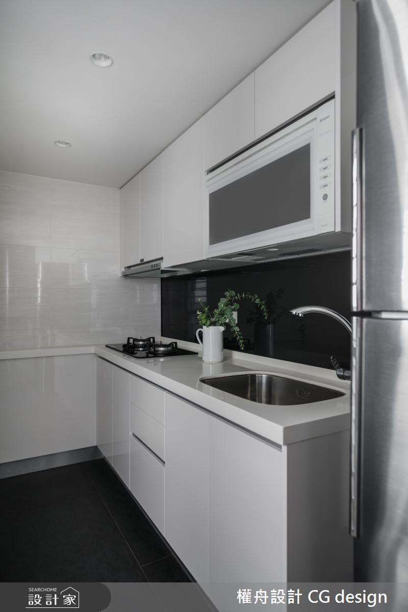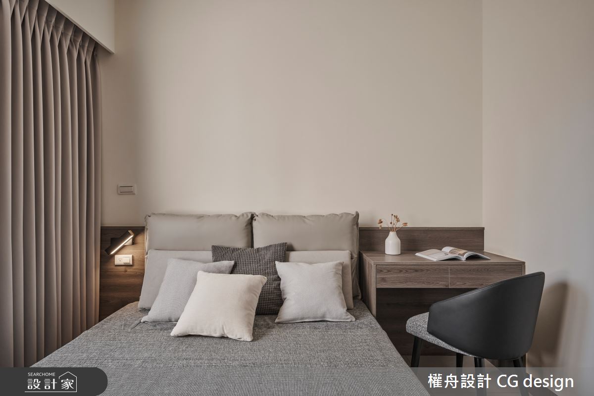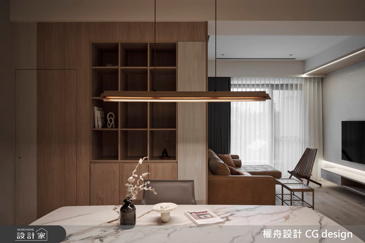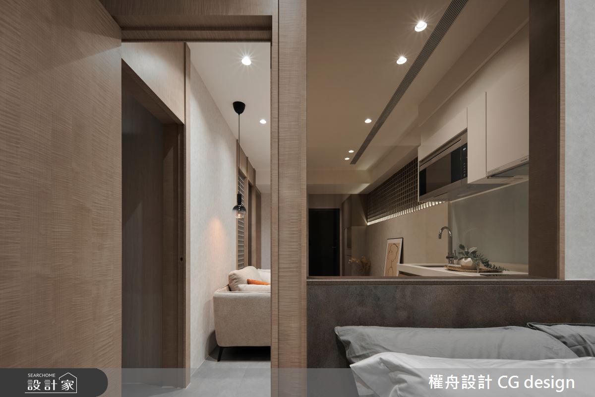 由權舟室內設計有限公司精心規劃的23坪兩房住宅空間,家庭成員一共有2位長輩。因應屋主需求,設計師運用混搭風作為主軸,搭配乳膠漆、超耐磨木地板、木作貼皮、系統板材、磁磚、石英石,打造全家人的夢想家居。
