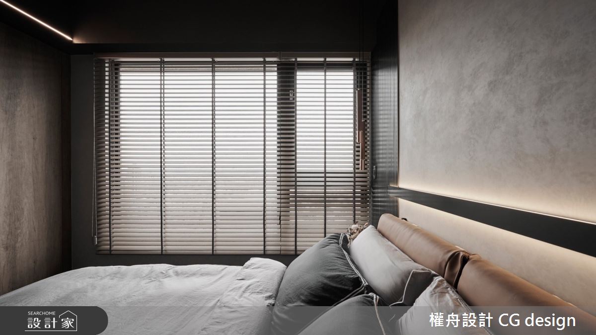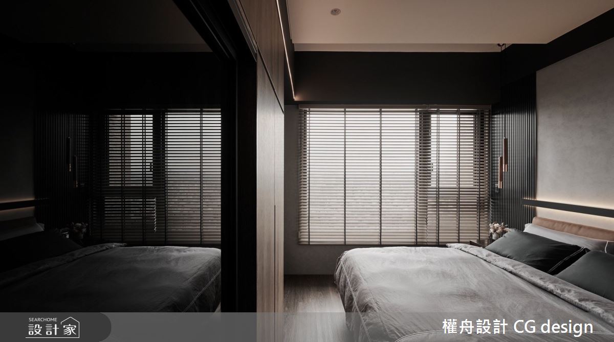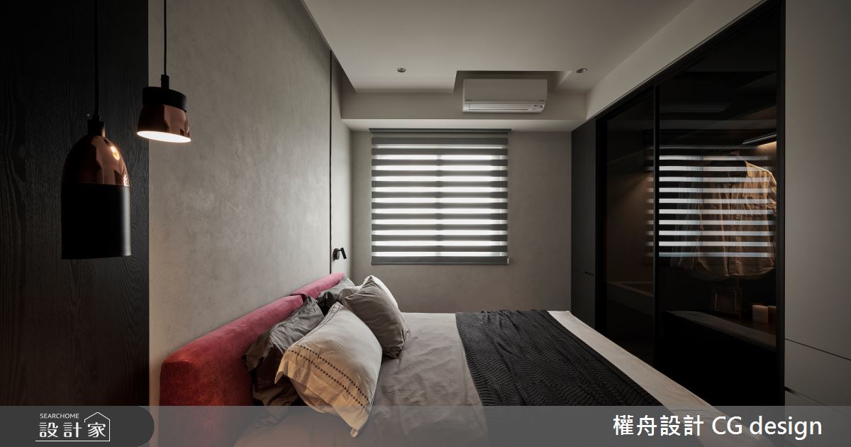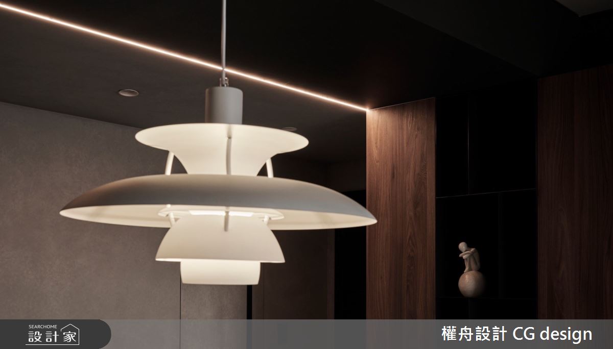 權舟室內設計有限公司以乳膠漆、超耐磨木地板、鐵件、灰鏡、木作貼皮、烤漆、系統板材、木百葉、軌道燈的搭配應用,呈現混搭風居家氛圍,將此間21坪、三房、單層、新成屋(5年以下)打造成舒適愜意的家庭空間,完成2位大人、1位小孩全家人的夢想之居。