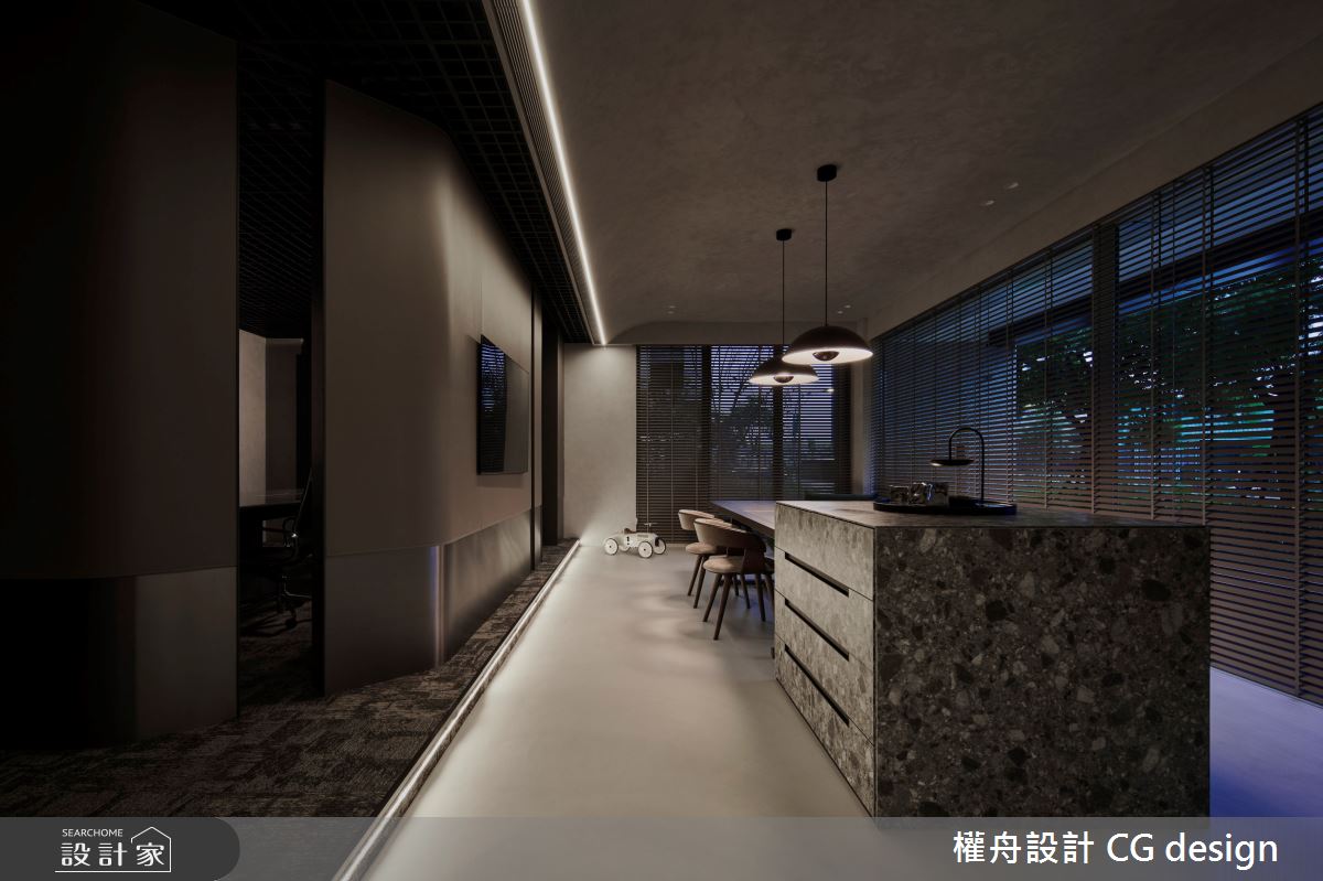 由權舟室內設計有限公司精心規劃的30坪商業空間,因應業主需求,設計師運用混搭風作為主軸,搭配建材乳膠漆、鐵件、烤玻、系統板材、木百葉、人造石、皮革、義大利地板塗料,打造精緻品味的空間氛圍。