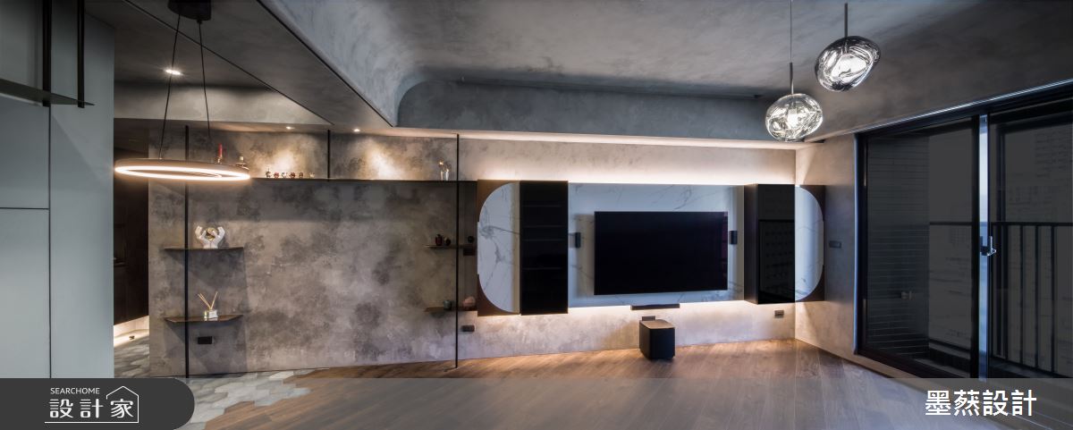 來自墨䔳室內裝修設計有限公司的28坪現代風住宅案,屋主一家人共有2位大人,是一間單層新成屋(5年以下)的兩房格局,設計師藉由建材以鐵件、義大利薄板、特殊塗料、造型壁板、鍍鈦的搭配應用,實現一家人的理想生活。