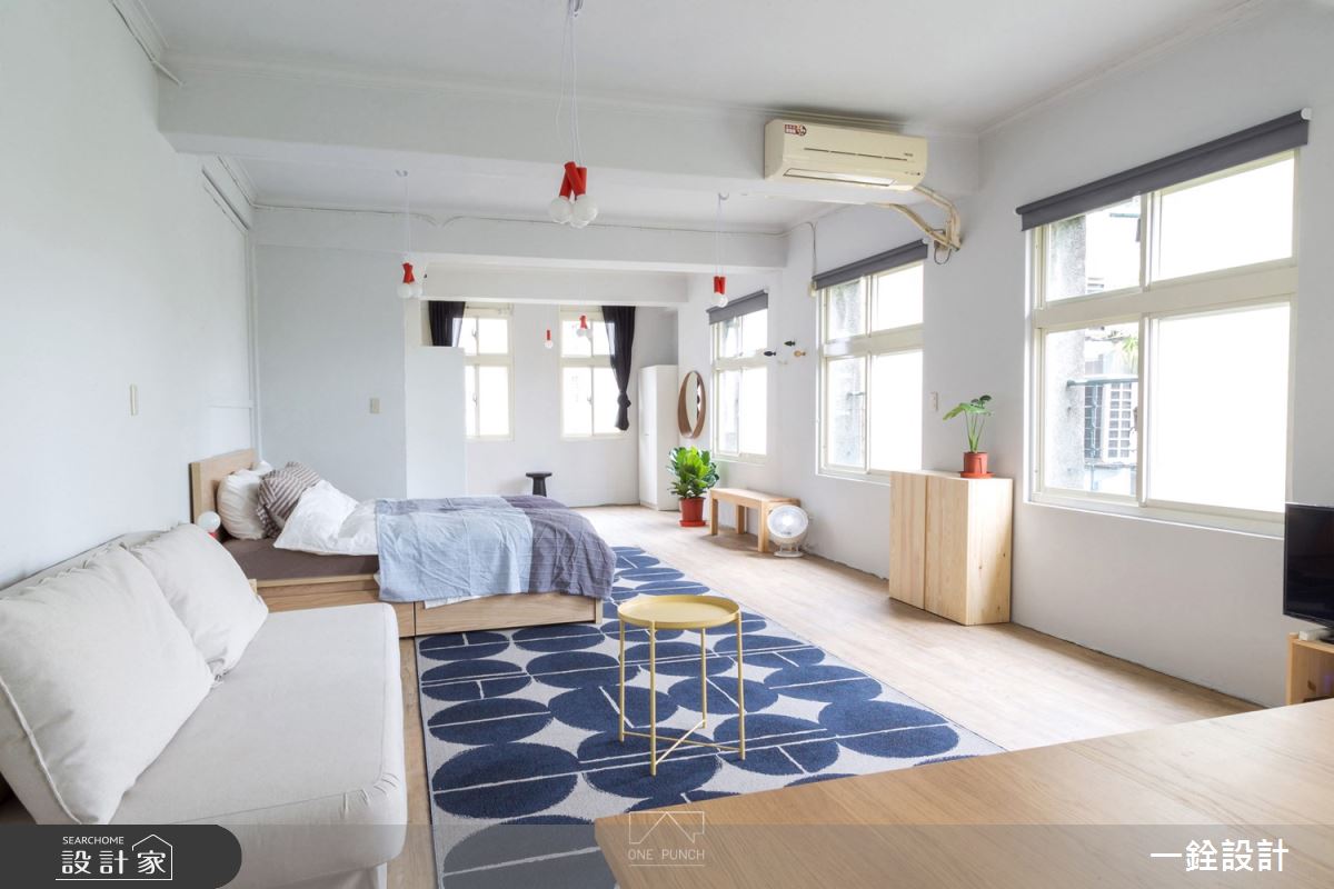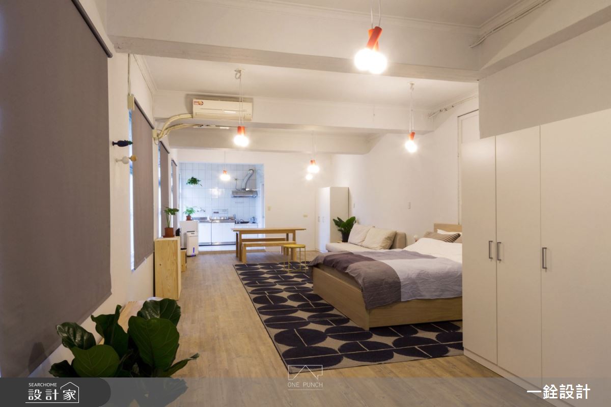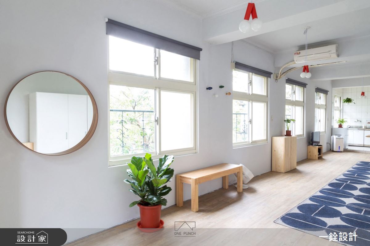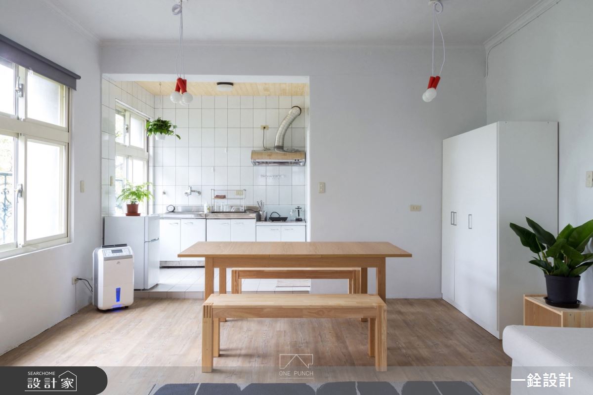 一銓室內裝修設計以油漆、水泥漆、PVC地板、不鏽鋼、木作貼皮、系統板材的搭配應用,呈現簡約風居家氛圍,將此間17坪、一房、單層、老屋(41~50年)打造成舒適愜意的家庭空間,完成2位大人全家人的夢想之居。