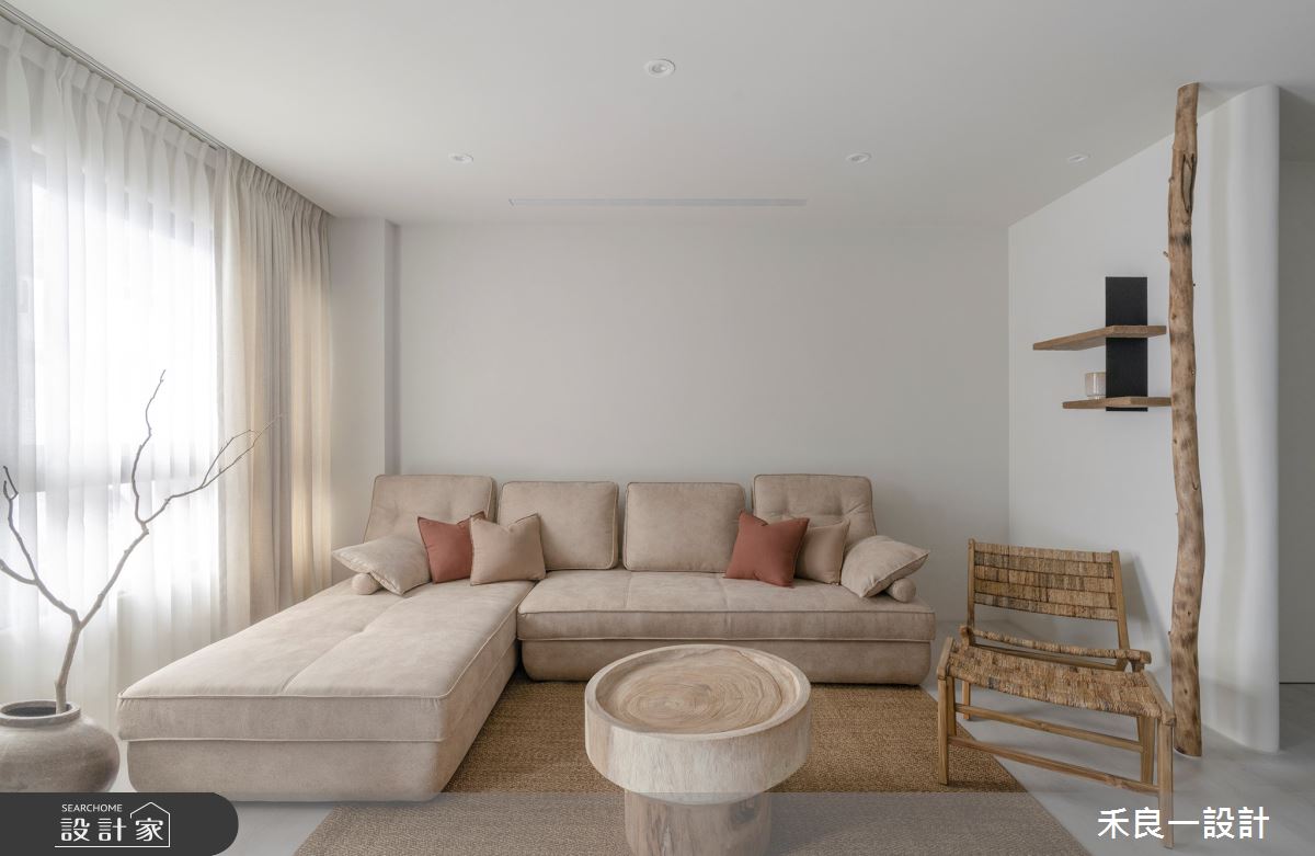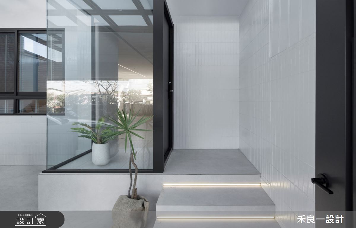 禾良一設計以油漆、鐵道磚、六角磚/蜂巢磚、花磚、壁紙、水泥漆、超耐磨木地板、鐵件、烤玻、烤漆、系統板材、大理石、磁磚、木百葉、人造石、珪藻土、噴砂玻璃、礦物塗料、無縫藝術塗料、美耐板的搭配應用,呈現簡約風居家氛圍,將此間38坪、一房、複層、毛胚屋打造成舒適愜意的家庭空間,完成2位大人、2位小孩全家人的夢想之居。