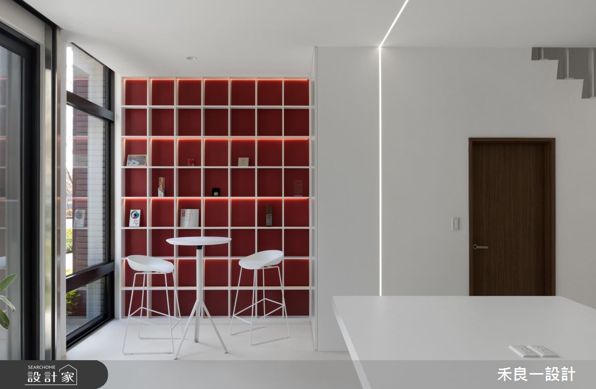 禾良一設計以油漆、水泥漆、超耐磨木地板、系統板材、人造石、無縫藝術塗料、美耐板的搭配應用,呈現簡約風的風格氣息,將此間20坪新成屋(5年以下)優雅詮釋成舒適愜意的商業空間。