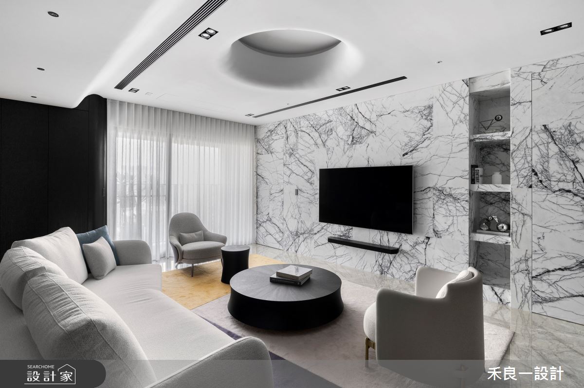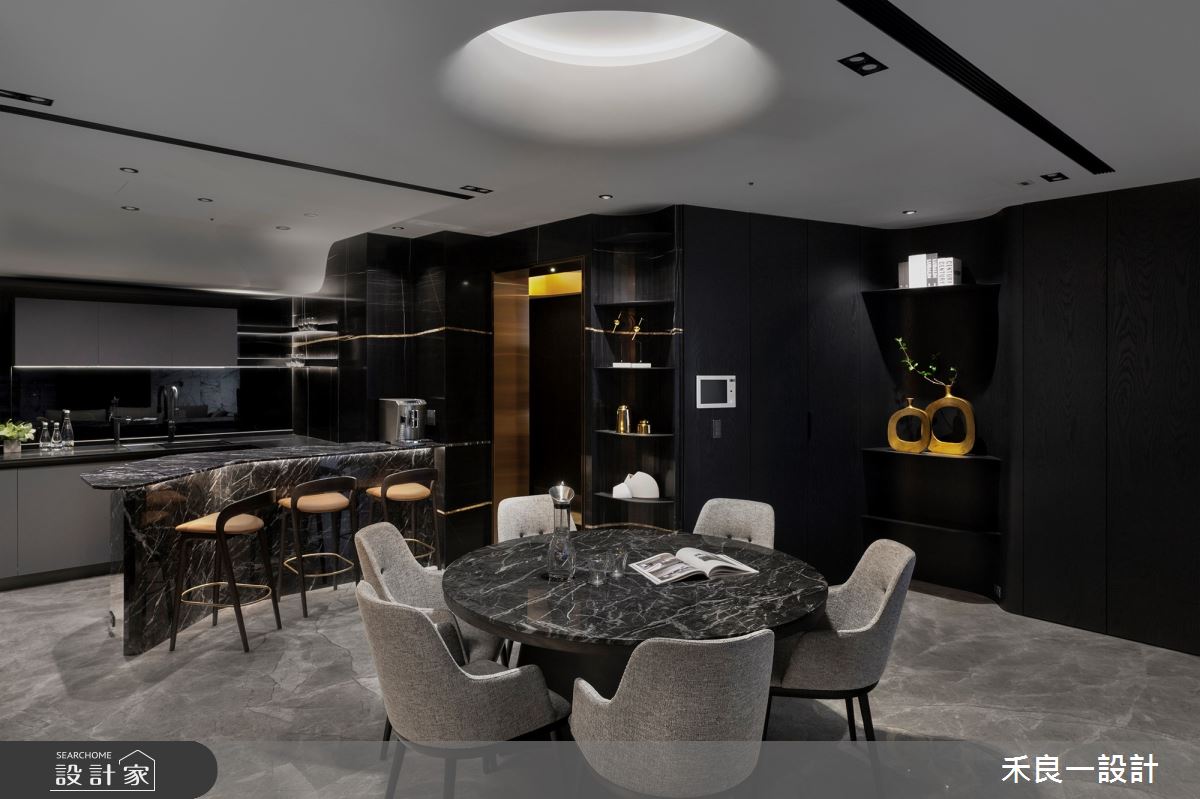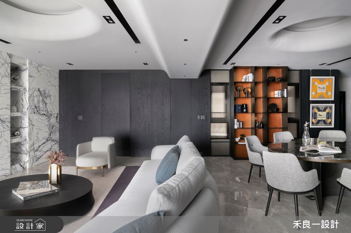 來自禾良一設計的38坪混搭風住宅案,屋主一家人共有2位大人、2位小孩,是一間單層毛胚屋的三房格局,設計師藉由建材以鐵件、茶玻、烤玻、鍍鈦金屬、木作貼皮、烤漆、大理石、磁磚、石材、金屬漆、天際線燈帶、風琴簾、電動蛇簾的搭配應用,實現一家人的理想生活。