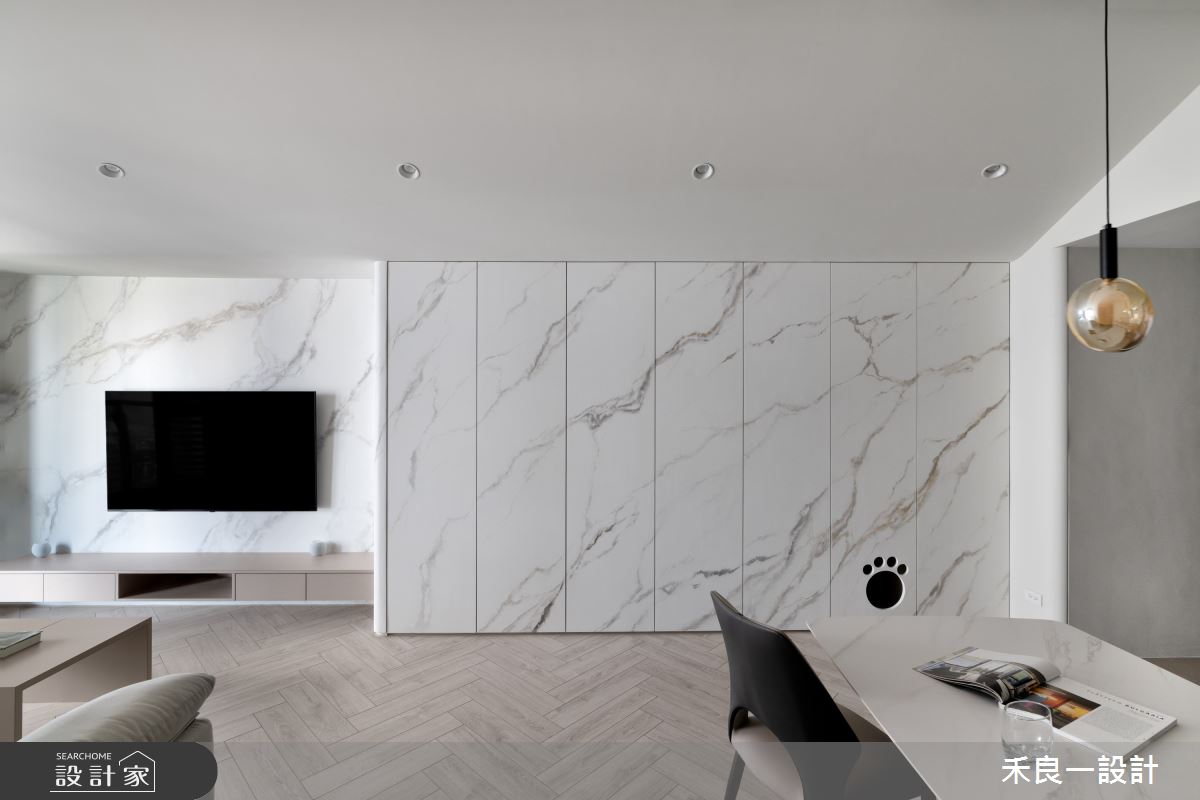 由禾良一設計精心規劃的50坪三房住宅空間,家庭成員一共有2位大人。因應屋主需求,設計師運用現代風作為主軸,搭配油漆、水泥漆、超耐磨木地板、鐵件、烤漆、系統板材、磁磚、風琴簾、美耐板、FENIX美耐板、長虹玻璃,打造全家人的夢想家居。