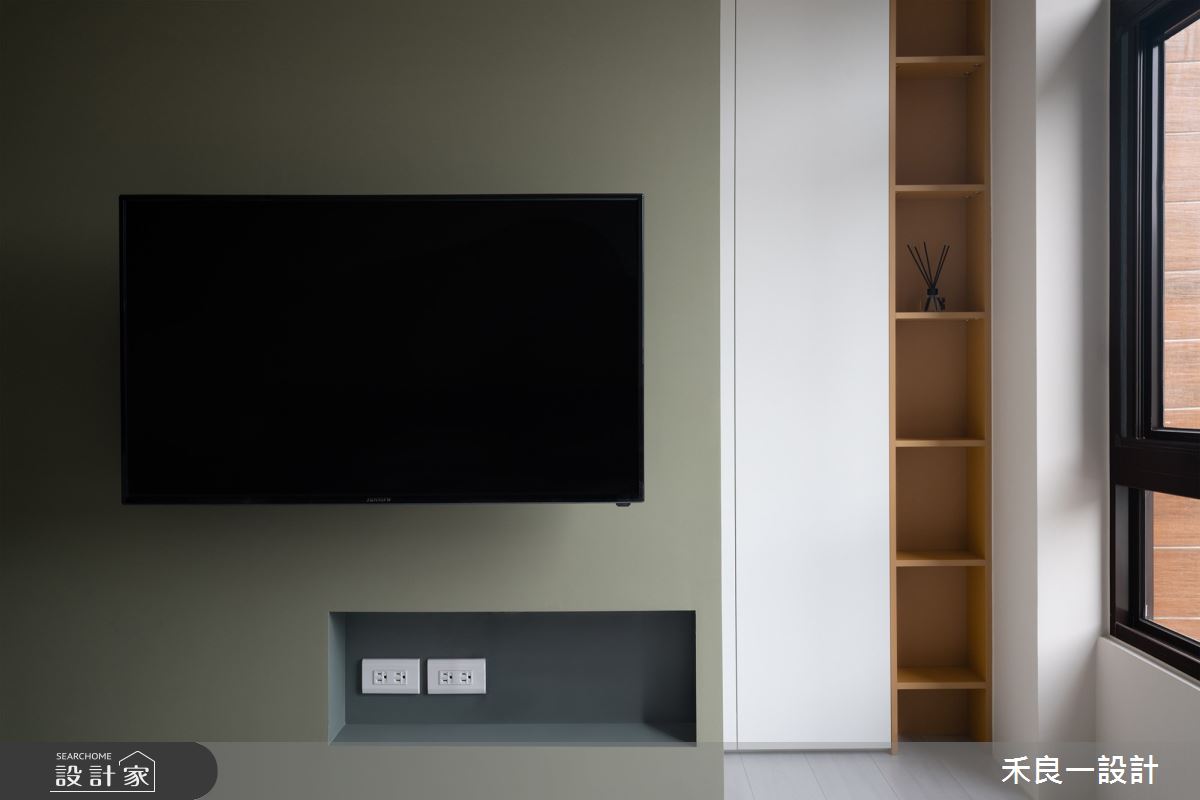 禾良一設計以油漆、水泥漆、超耐磨木地板、鐵件、茶玻、烤玻、鍍鈦金屬、藝術漆、無縫藝術塗料、美耐板、電動蛇簾、石英石的搭配應用,呈現現代風居家氛圍,將此間25坪、三房、單層、中古屋(5~15年)打造成舒適愜意的家庭空間,完成2位大人、1位小孩全家人的夢想之居。