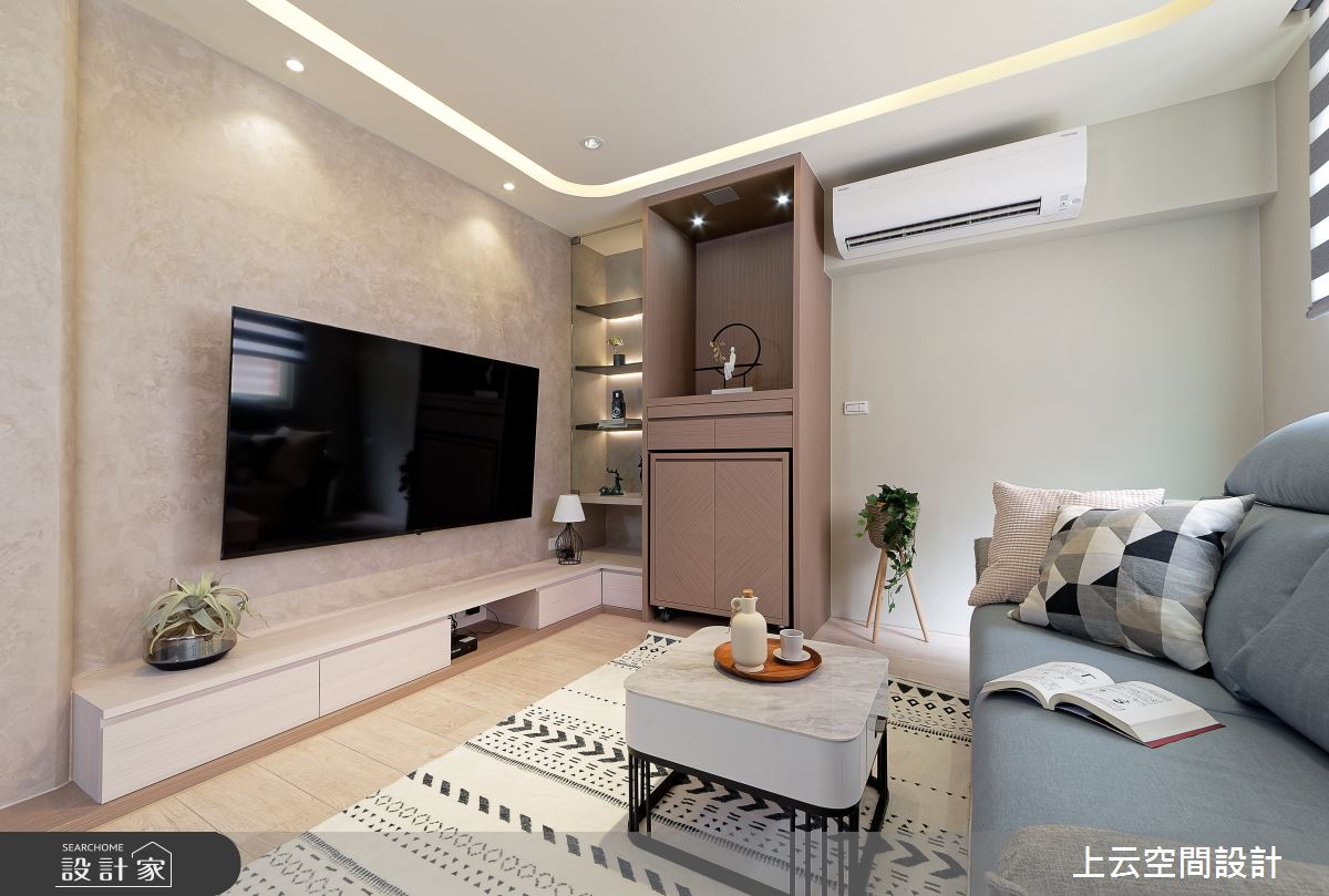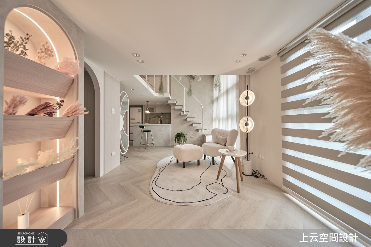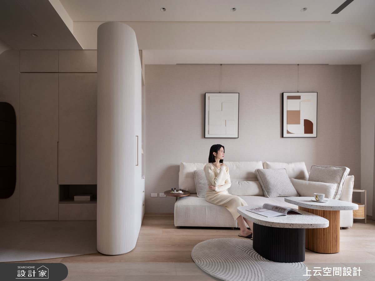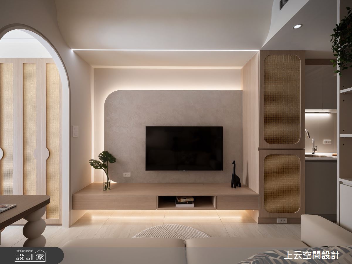 來自上云空間設計的17坪奶油度假風住宅案,屋主一家人共有2位大人,是一間單層新成屋(5年以下)的一房格局,設計師藉由建材以乳膠漆、木地板、木作貼皮、繃布的搭配應用,實現一家人的理想生活。