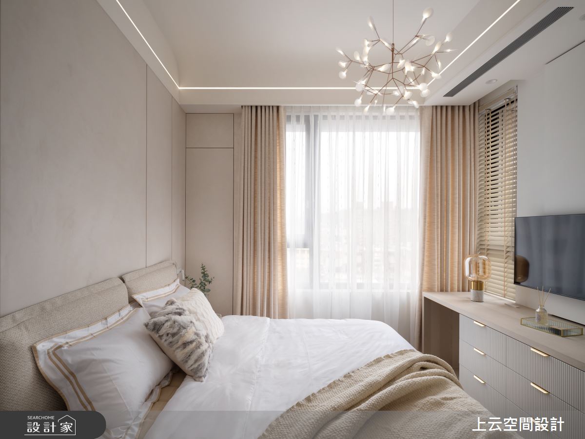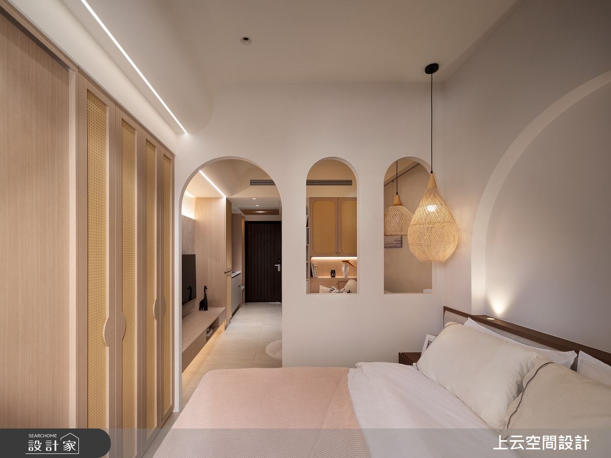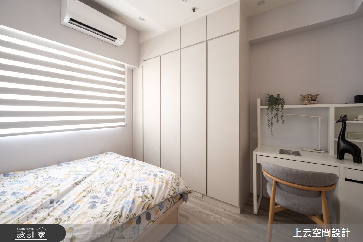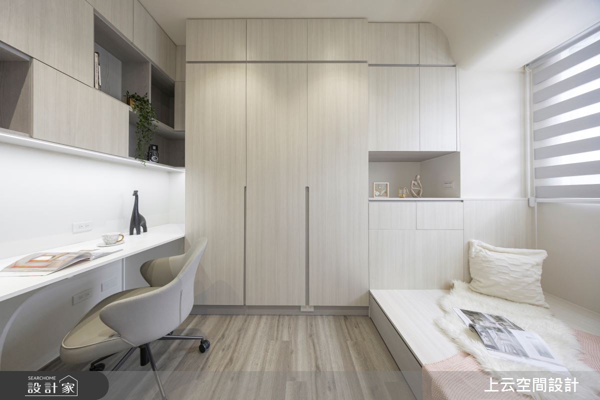 來自上云空間設計的17坪奶油度假風住宅案,屋主一家人共有2位大人,是一間單層新成屋(5年以下)的一房格局,設計師藉由建材以乳膠漆、木地板、木作貼皮、繃布的搭配應用,實現一家人的理想生活。
