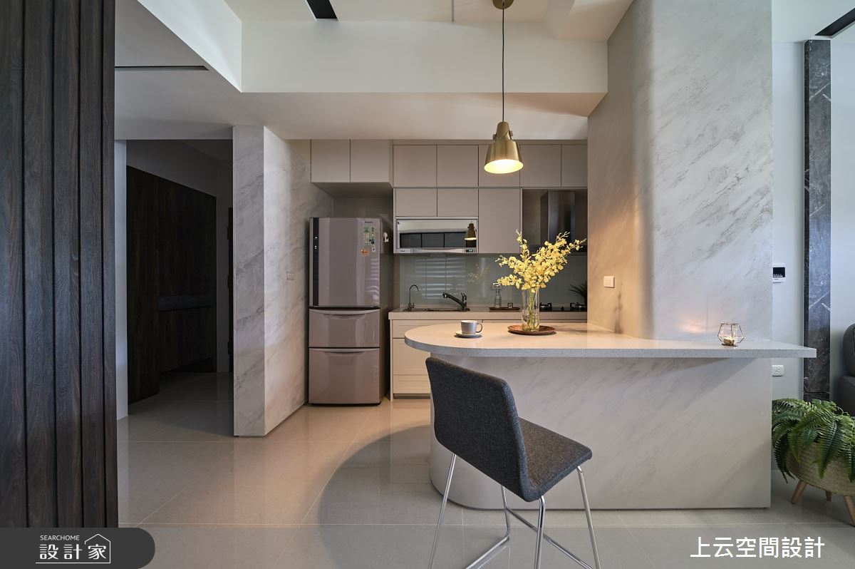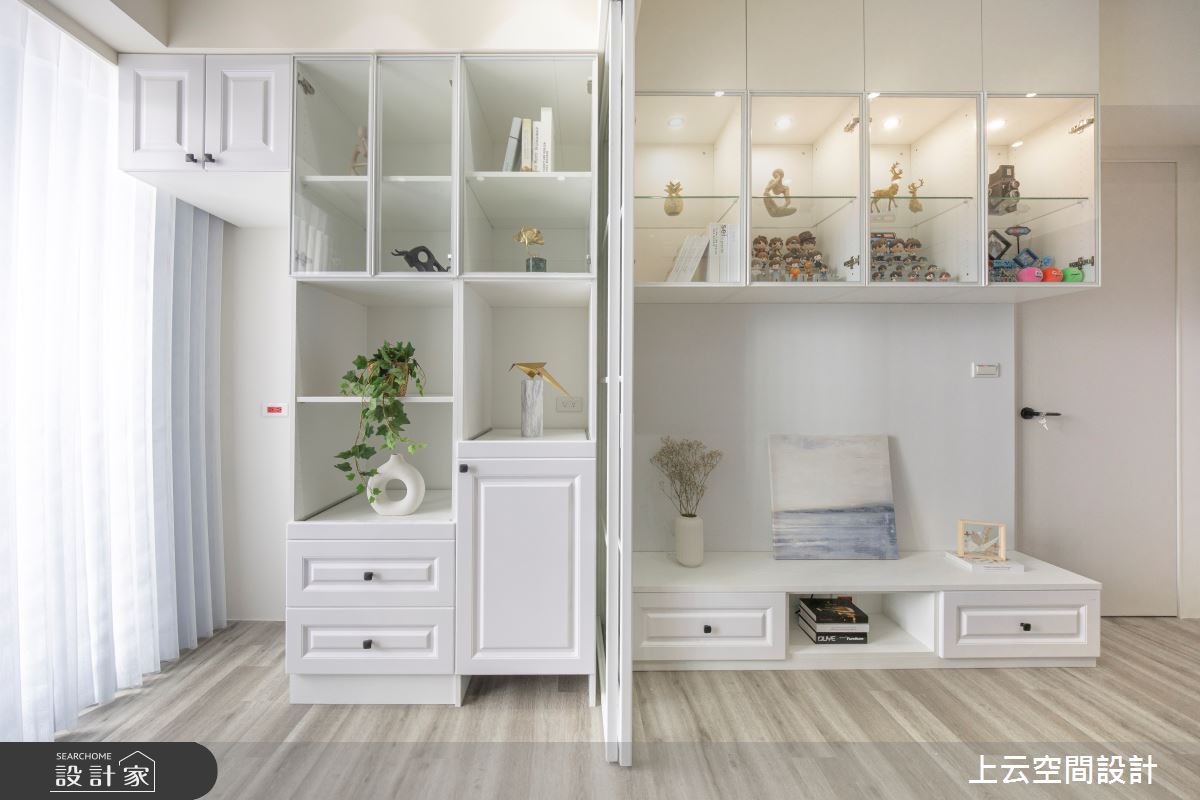由上云空間設計精心規劃的17坪兩房住宅空間,家庭成員一共有2位大人。因應屋主需求,設計師運用現代美式風作為主軸,搭配乳膠漆、灰鏡、烤玻、木作貼皮、系統板材、木百葉、人造石、琺瑯板,打造全家人的夢想家居。