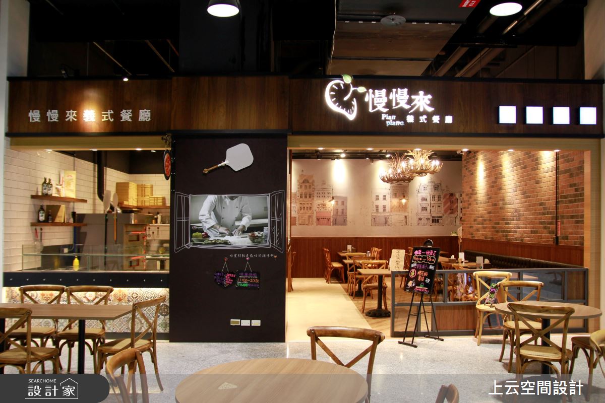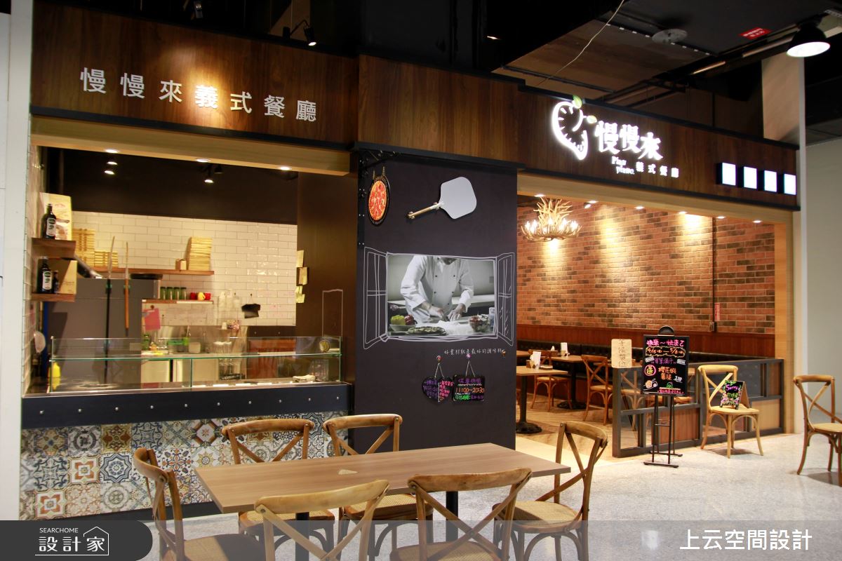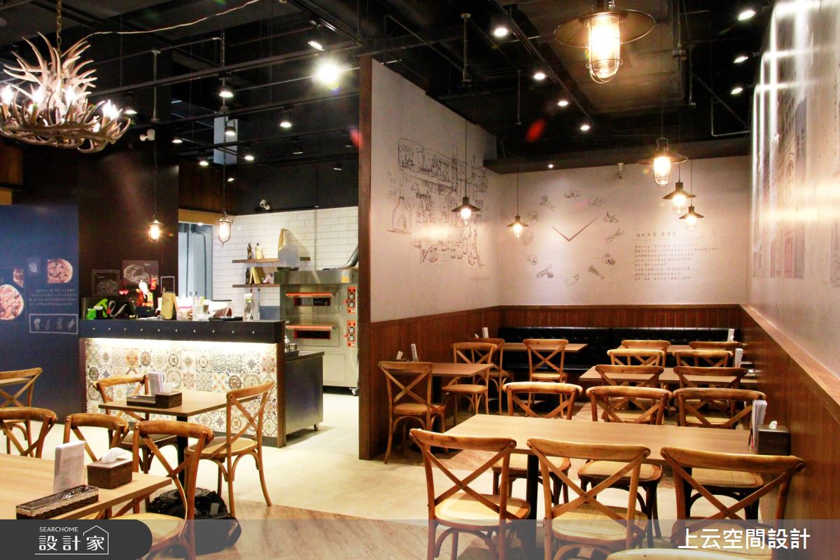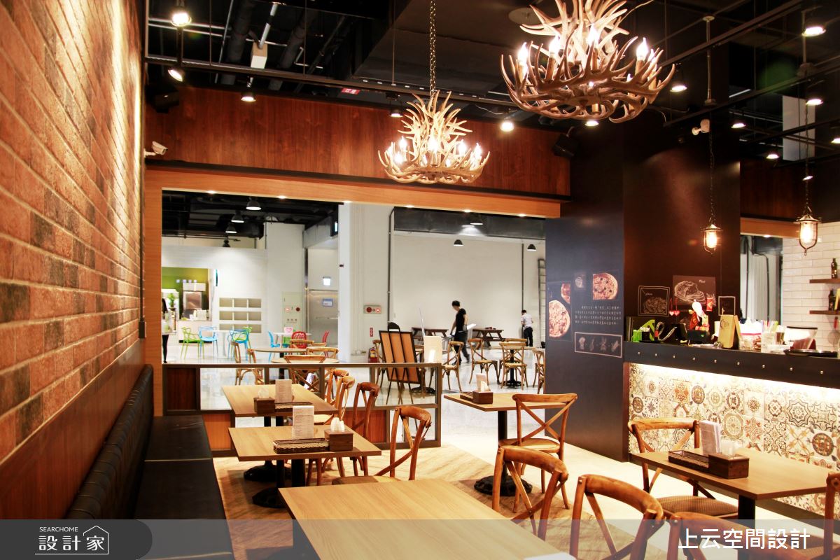 由上云空間設計精心規劃的25坪商業空間,因應業主需求,設計師運用混搭風作為主軸,搭配建材大圖輸出、文化石、水泥漆、PVC地板、烤玻、烤漆、鋼刷木皮、磁磚、人造石、石材,打造精緻品味的空間氛圍。