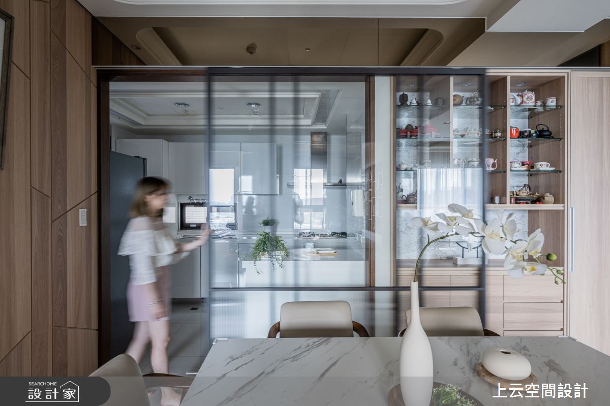 上云空間設計以乳膠漆、石英磚/拋光石英磚、鐵件、灰鏡、烤漆、鋼刷木皮、大理石、噴漆的搭配應用,呈現人文禪風居家氛圍,將此間28坪、三房、單層、新成屋(5年以下)打造成舒適愜意的家庭空間,完成2位大人、2位小孩全家人的夢想之居。