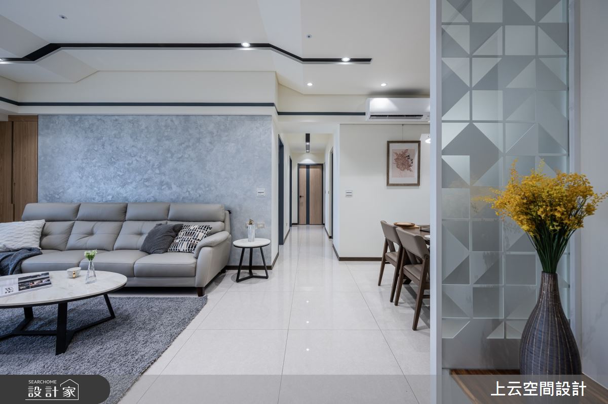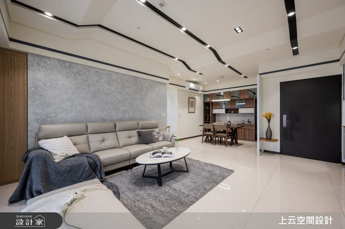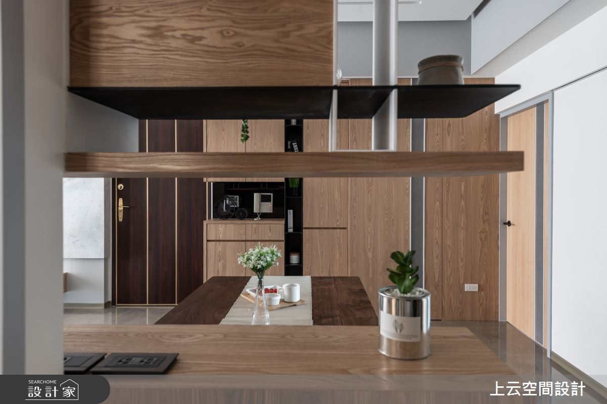 來自上云空間設計的44坪現代風住宅案,屋主一家人共有2位大人,是一間單層新成屋(5年以下)的四房格局,設計師藉由建材以乳膠漆、石英磚/拋光石英磚、鐵件、灰鏡、烤漆、鋼刷木皮、系統板材、噴漆、噴砂玻璃、特殊漆的搭配應用,實現一家人的理想生活。