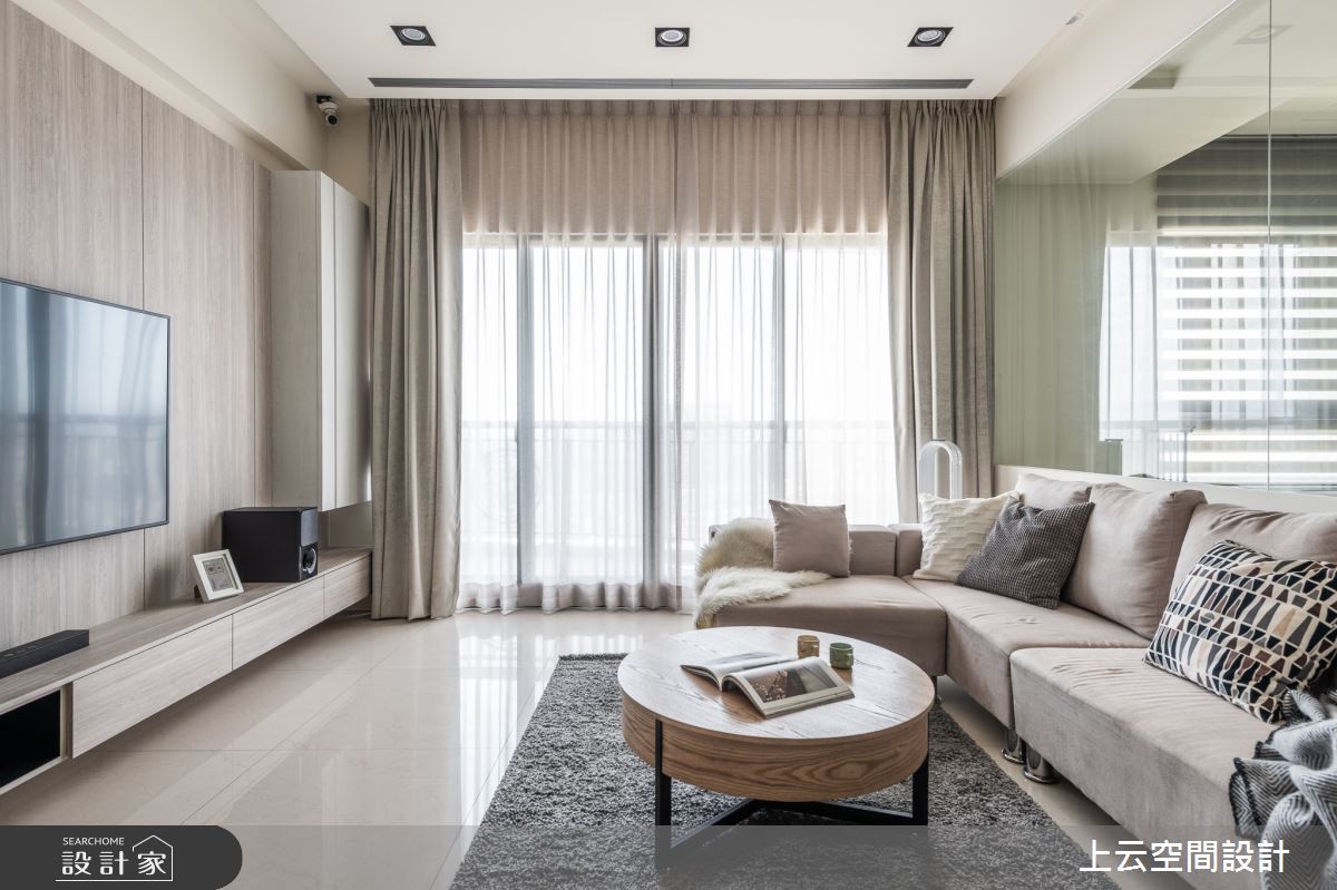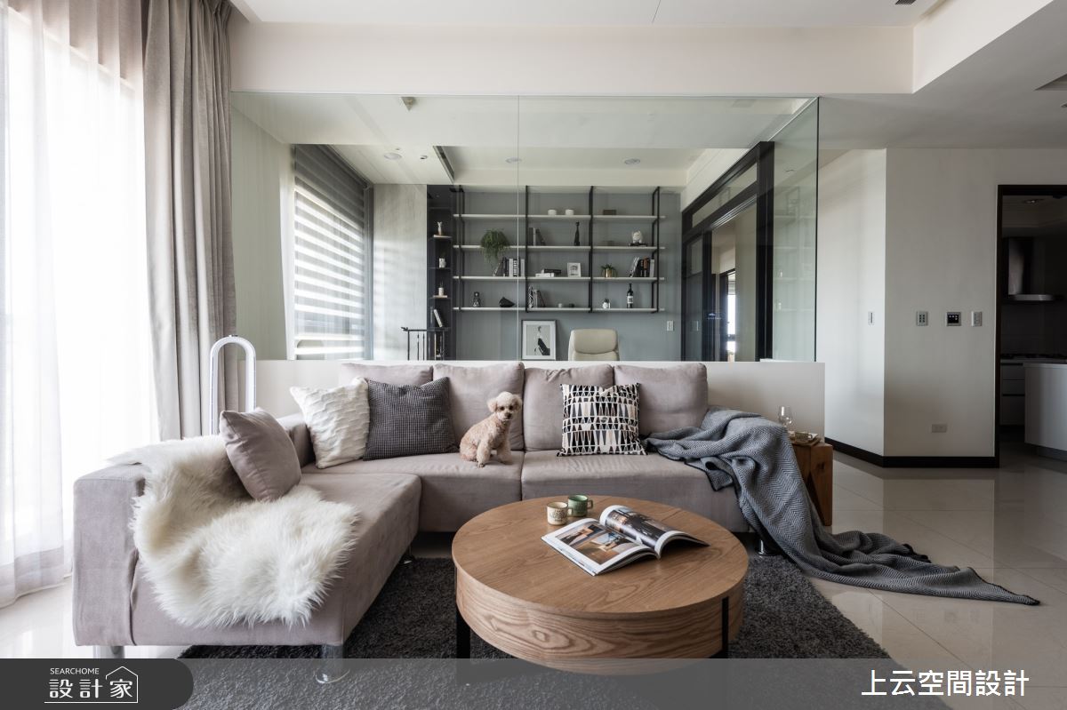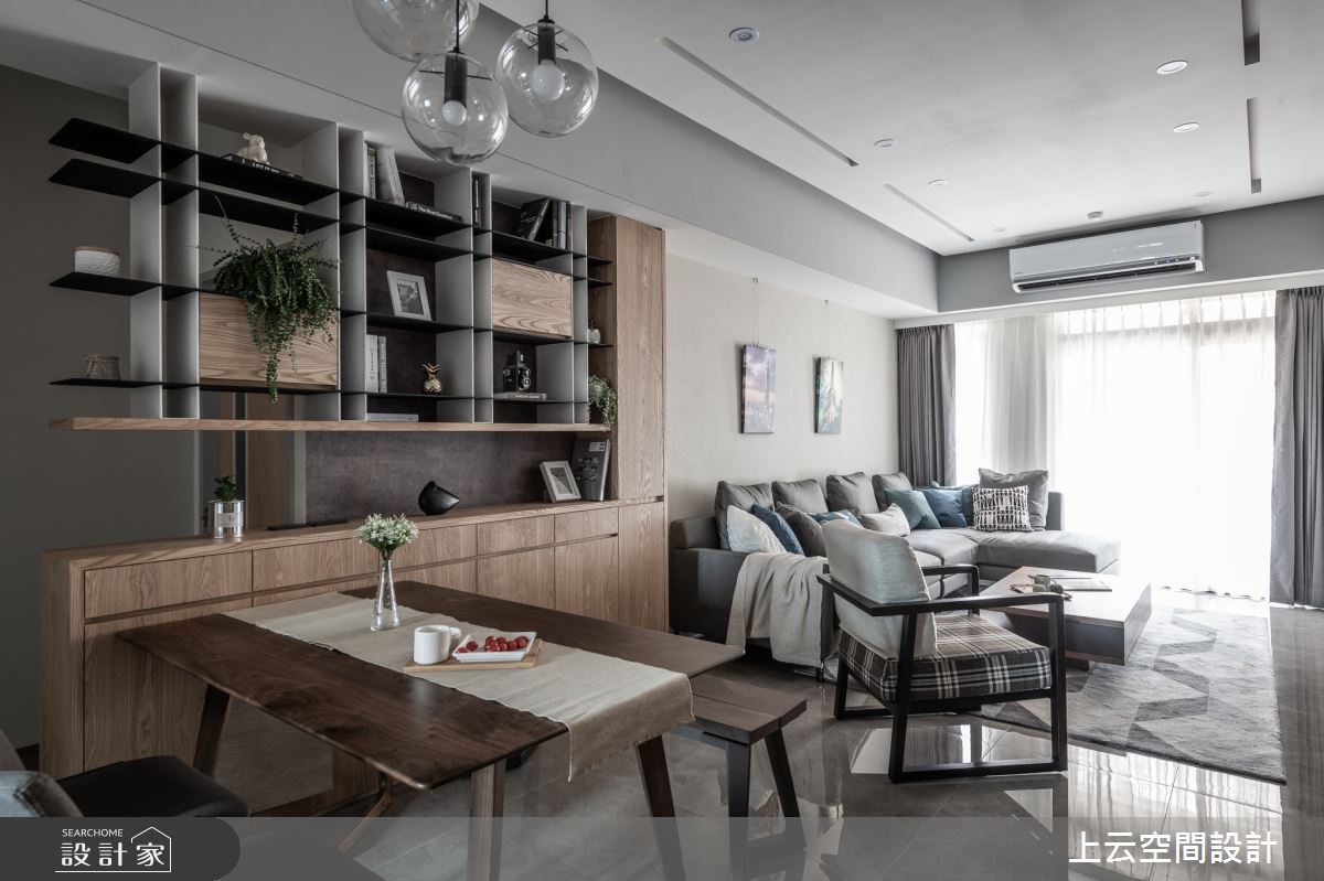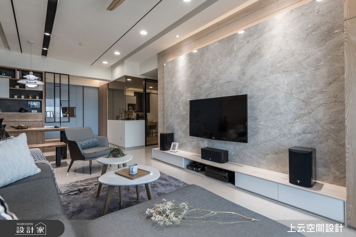 來自上云空間設計的44坪現代風住宅案,屋主一家人共有2位大人,是一間單層新成屋(5年以下)的四房格局,設計師藉由建材以乳膠漆、石英磚/拋光石英磚、鐵件、灰鏡、烤漆、鋼刷木皮、系統板材、噴漆、噴砂玻璃、特殊漆的搭配應用,實現一家人的理想生活。