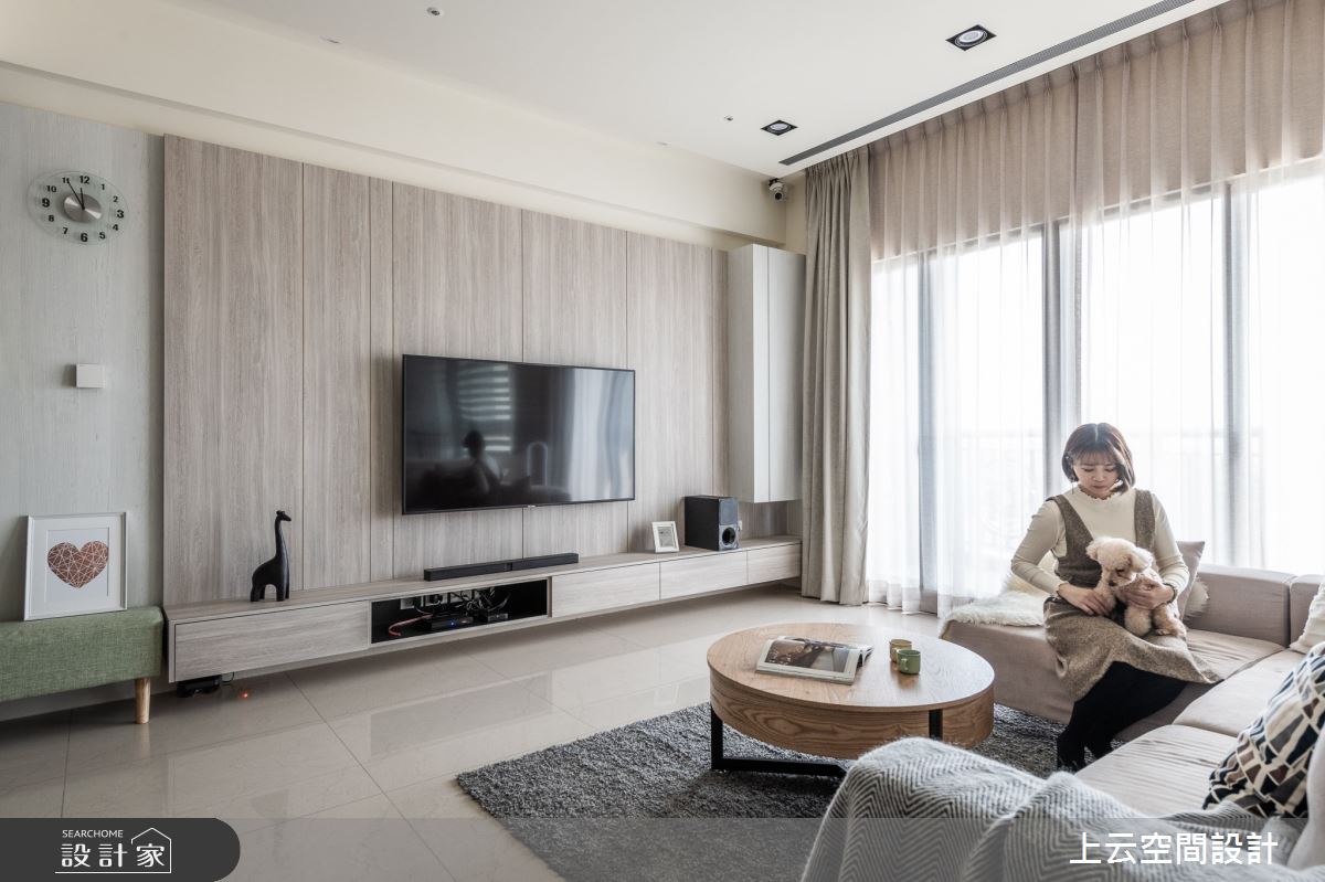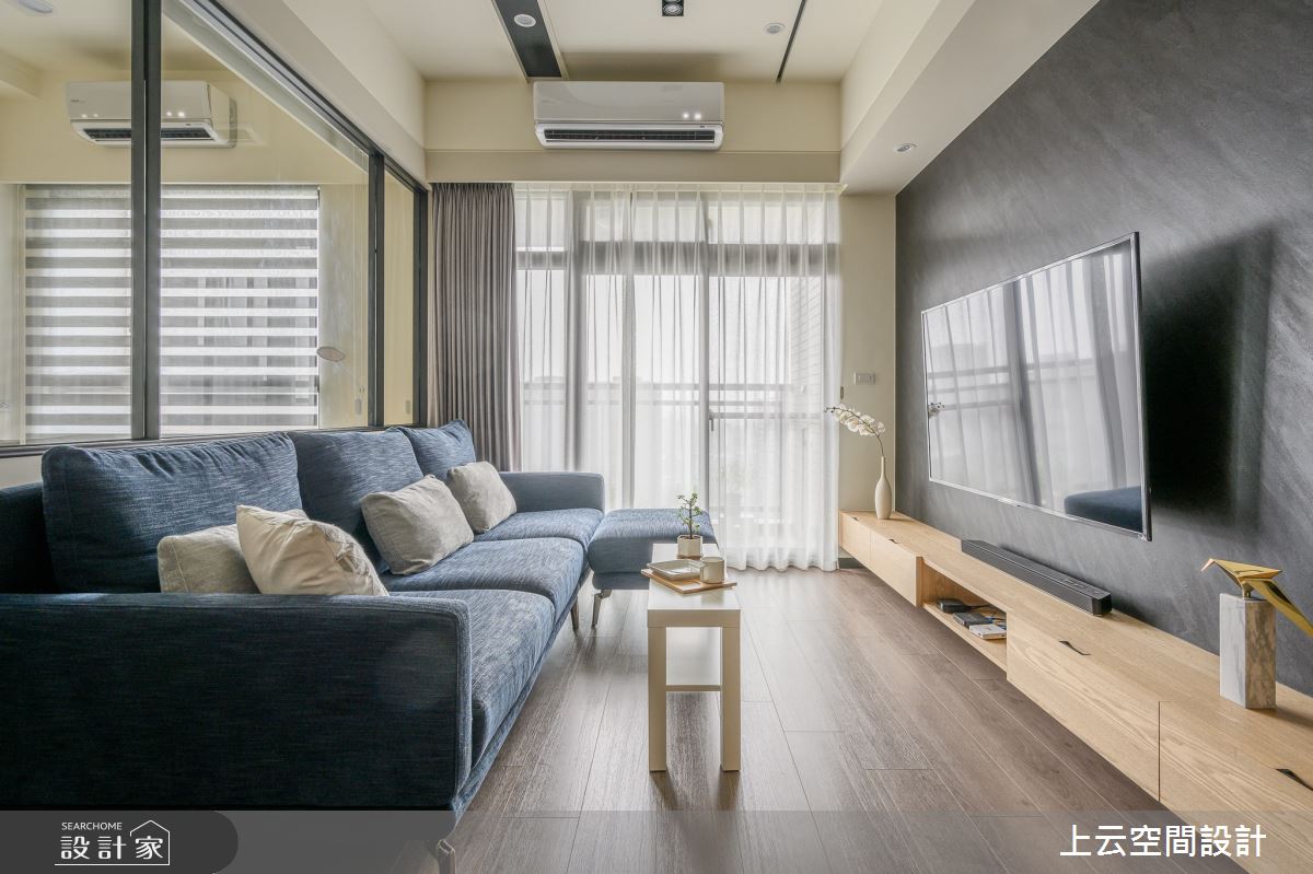 本案為上云空間設計的31坪現代風老屋(16~30年)設計作品,格局為單層三房的居住空間。居住成員包含2位大人。全室建材的搭配,應用水泥漆、超耐磨木地板、石英磚/拋光石英磚、鐵件、烤漆、鋼刷木皮、大理石、噴漆、灰玻、烤玻,展現溫馨的居家氛圍。
